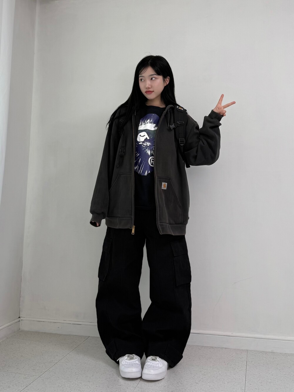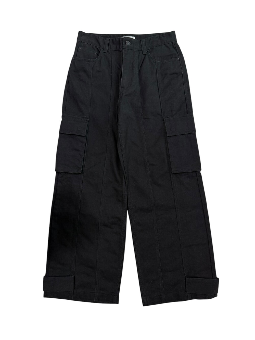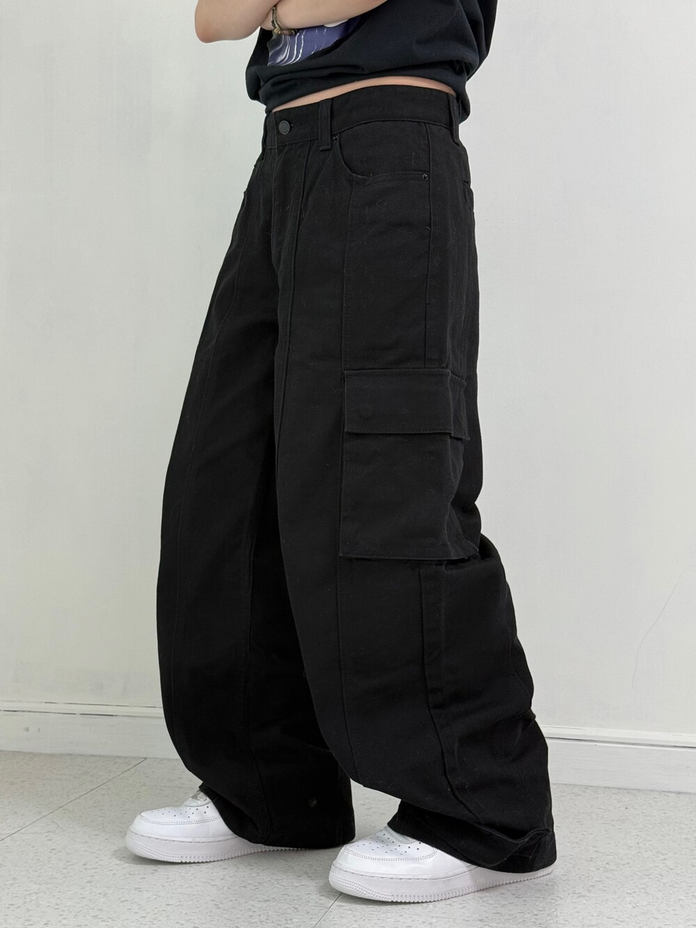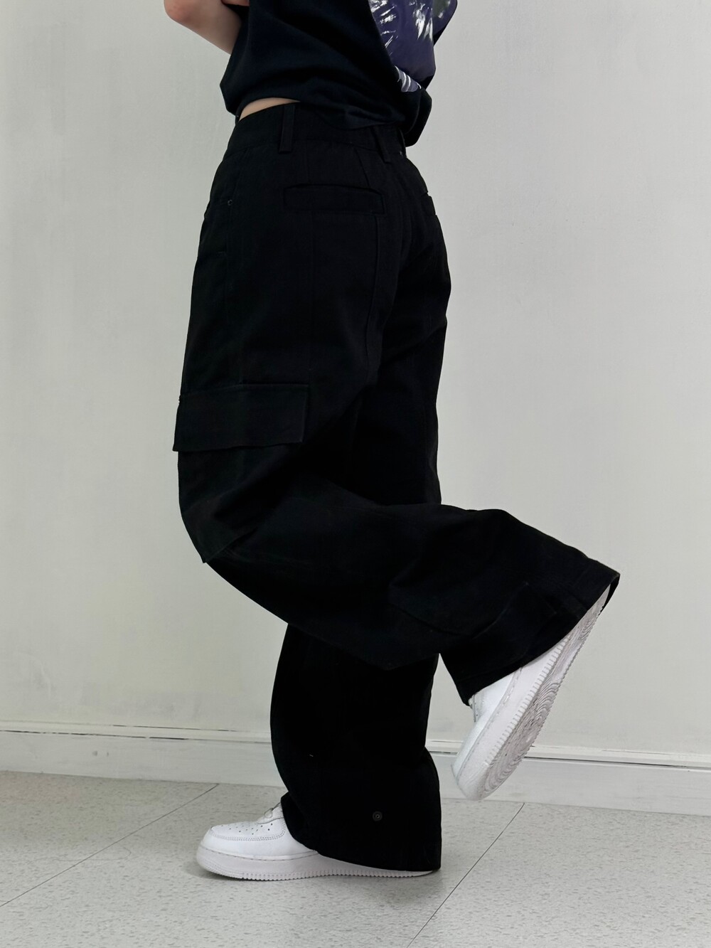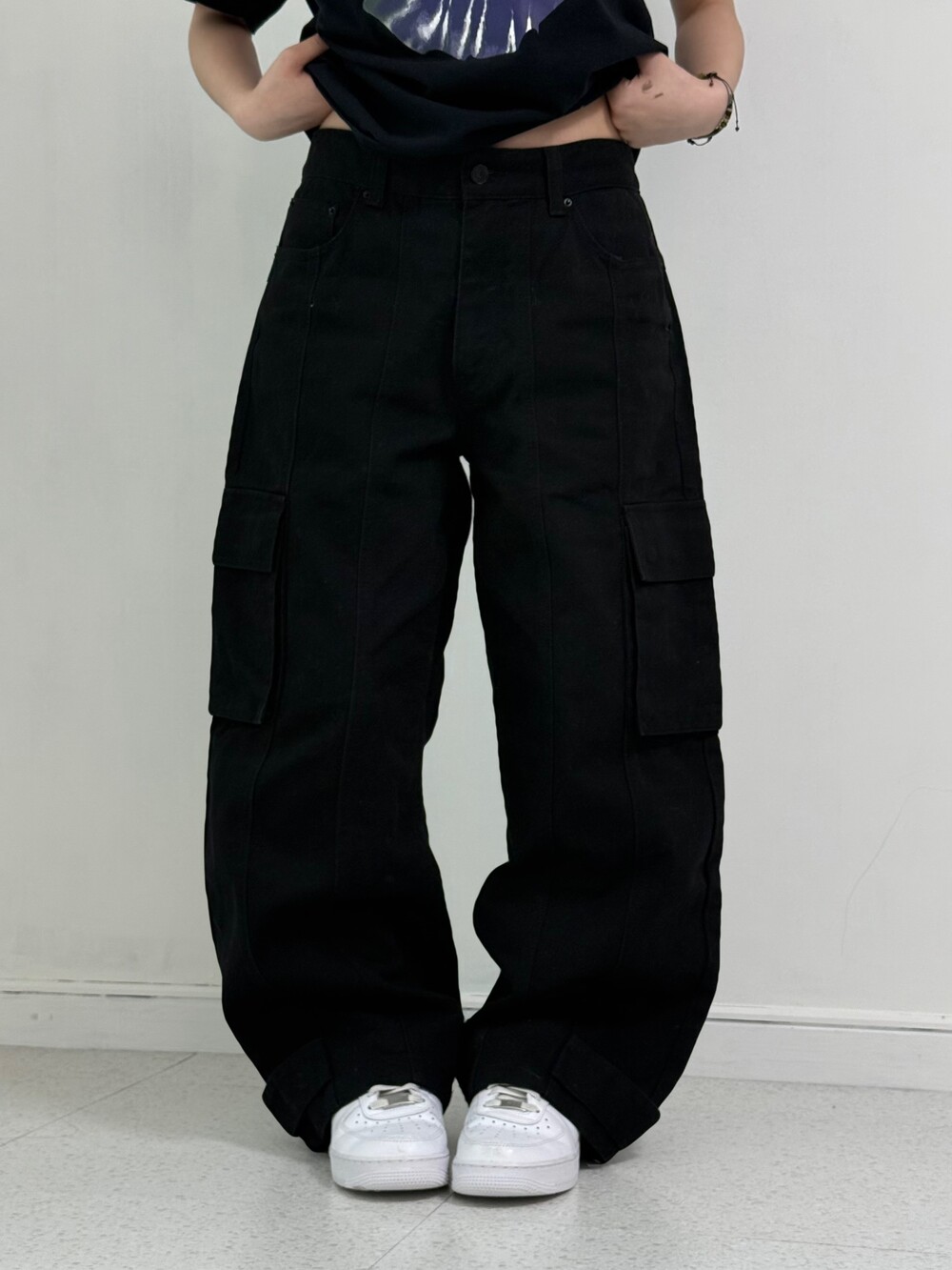 •허벅지 부터 밑단까지 직선적으로 여유 있는 긴 기장의 와이드 카고 팬츠 입니다! 밑단 비죠 디테일로 2가지 핏의 연출이 가능한 만능템이에요>,< (정가 100,000원)