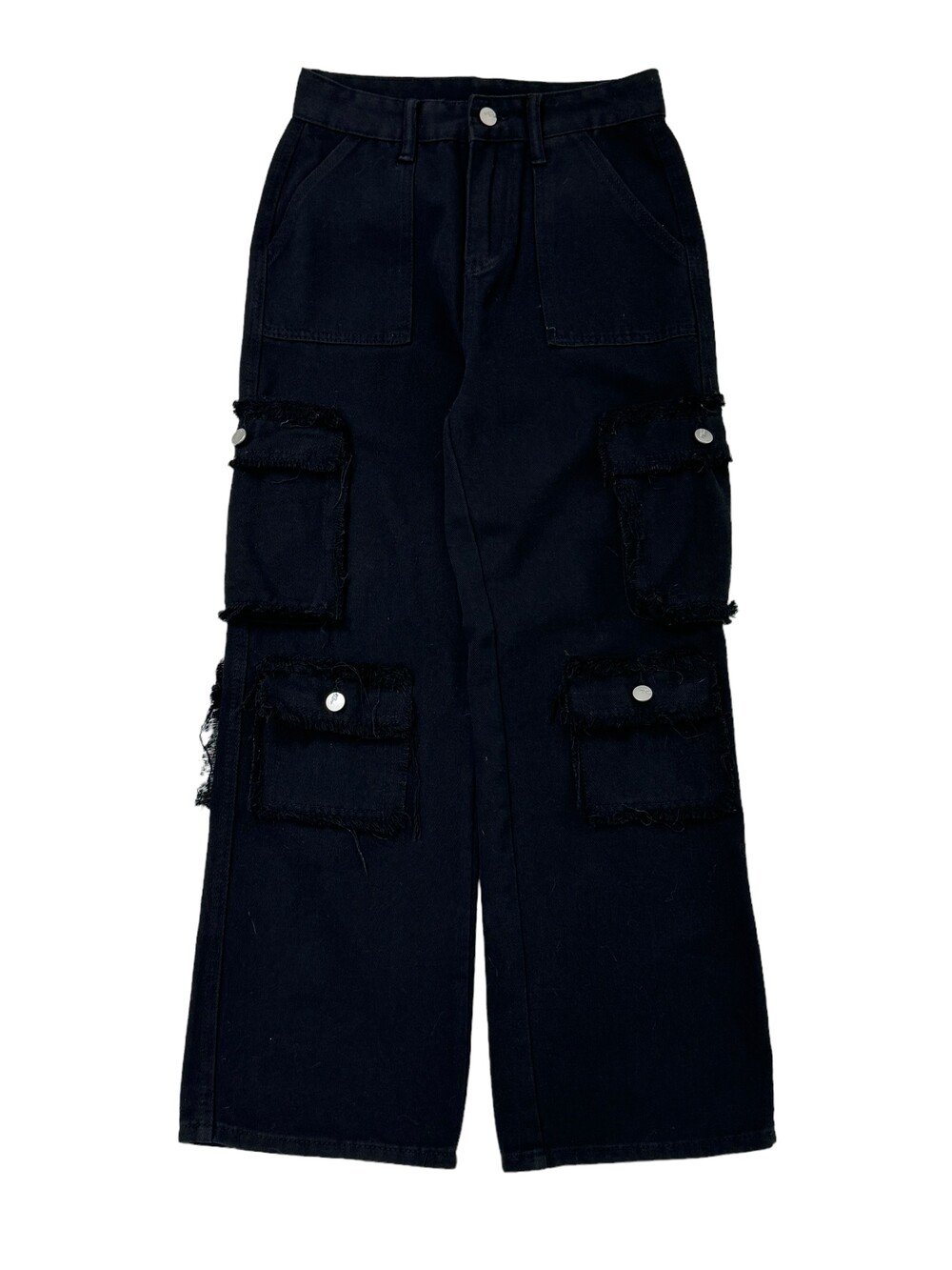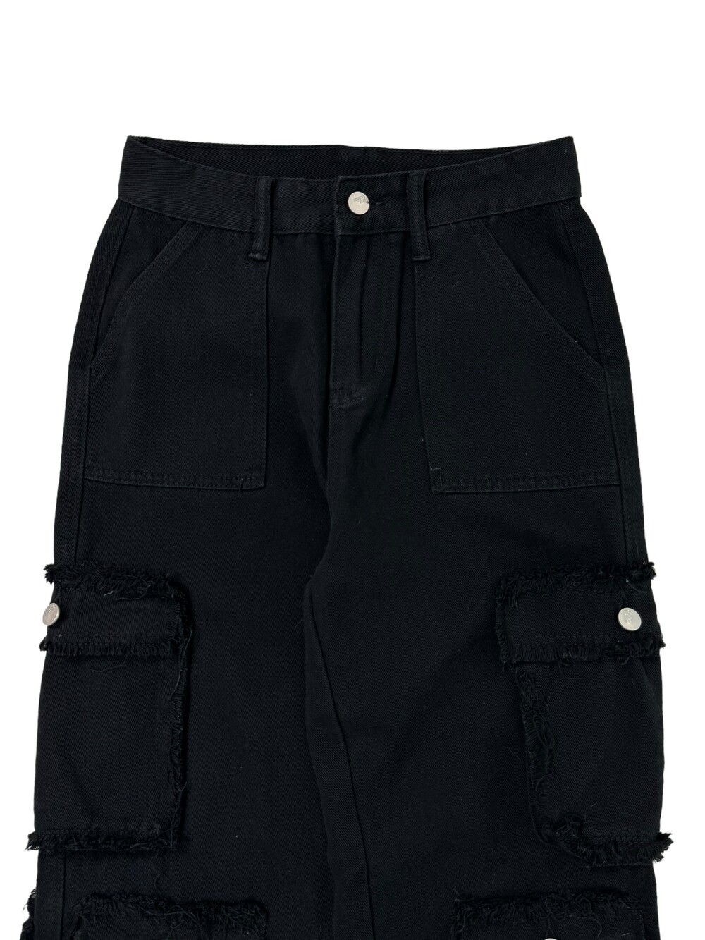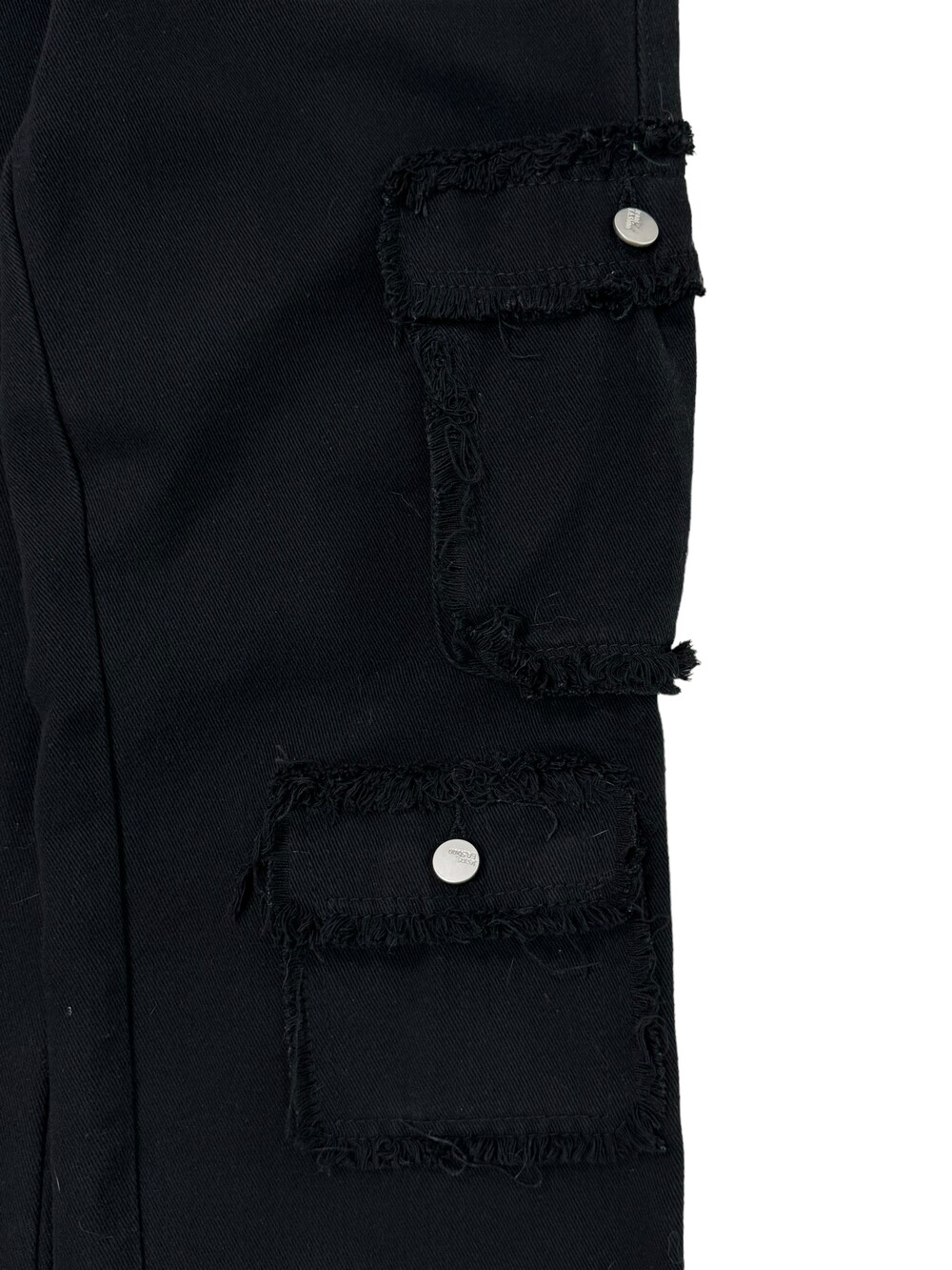 •그런지한 무드의 블랙 카고팬츠 입니다! 핏 자체는 깔끔한 편이라 너무 와이드한 느낌 보단 깔끔멋쟁이룩을 즐기시는분께 추천드리고 싶은 제품이에요ㅎㅎ
