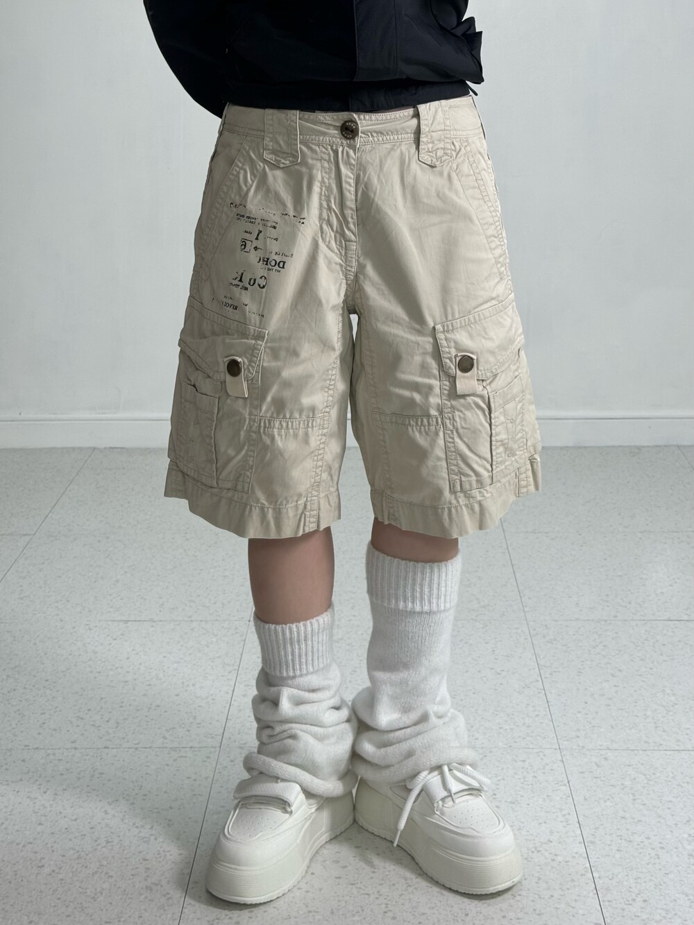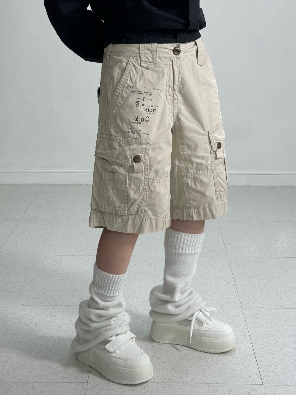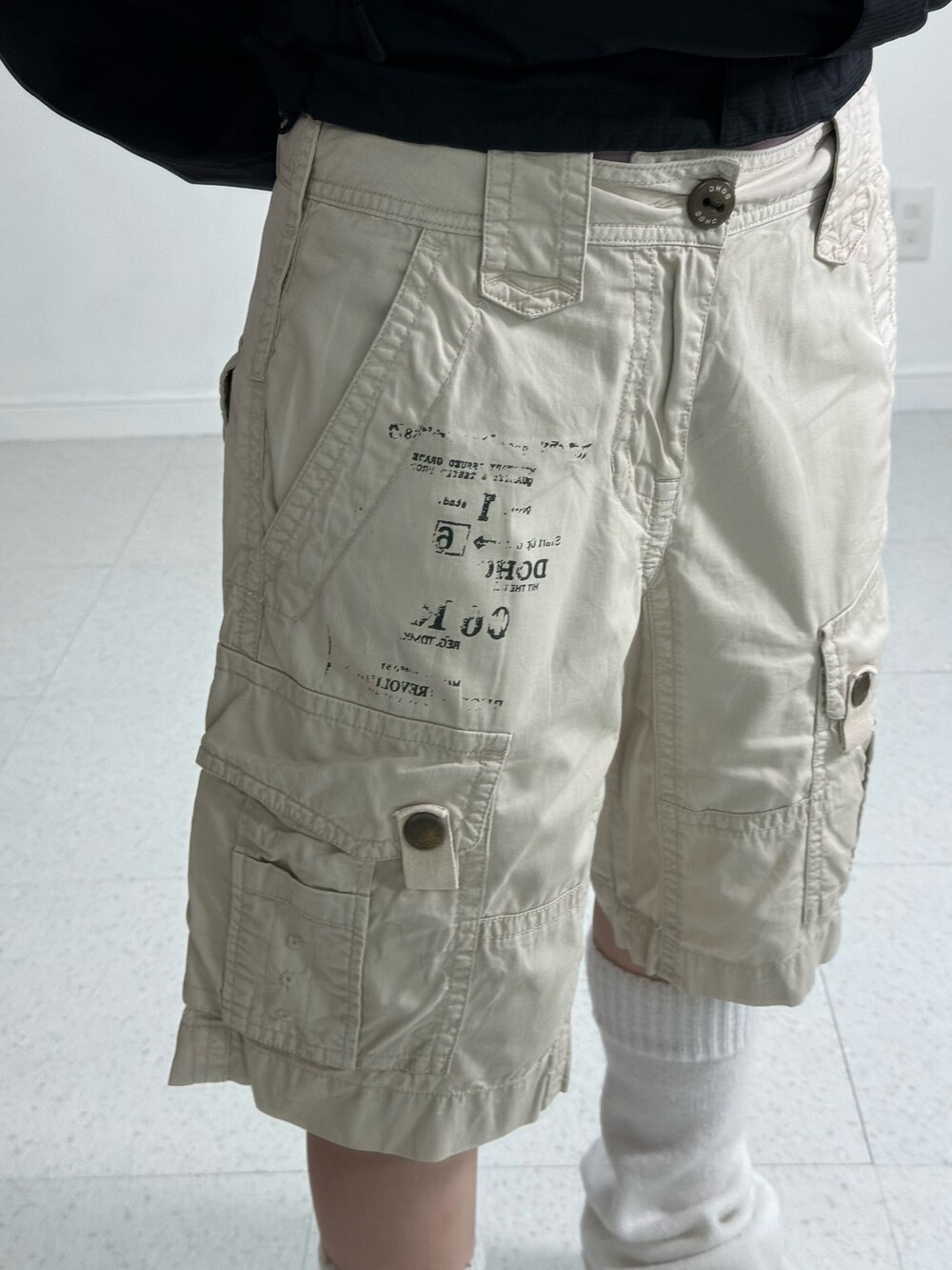•빈티지한 프린팅이 들어간 아이보리 카고팬츠 입니다! 150후반160초반 분들께서 착용해주시기 좋은 기장감 이에요!