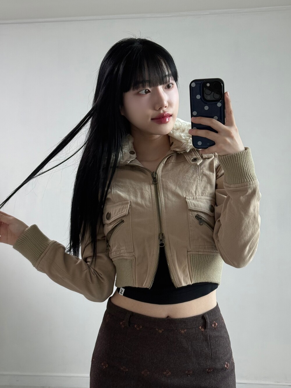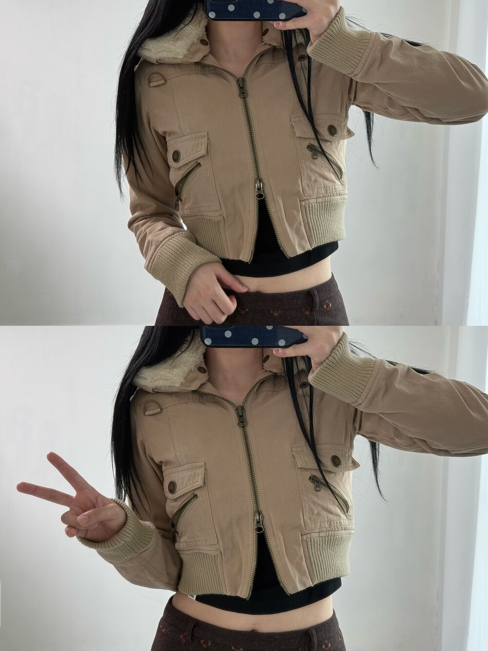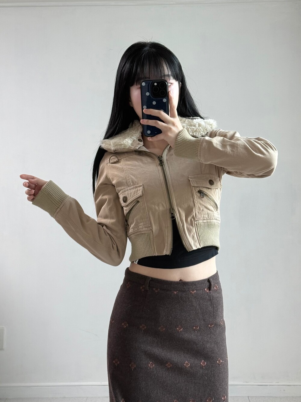 •아베크롬비는 와이투케이 무드 진짜 잘하는듯. 넥라인에 퍼가 들어가있구 기장감은 크롭에 투웨이라 빈티지에서만 만날 수 있는 독보적인 아이템이에요! 부츠컷 팬츠랑 함께 입어주시면 넘 좋을듯 합니다>,<