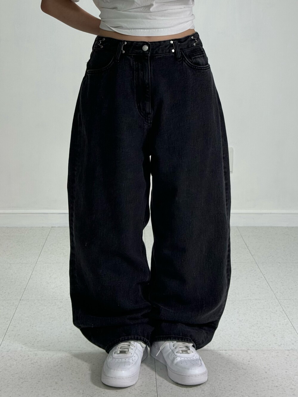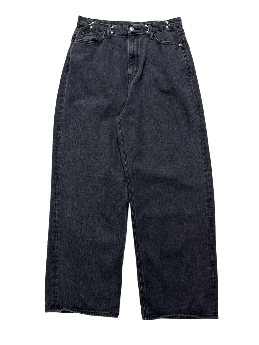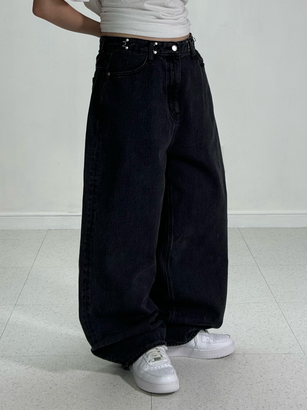 •허리에 후크가 달려있어 사이즈 줄이기도 가능! 흑청 와이드 루즈핏의 아방핏 팬츠에요ㅎㅎ 데일리로 휘뚤마뚤 착용하기 아주 굿입니다