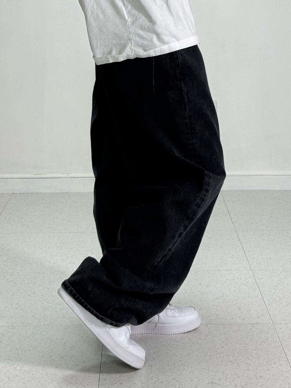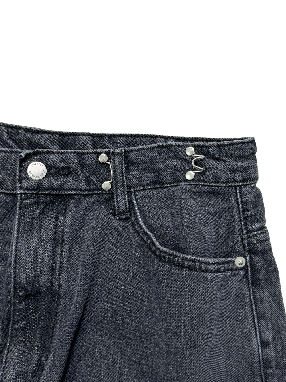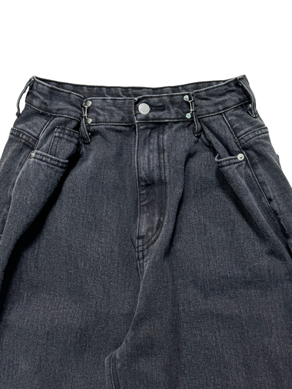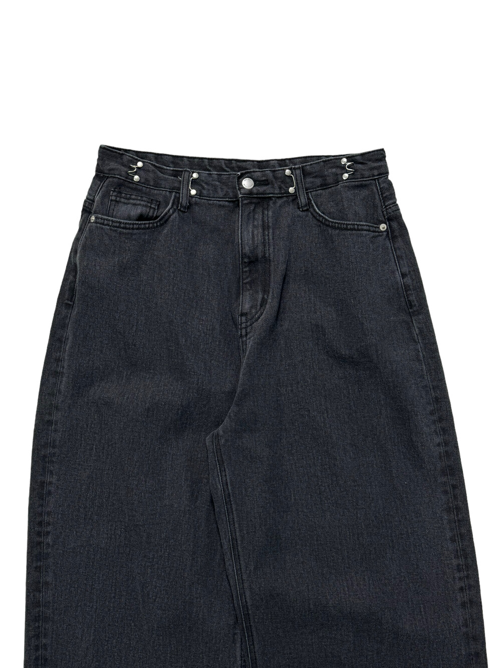 •허리에 후크가 달려있어 사이즈 줄이기도 가능! 흑청 와이드 루즈핏의 아방핏 팬츠에요ㅎㅎ 데일리로 휘뚤마뚤 착용하기 아주 굿입니다
