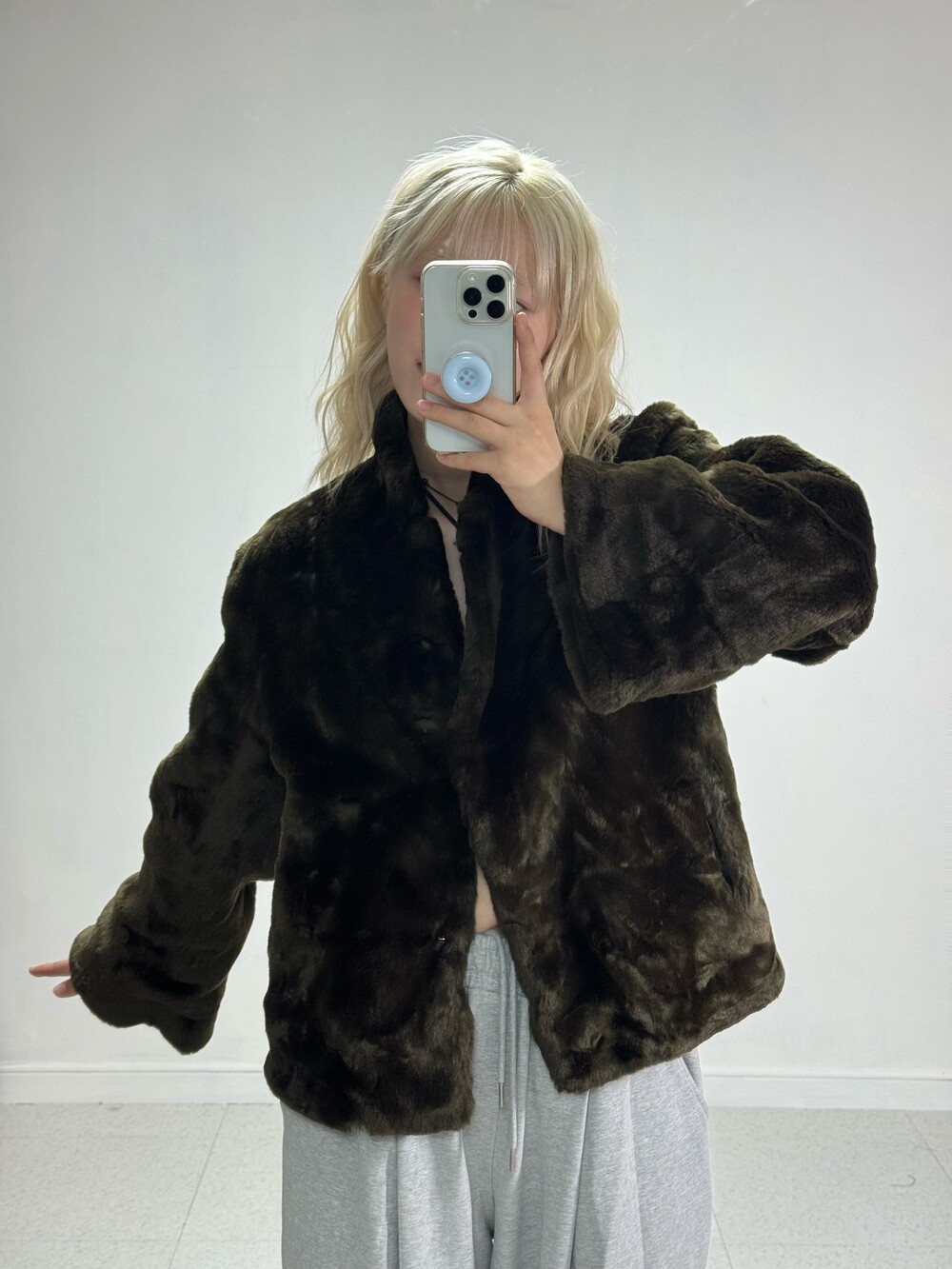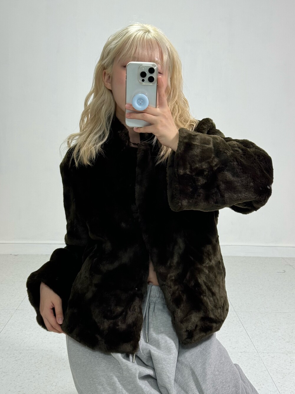 •카키브라운 빛깔의 퍼 자켓 입니다! 적당한 기장감에 폭닥한 착용감, 팔통이 크게 떨어지는 편이라 66사이즈 입으시는분들도 충분히 예쁘게 착용가능하셔요 🖤