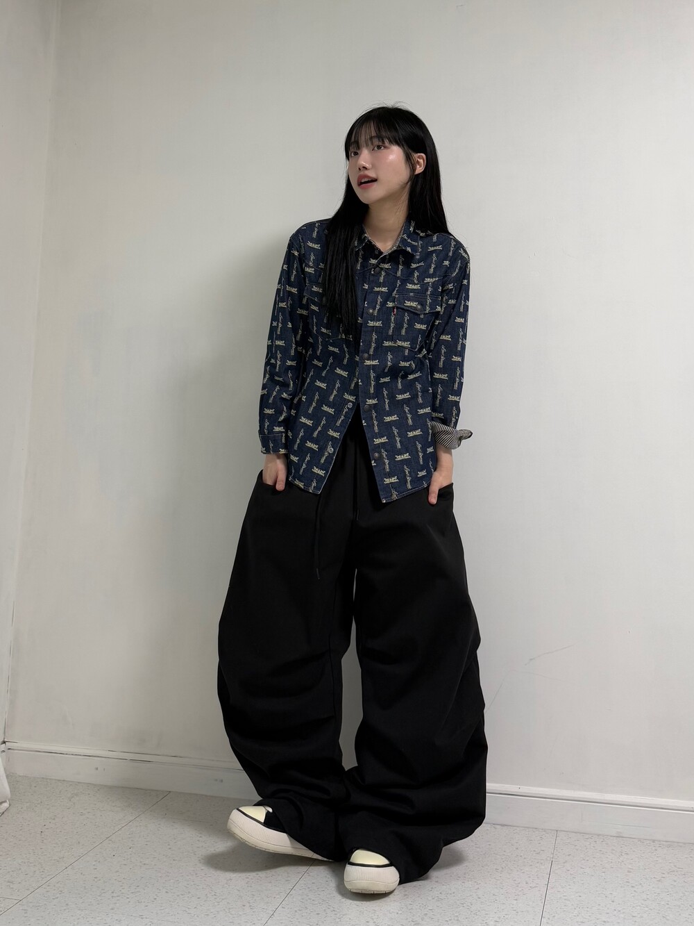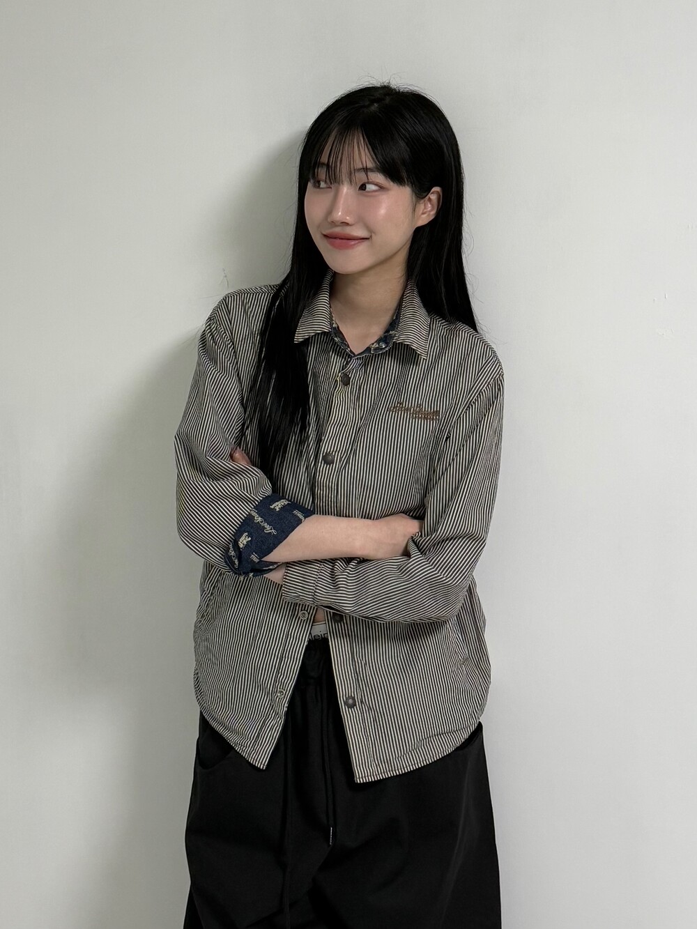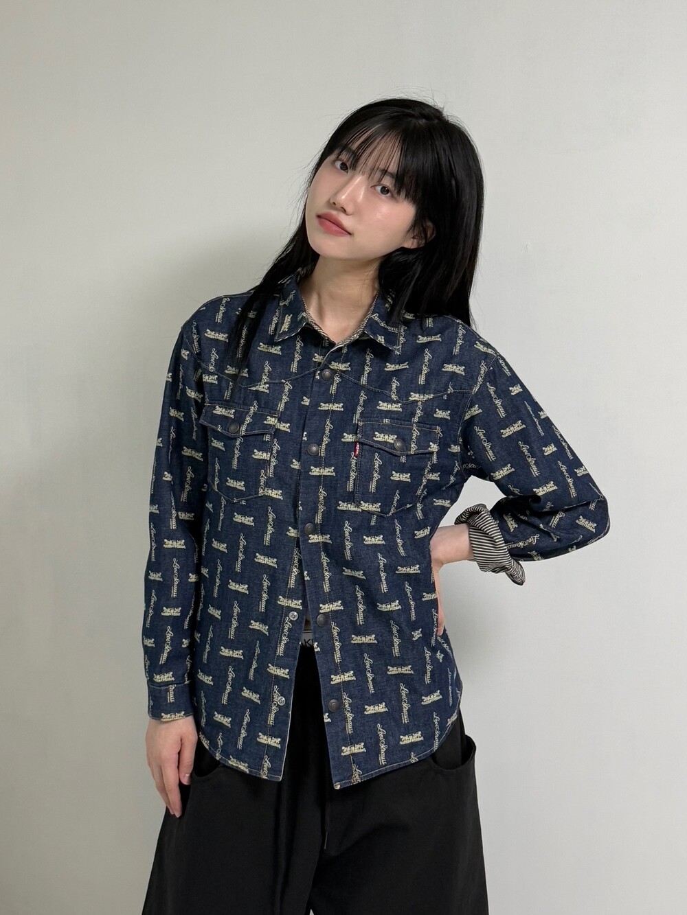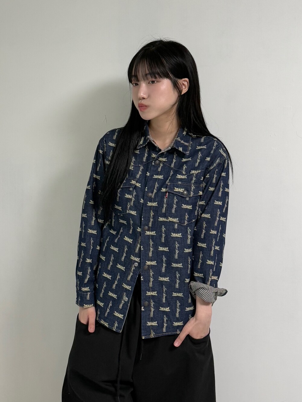 •리바이스 리버시블 자켓 이에요! 셔츠처럼 입어주셔도 좋습니다 히히. 유니크하게 리바이스 로고 패턴이 들어가있어 너무 예쁘지않나요..>_< 요고 툭 입어주시고 팬츠는 그냥 블랙치노 입어주셔요,바로 핀터걸-