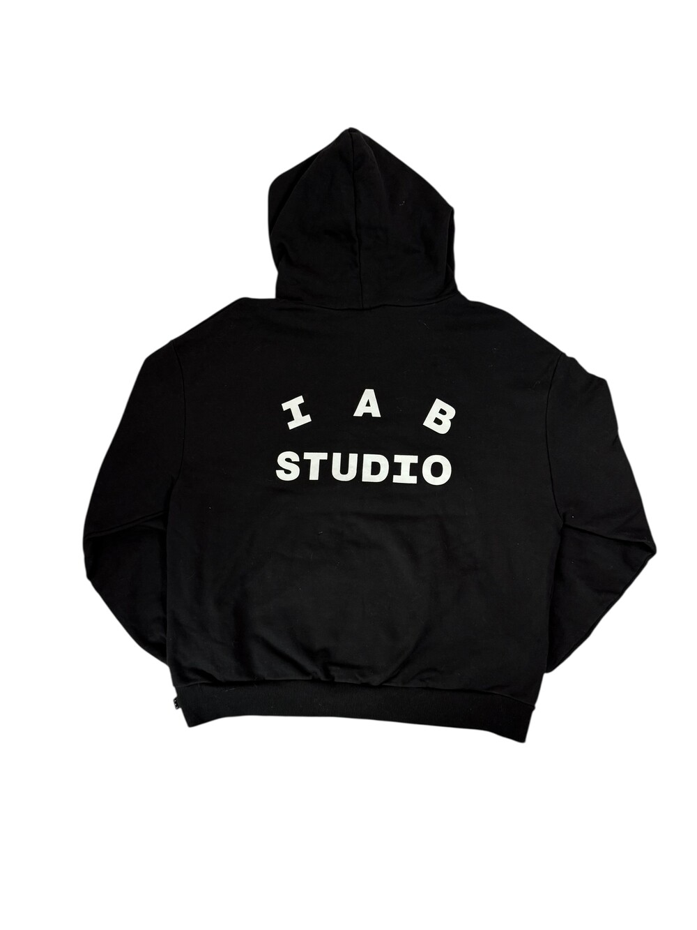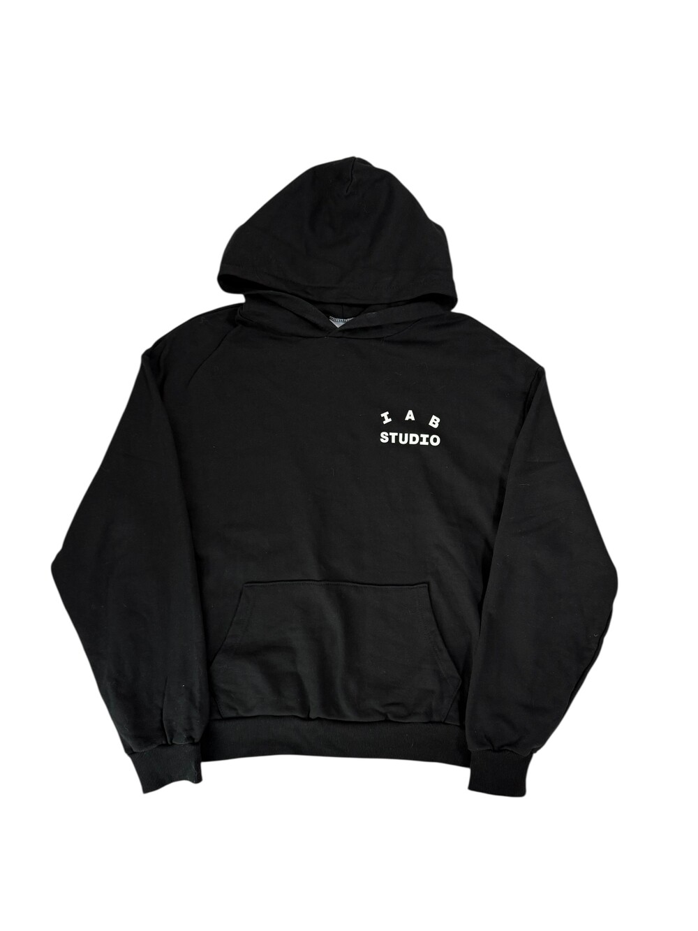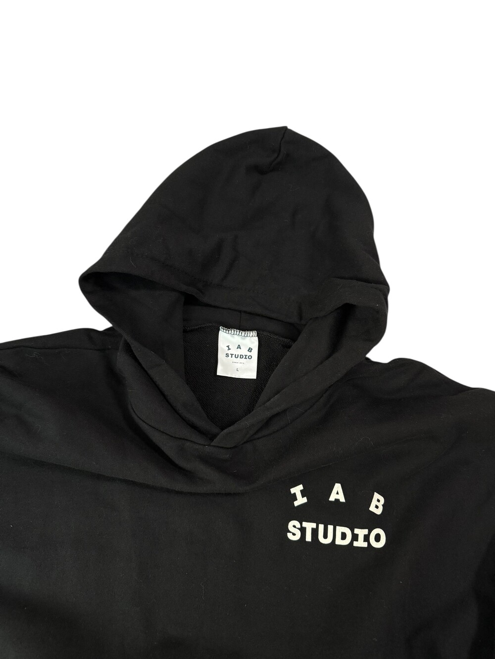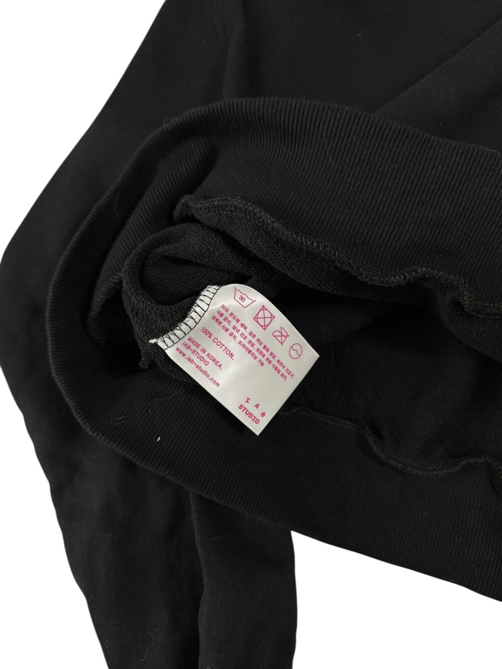 •아이엡스튜디오 블랙 후디 입니다. L사이즈라 오버핏으로 입어주시기 좋은 제품이에요. 기모x