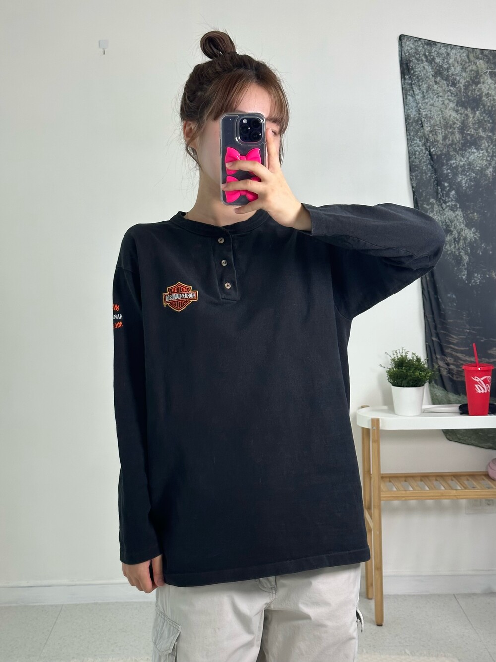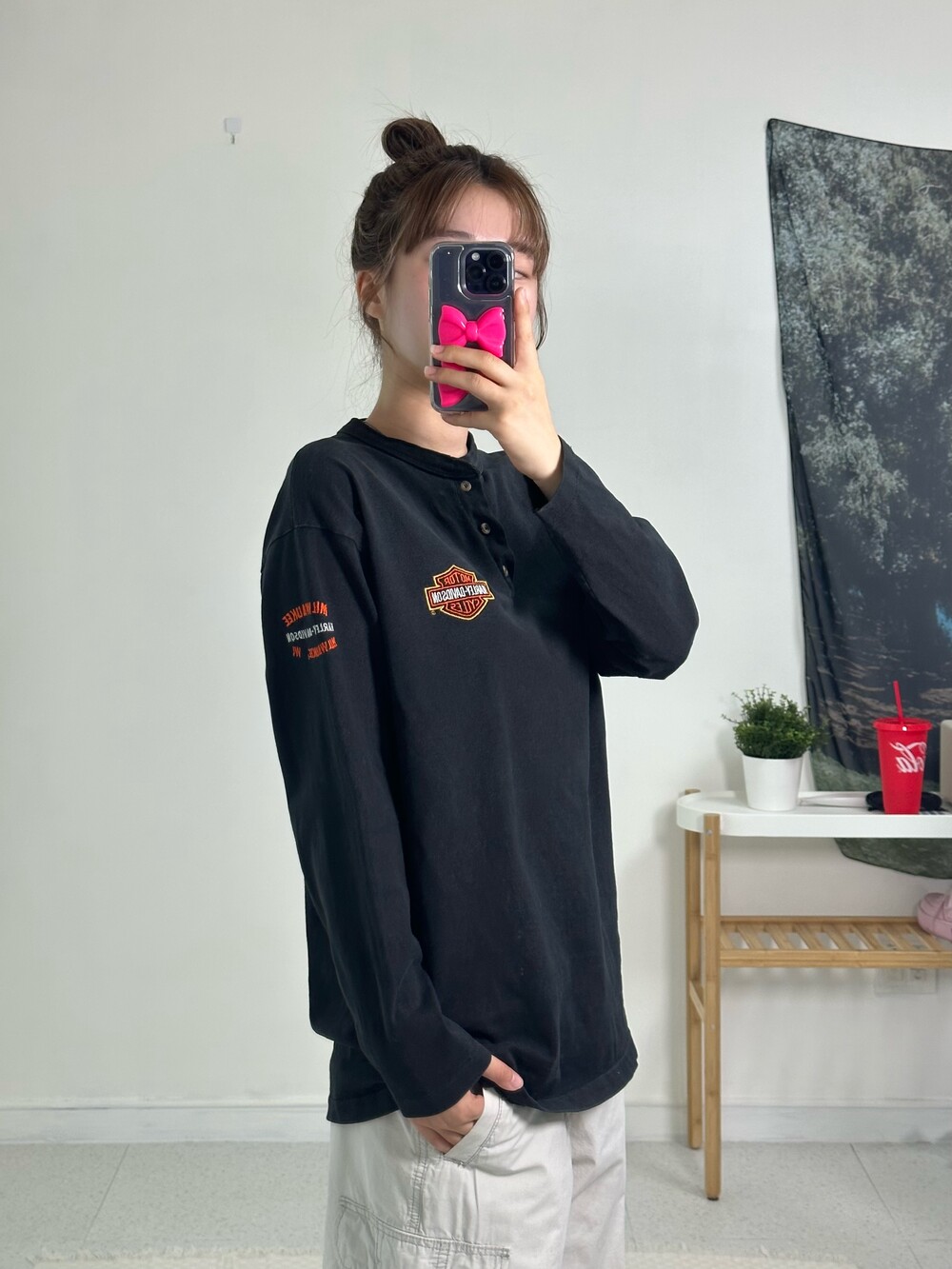 •할리데이비슨 롱슬리브에요! 깔끔한 디자인과 할리데이비슨 마크 패치가 붙어 있어 귀여우면서도 멋스러워요-
