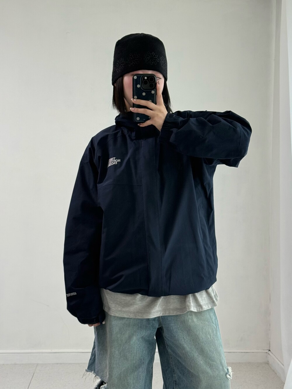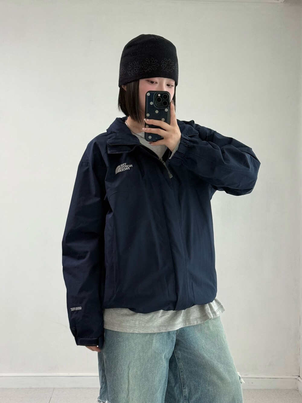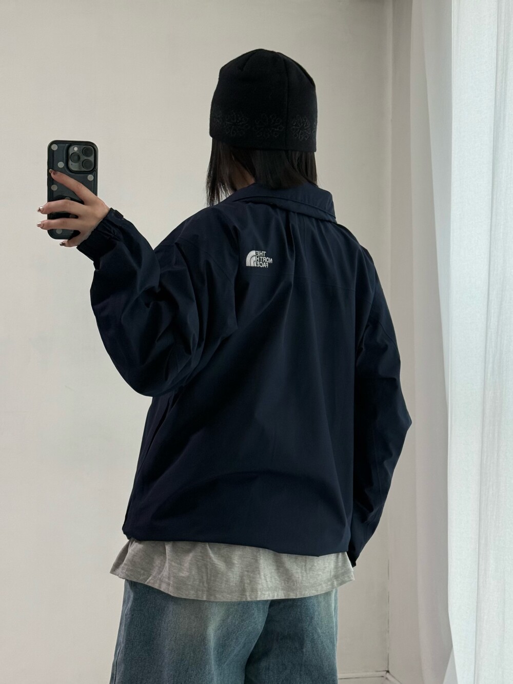 •노스페이스 네이비 바람막이 입니다. 딥한 네이비 컬러라 흔하지 않구 투웨이+밑단 스토퍼가 있어 편하게 착용가능 하십니닷