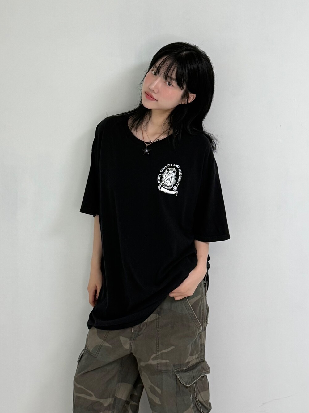 •오베이 오버핏 블랙 반팔티 입니다! 후리추리 힙하게 입어주세요!