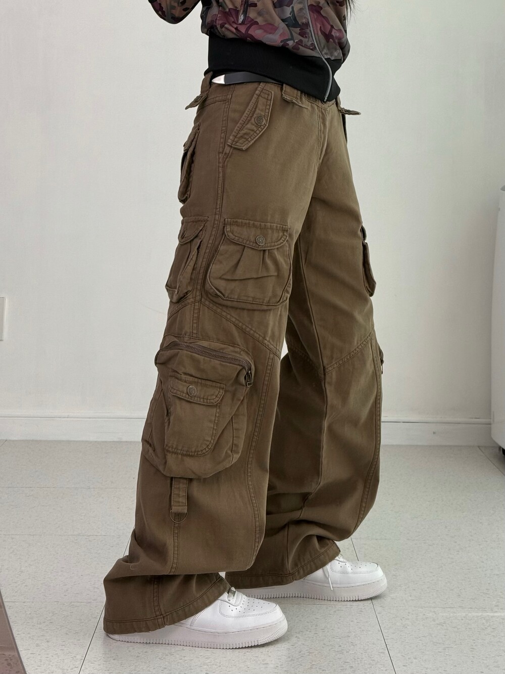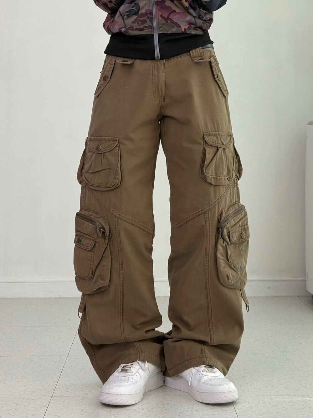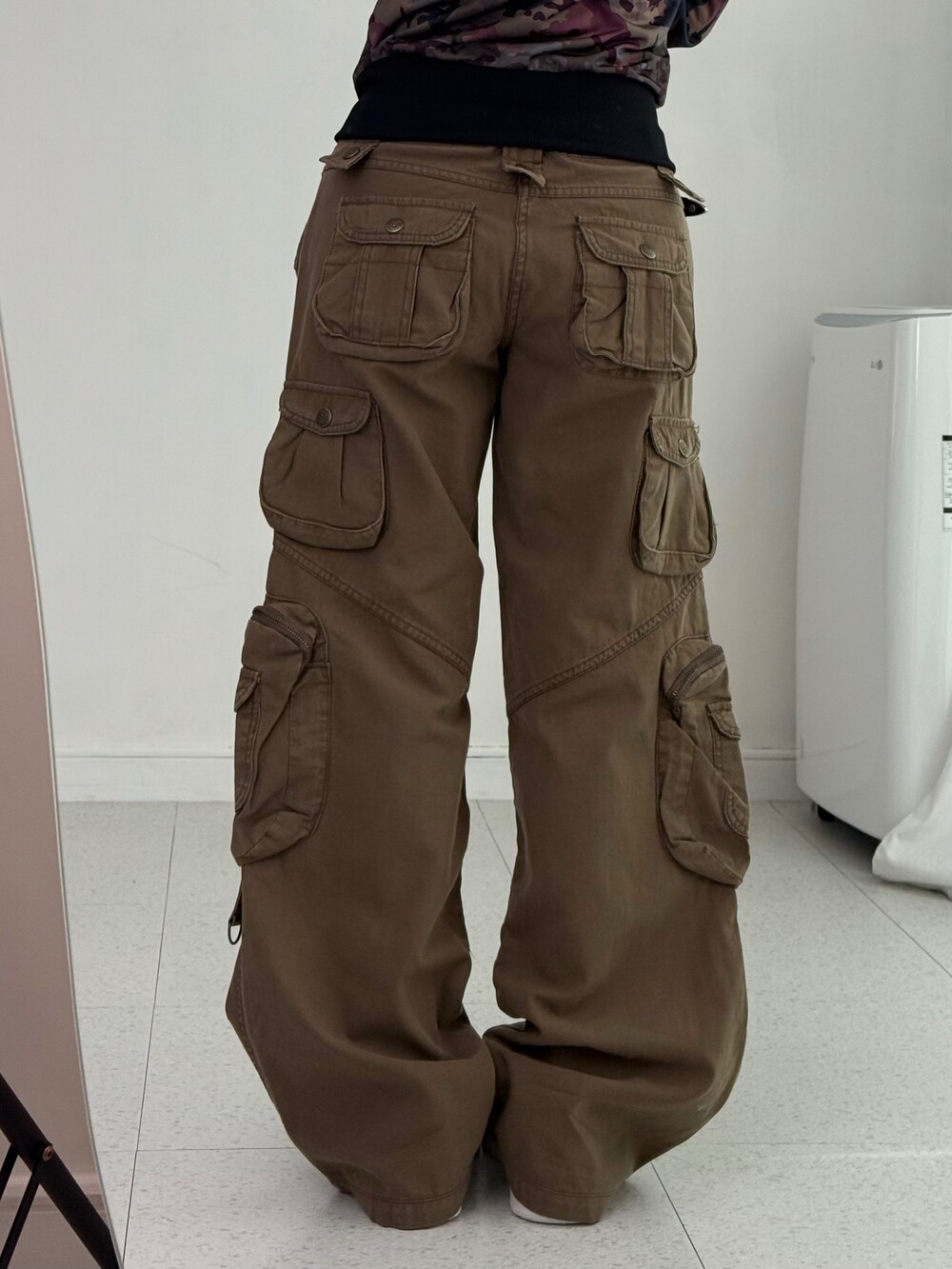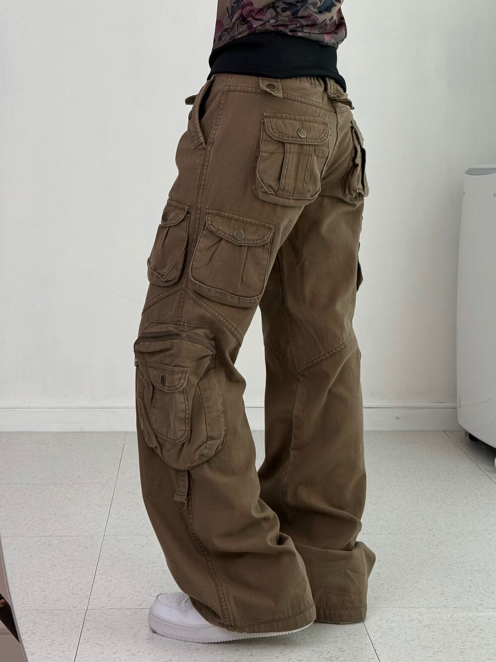 •멀티포켓 디자인의 브라운 카고팬츠 입니다! 살짝 부츠컷 느낌으로 떨어지는 아이라 와투케 느낌도 낭낭하고 힙한 느낌으로도 연출하실 수 있습니다!
