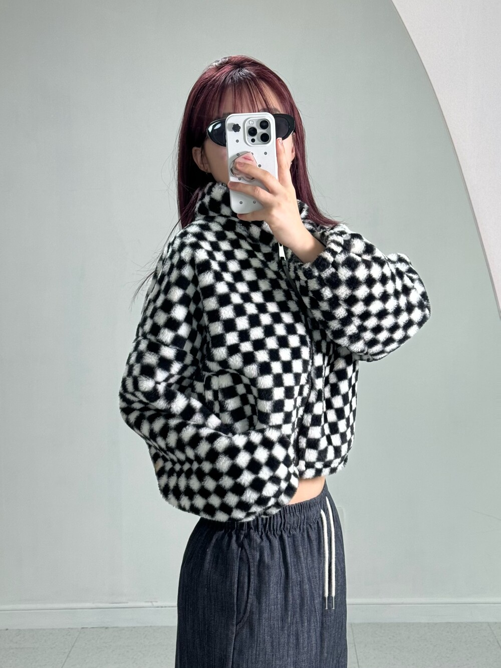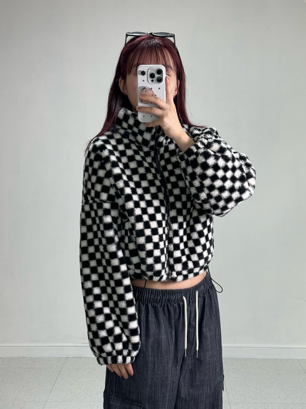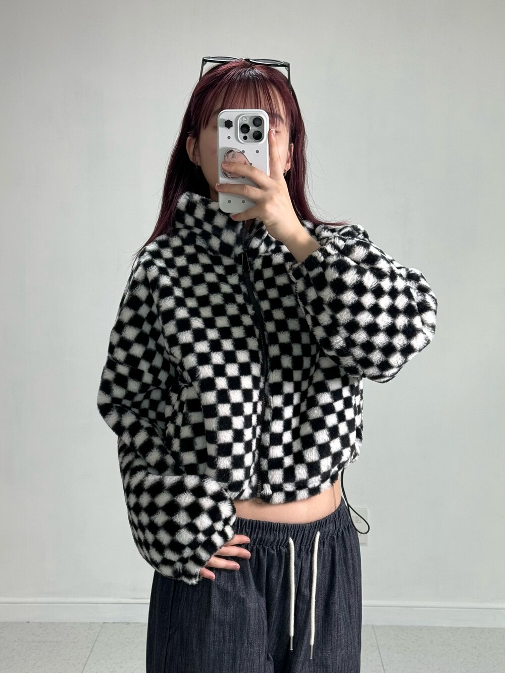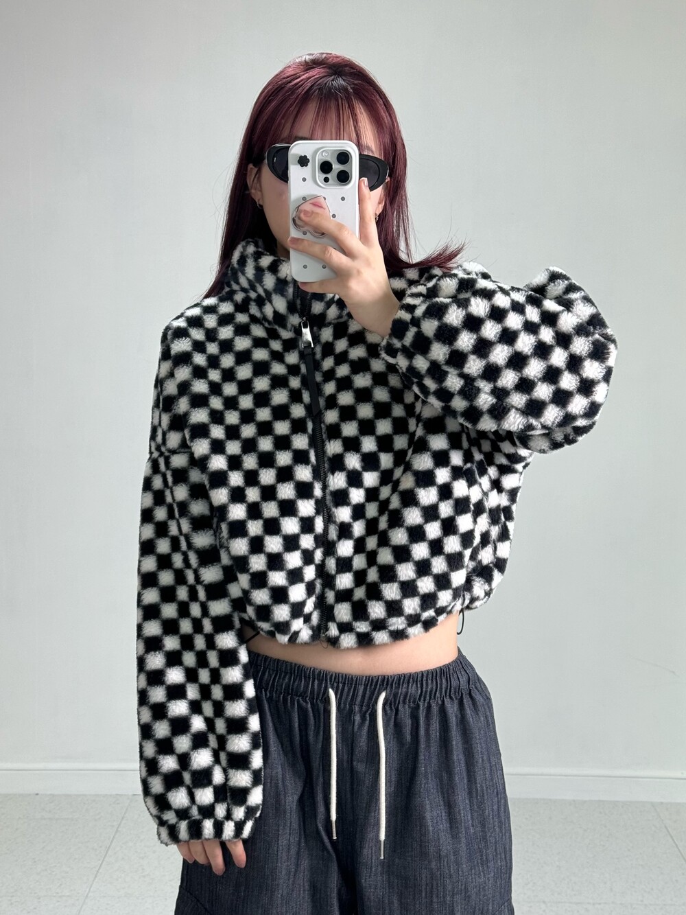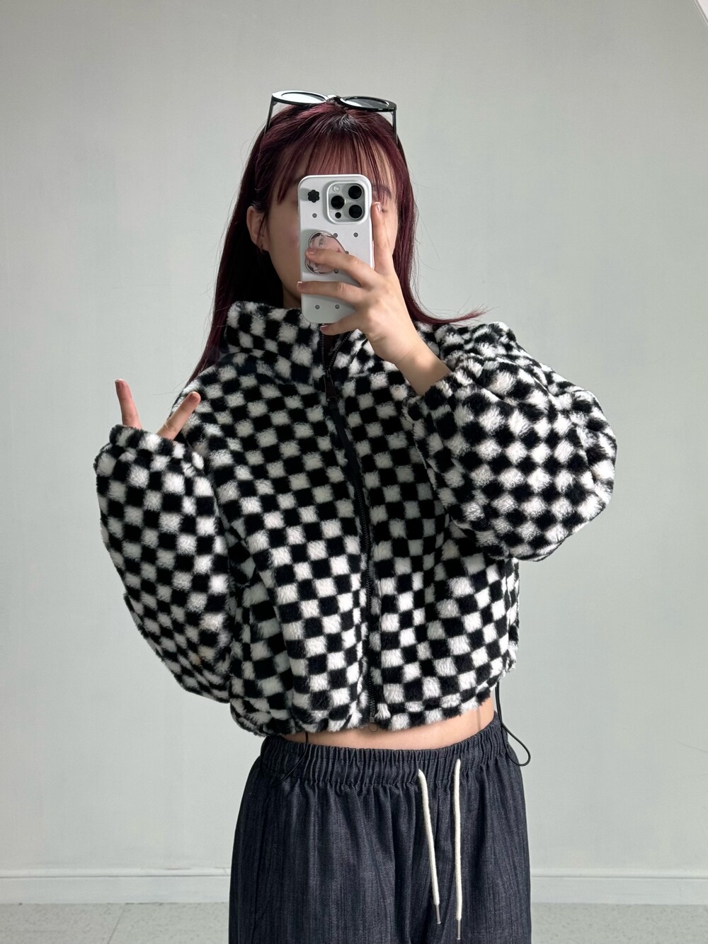 Checker short fur zipup