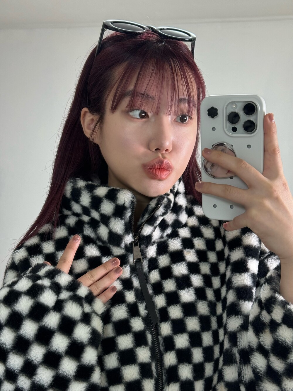 •체커보드 디자인도 키치해서 귀여운데 심지어 숏기장 입니다! 밑단쪽 쭈리가 있어서