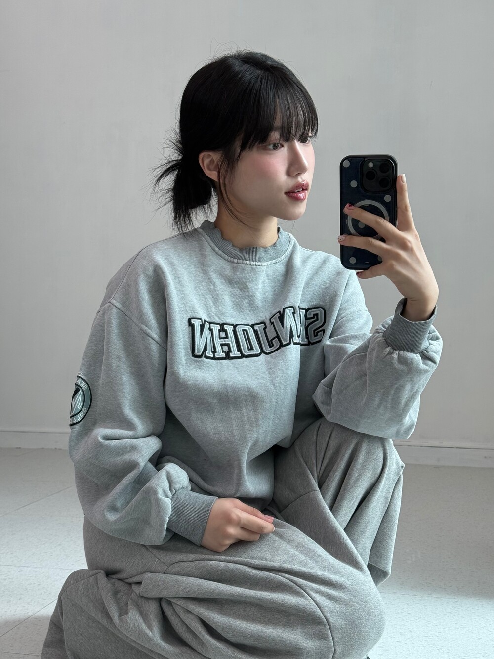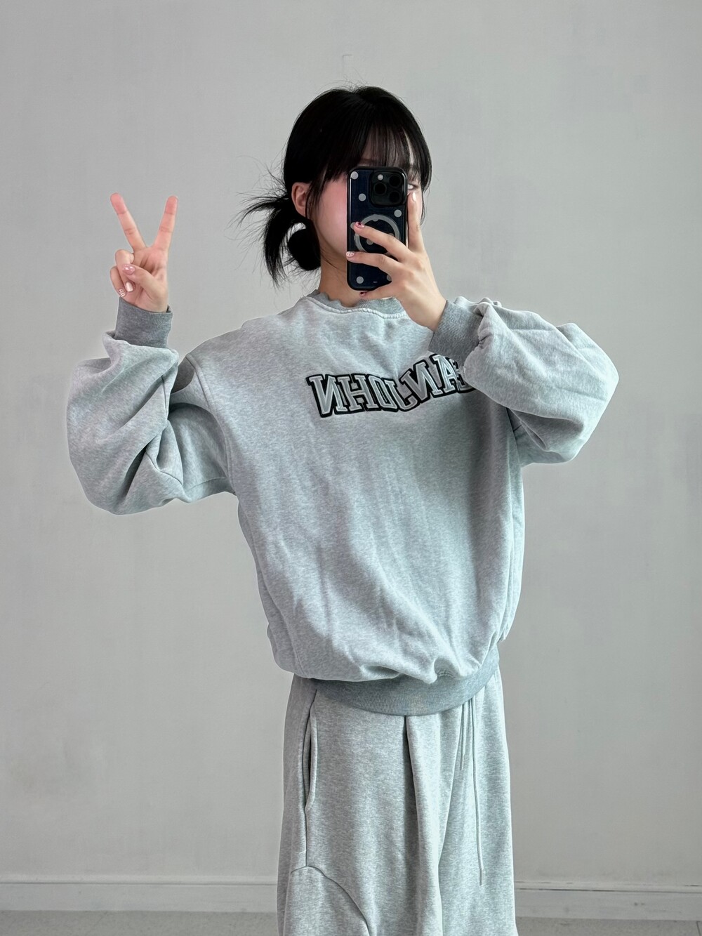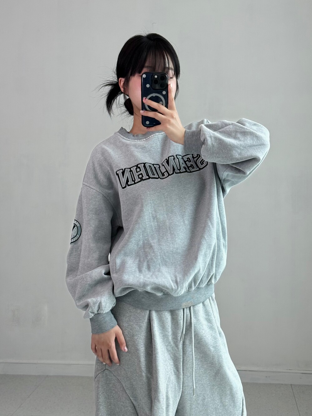 •션존 그레이 맨투맨 입니다! 로고가 넘 기엽져, 편안하게 슥 입어주셔요ㅎㅎ