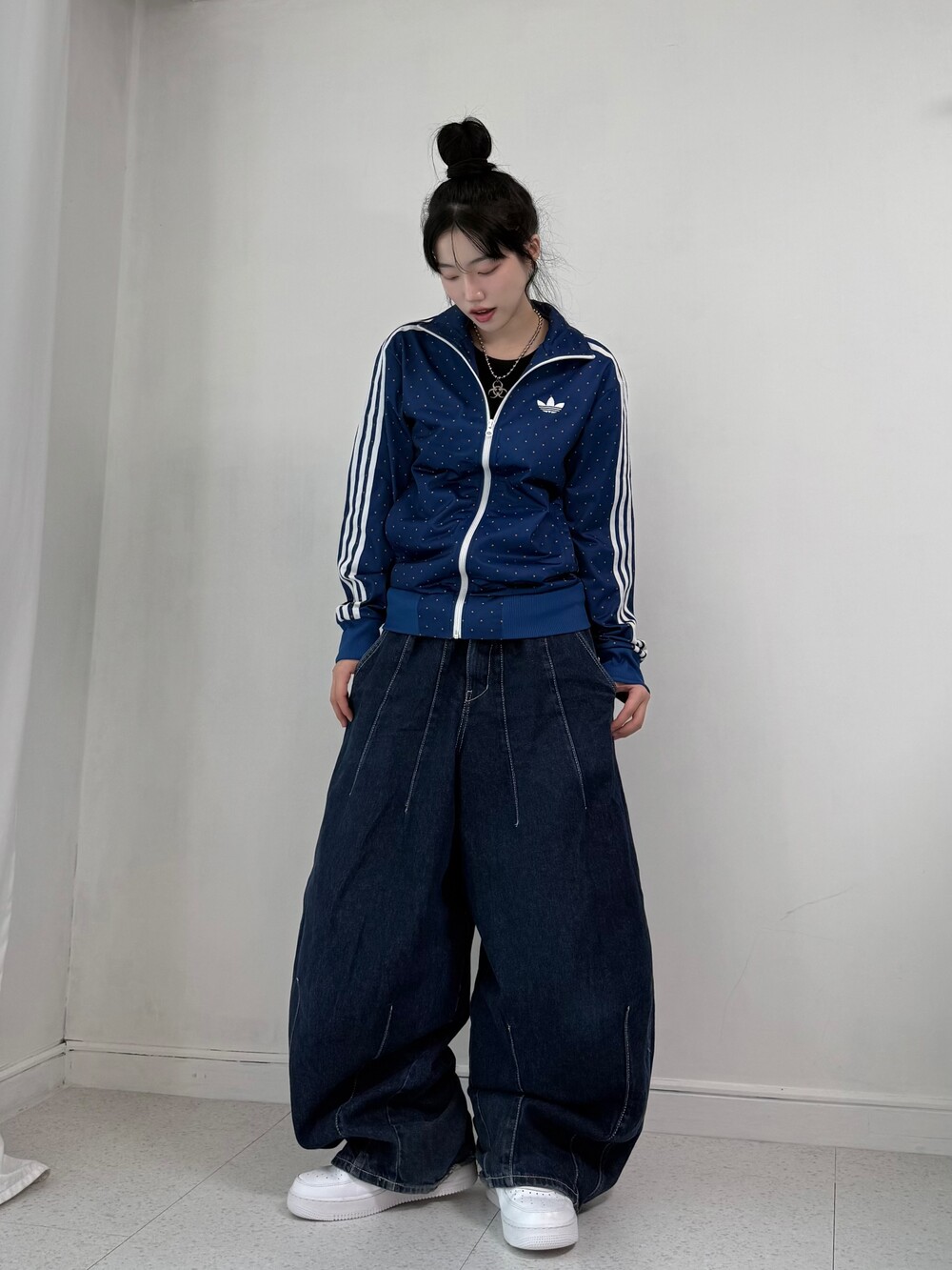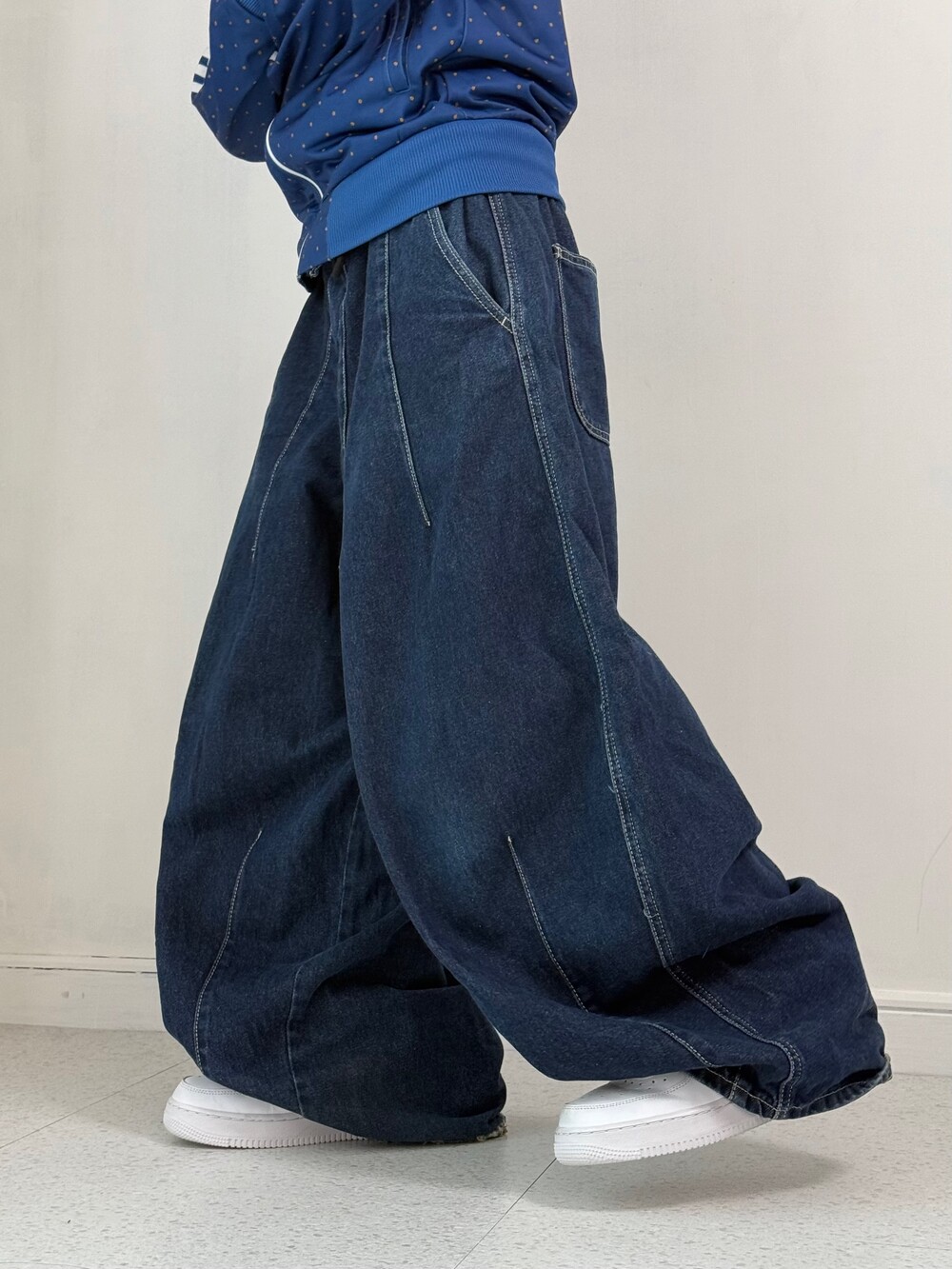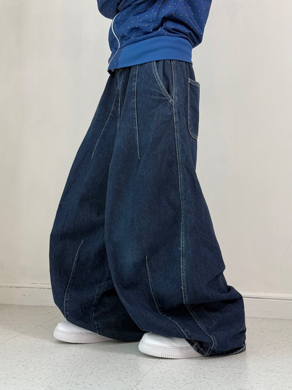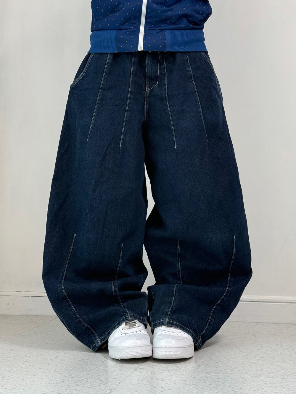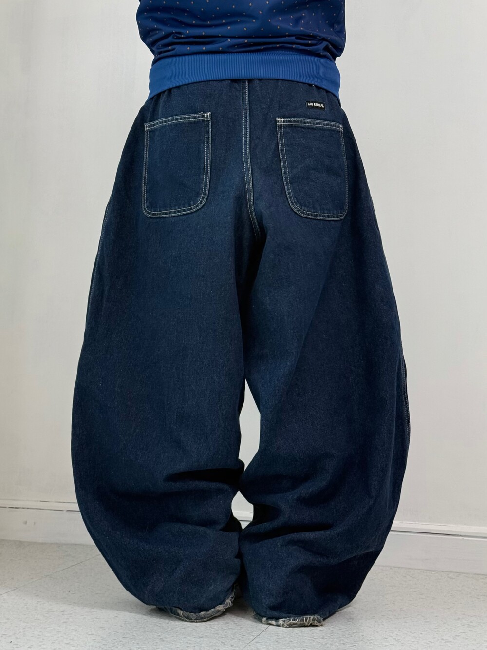 •아조바이아조의 데님 벌룬팬츠 입니다ㅎㅎ 핏이 정말 대대장급이에요,, 실패 없는 힙한 핏 팬츠에요>,<