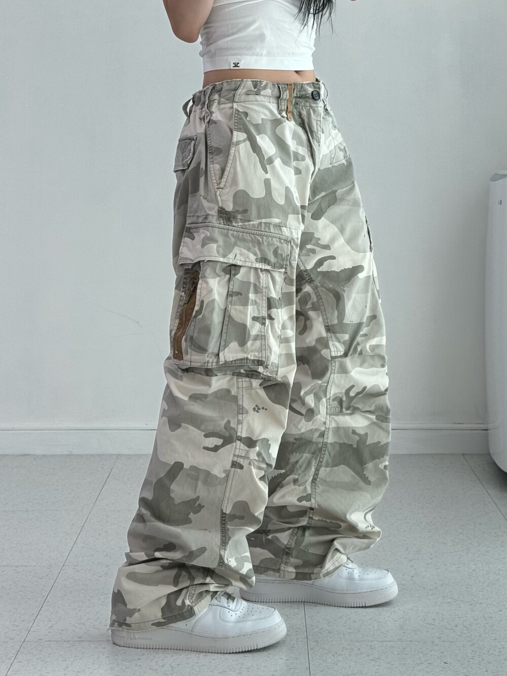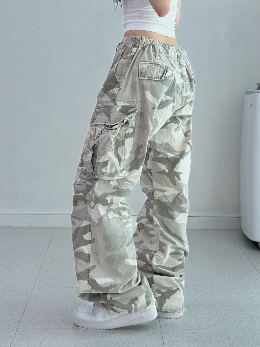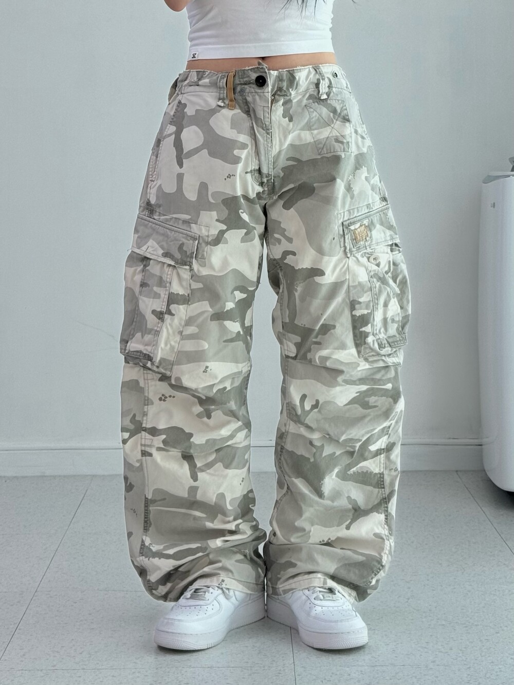 •깔끔 라이트한 블랙앤화이트 카모패턴 카고에요! 허리에 스트랩도 들어가있구 깔끔루즈핏이라 호불호 없이 착용해주시기 좋은 아이템이에요ㅎㅎ