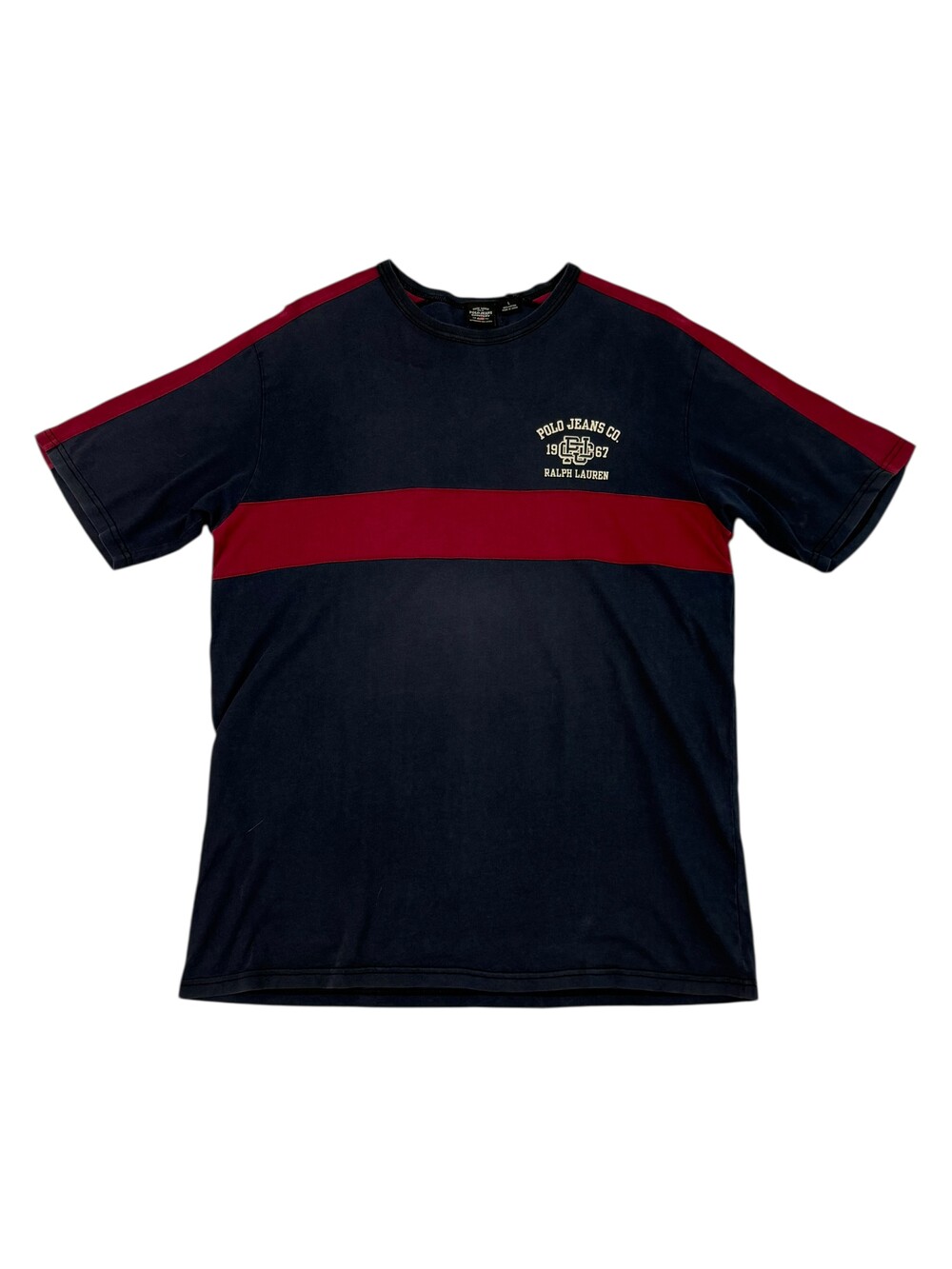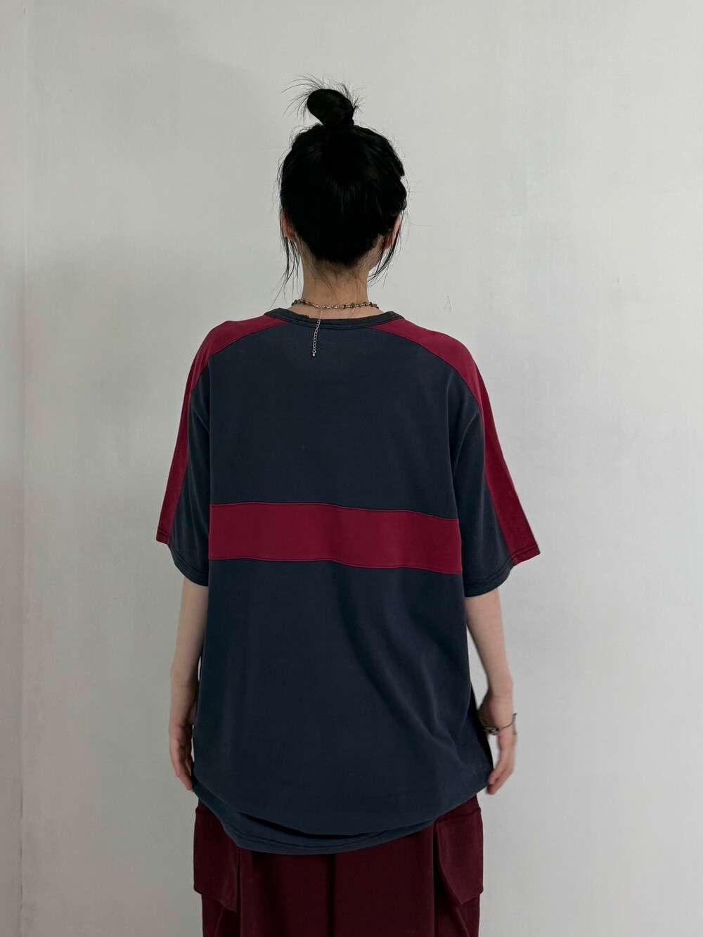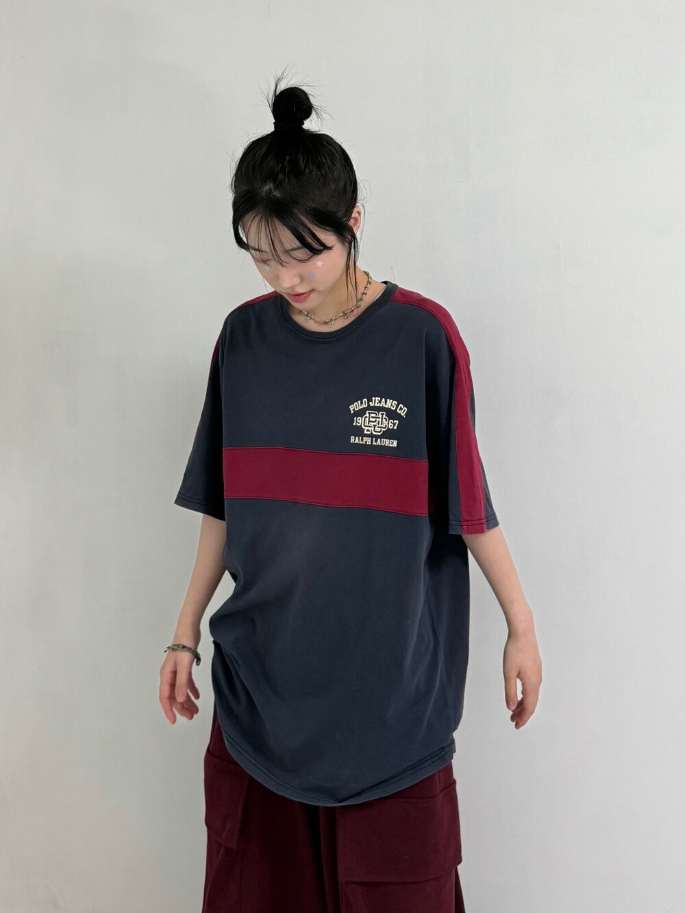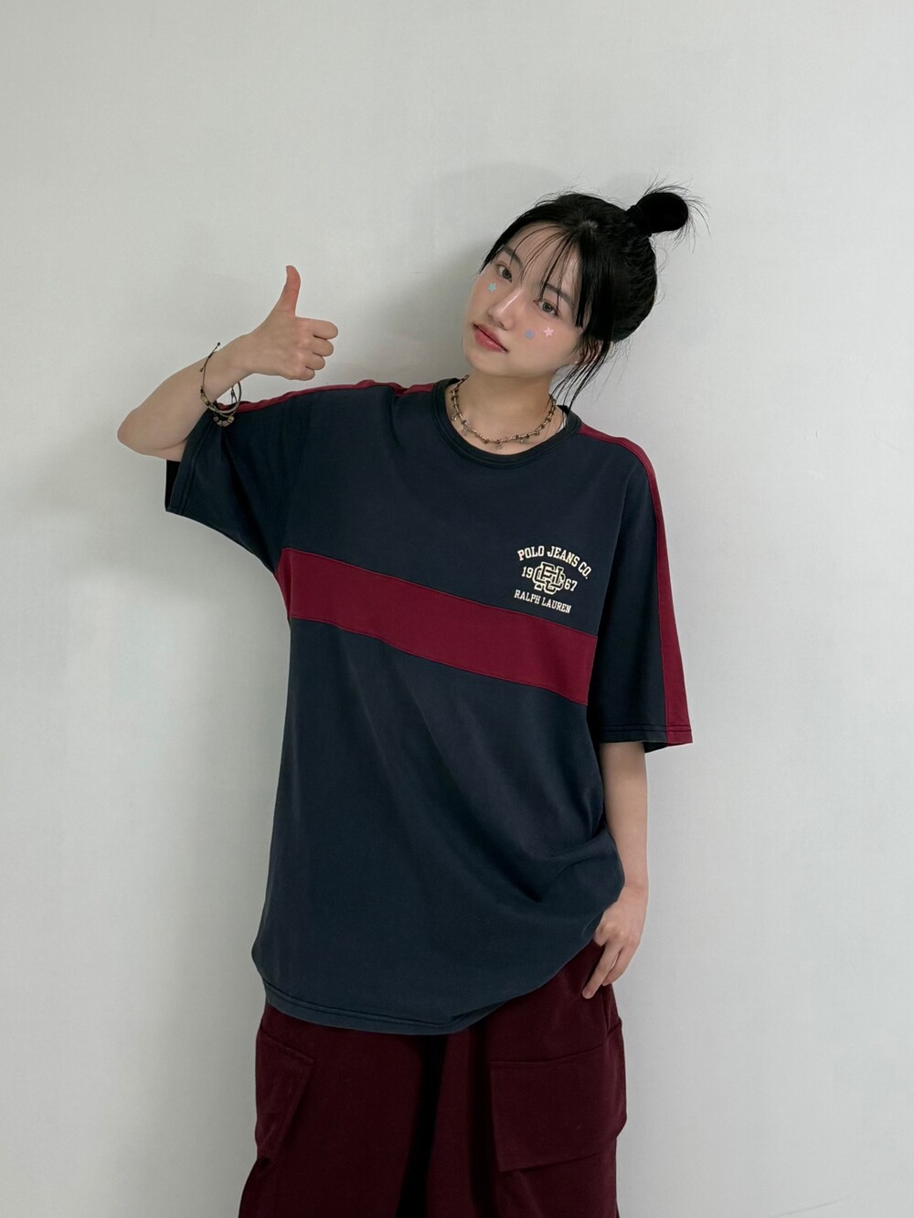 •후리추리 오버핏으로 착용해주시기 좋은 폴로진스 반팔티 입니다ㅎㅎ 오버핏 팬츠와 함께 입어주셨을때 더욱 예쁠것 같아요! 컬러도 네이비+버건디 조합이라 어떤 톤이든 다 잘 어울릴듯 합니다>,<
