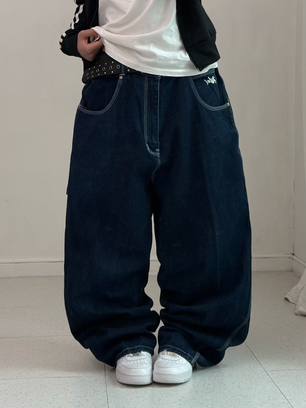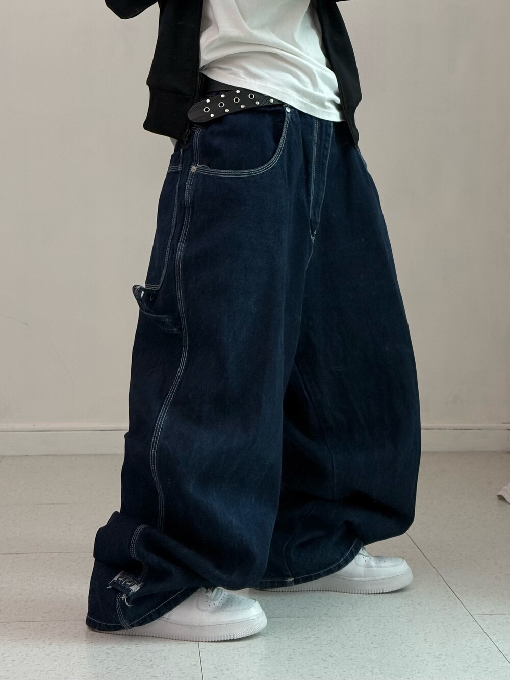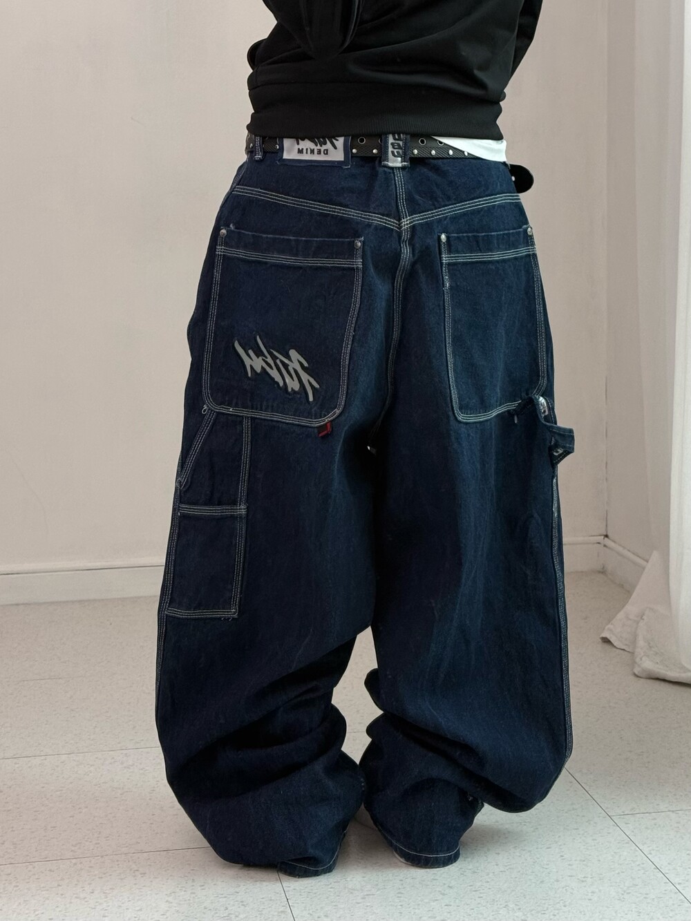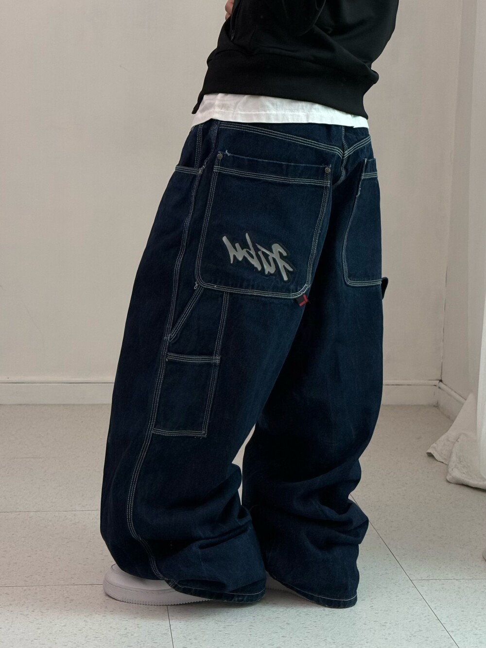 •1세대 힙합 브랜드 후부의 데님 카펜터 입니다! 올드스쿨 무드가 낭낭한 멋스러운 팬츠에요. 백포켓 자수 로고가 진짜 맛도리🖤