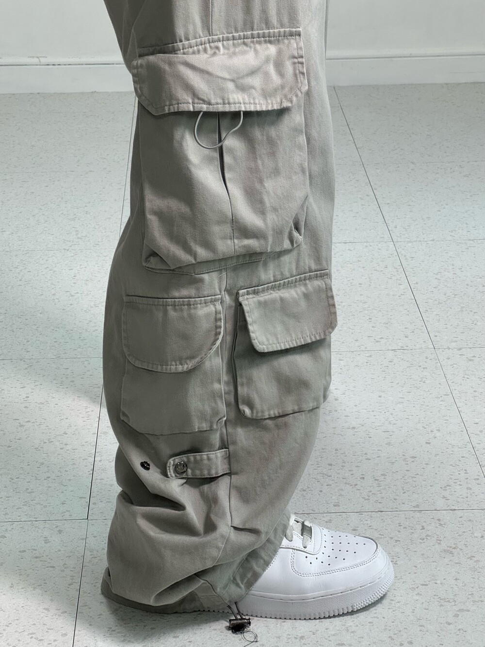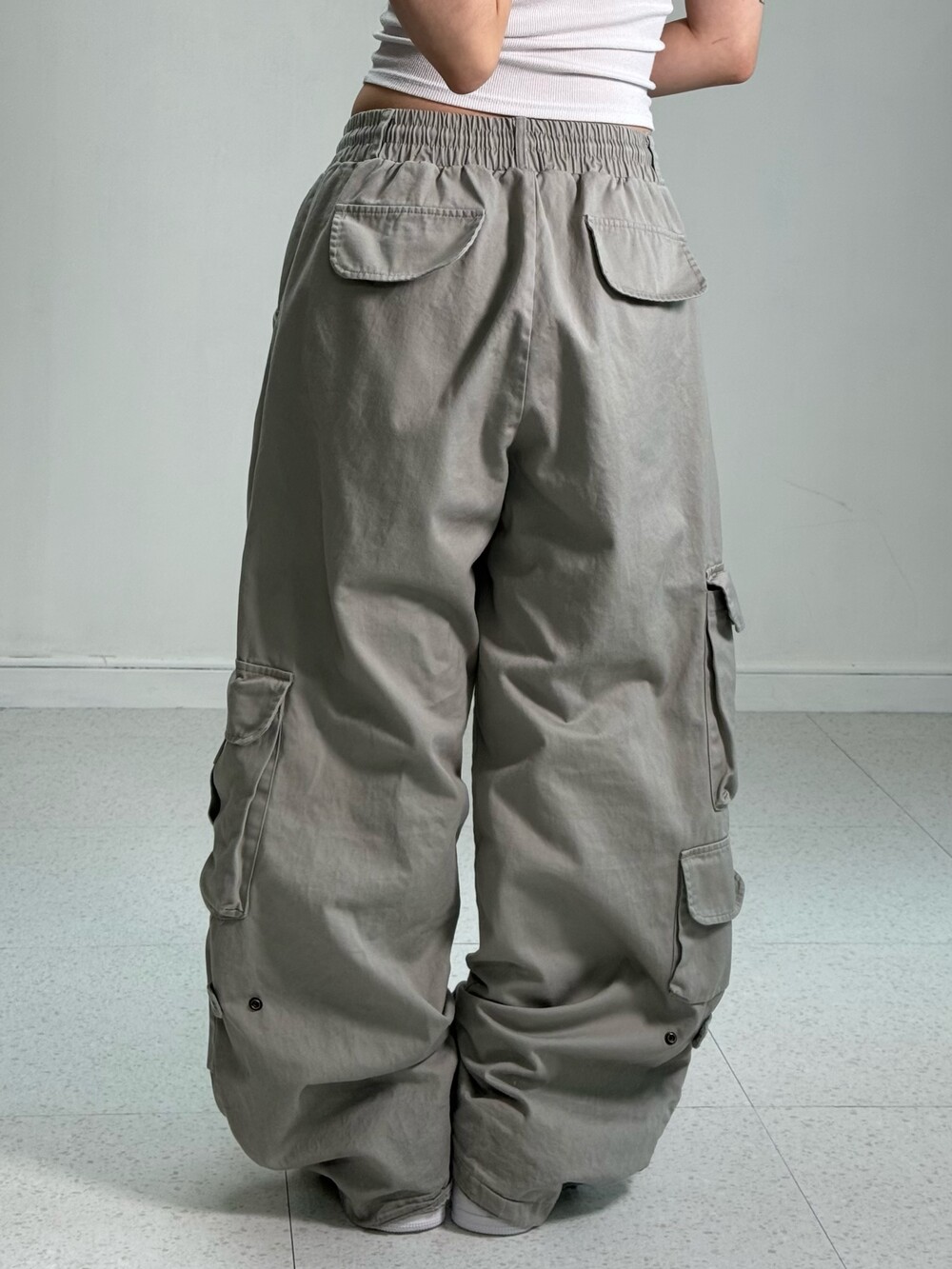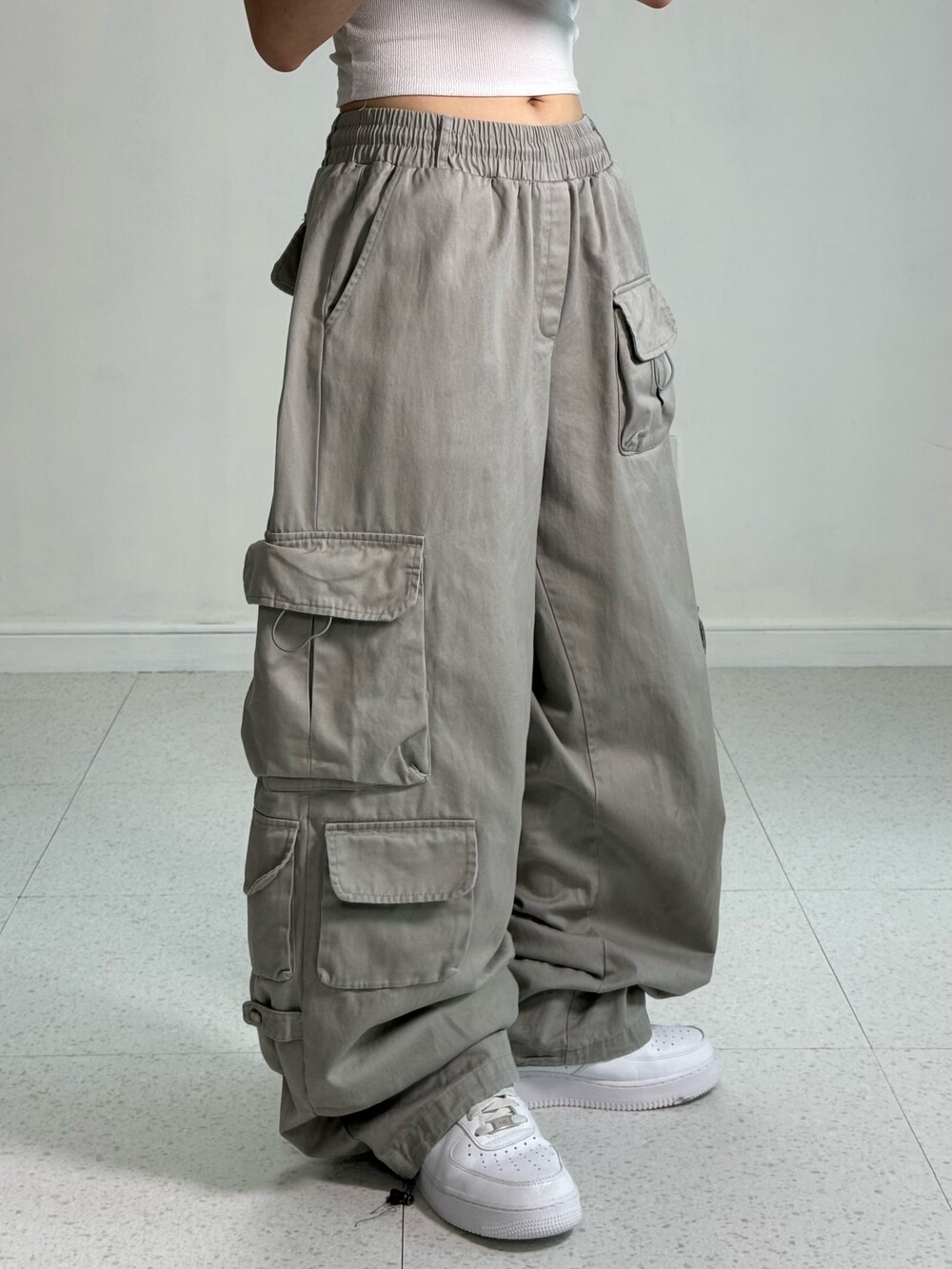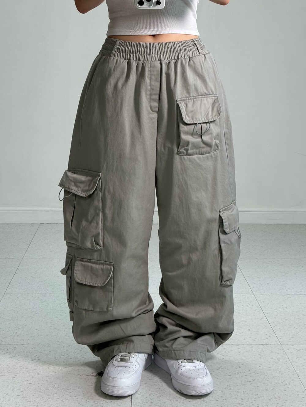 •뮤트 그레이 컬러의 멀티포켓 디자인 카고팬츠 랍니다! 전체적으로 살짝 묵직한 느낌이나면서 멋스럽구, 기장이 길지만 조거연출이 가능하여 150대 이신분들도 충분히 착용가능하셔요!