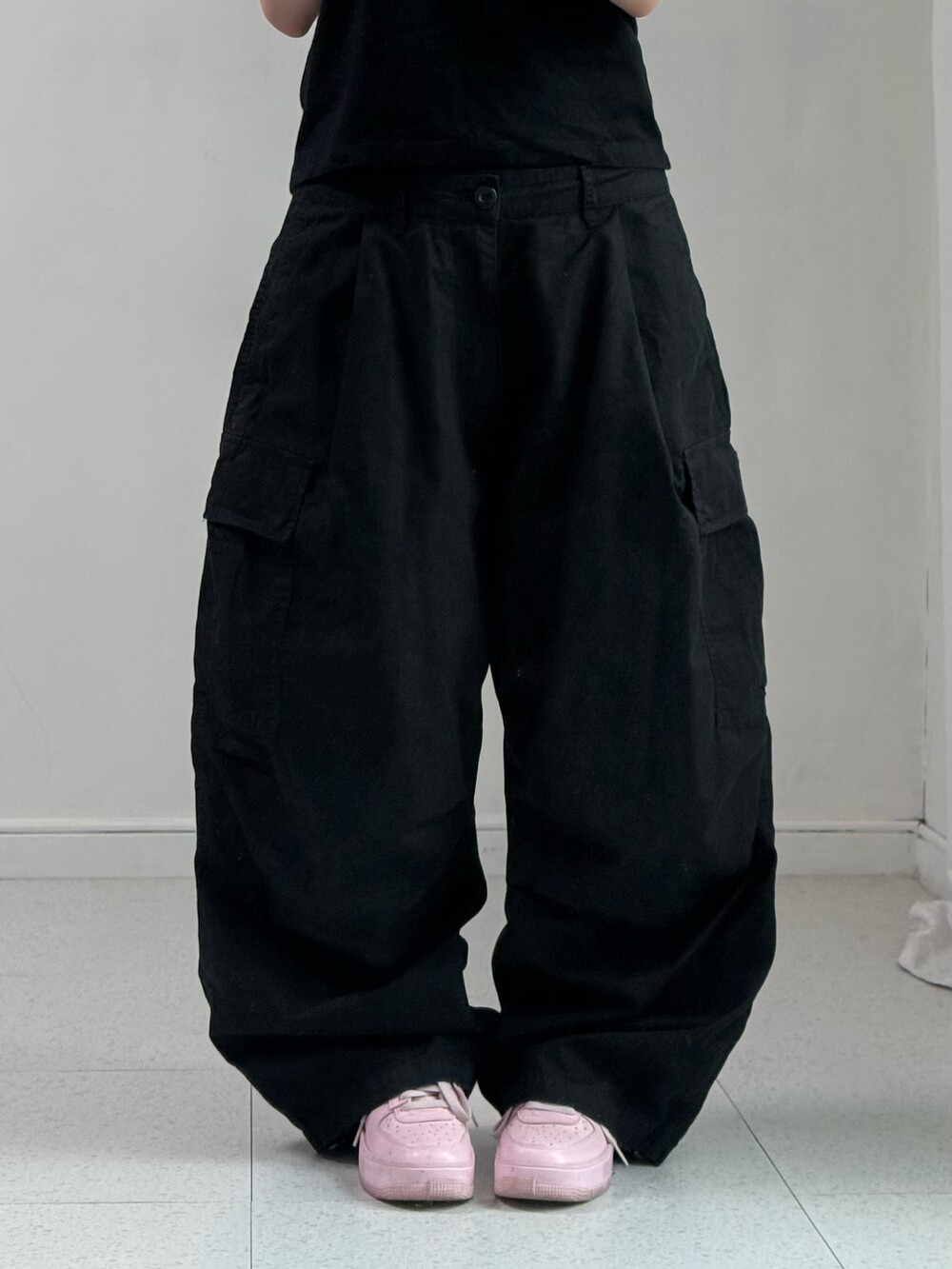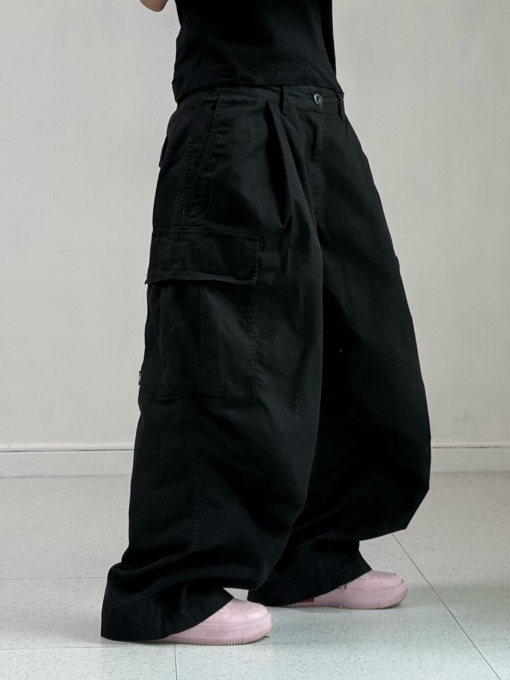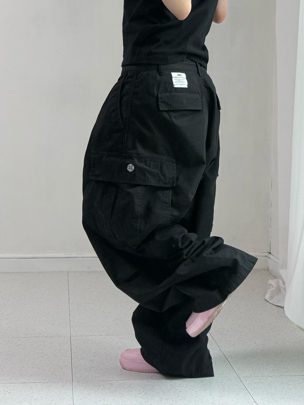 •엘엠씨 와이드 카고 팬츠 입니다! 올 블랙 코디에 포인트 컬러 신발 신어주시면 잘 어울릴것 같아요! 여름에두 착용가능-