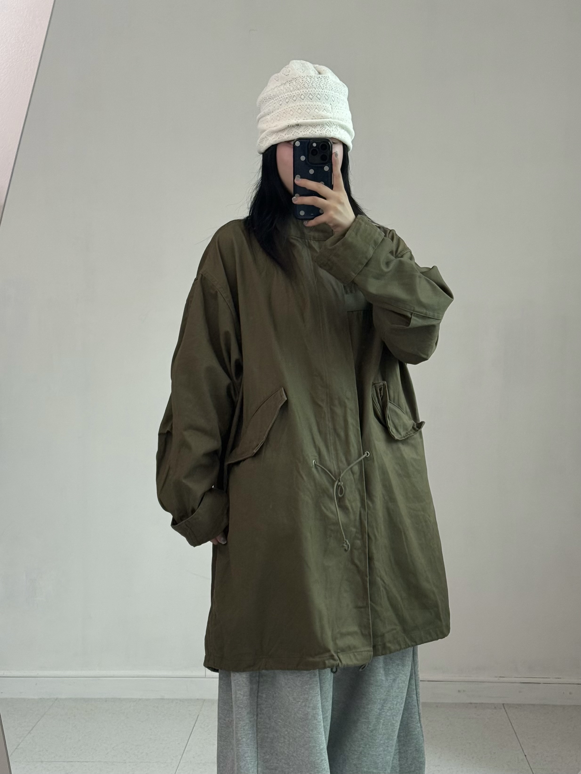 •귀여운룩에 필수템 이죠! 카키 개파카st 자켓 입니다! 허리조절끈도 들어있구 핏도 낭낭하니 예뻐요-