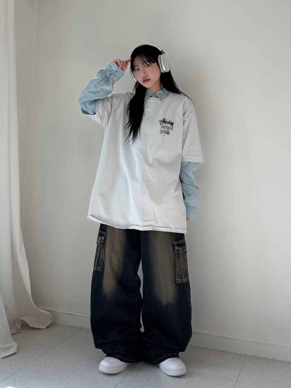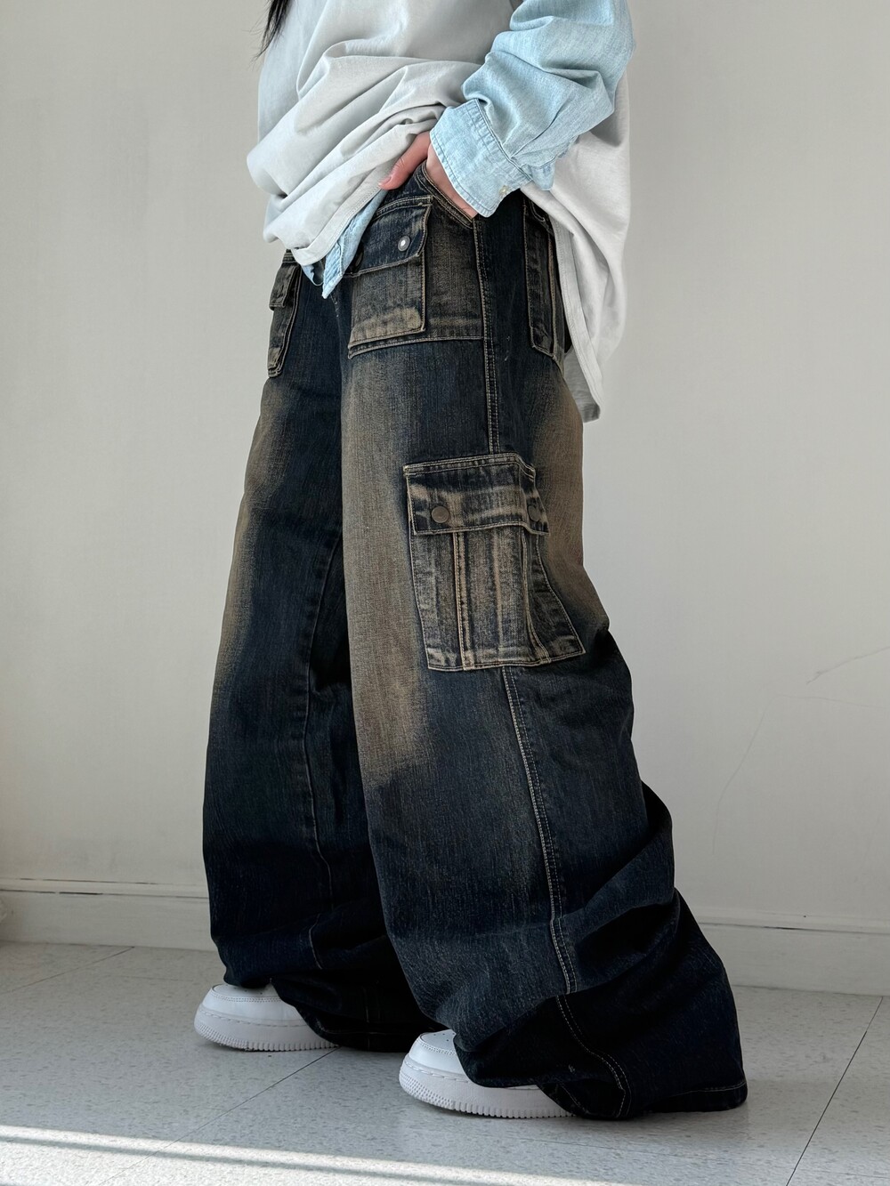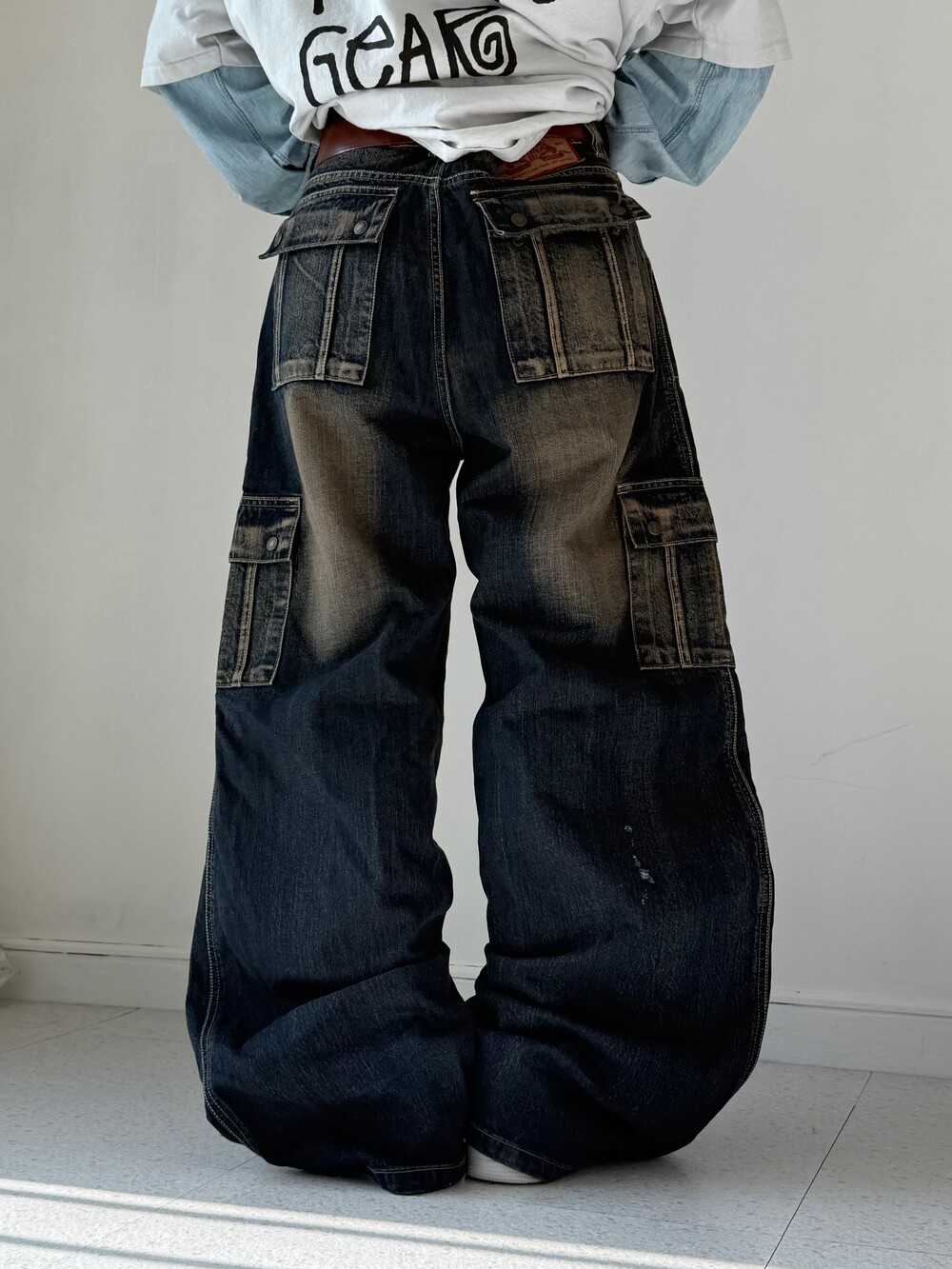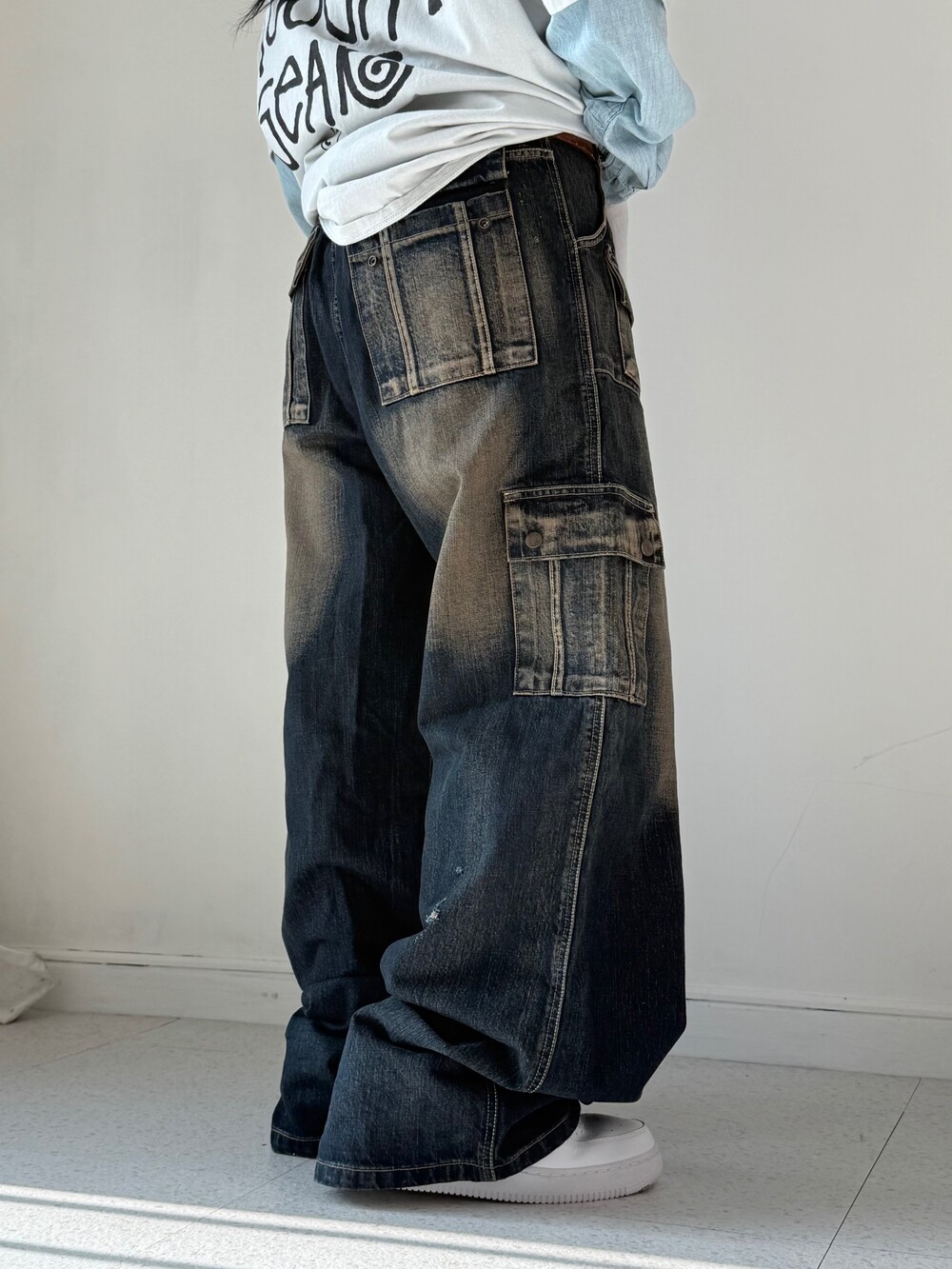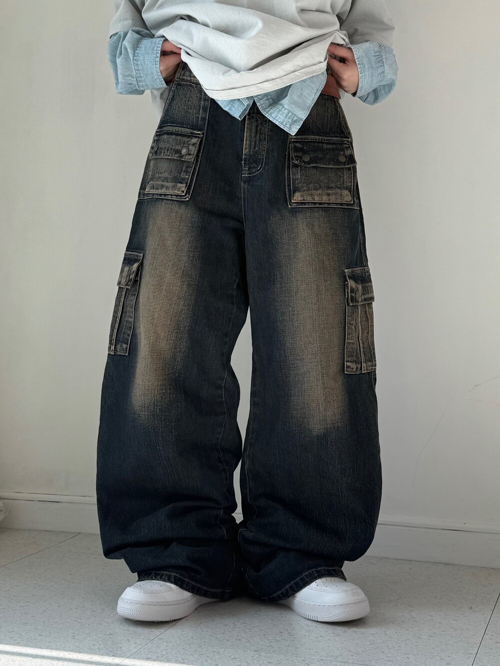 •워싱이 빈티지스럽게 빠져있고 미니포켓 디테일과 와이드한 핏이 굉장히 멋스러운 데님팬츠랍니다🖤