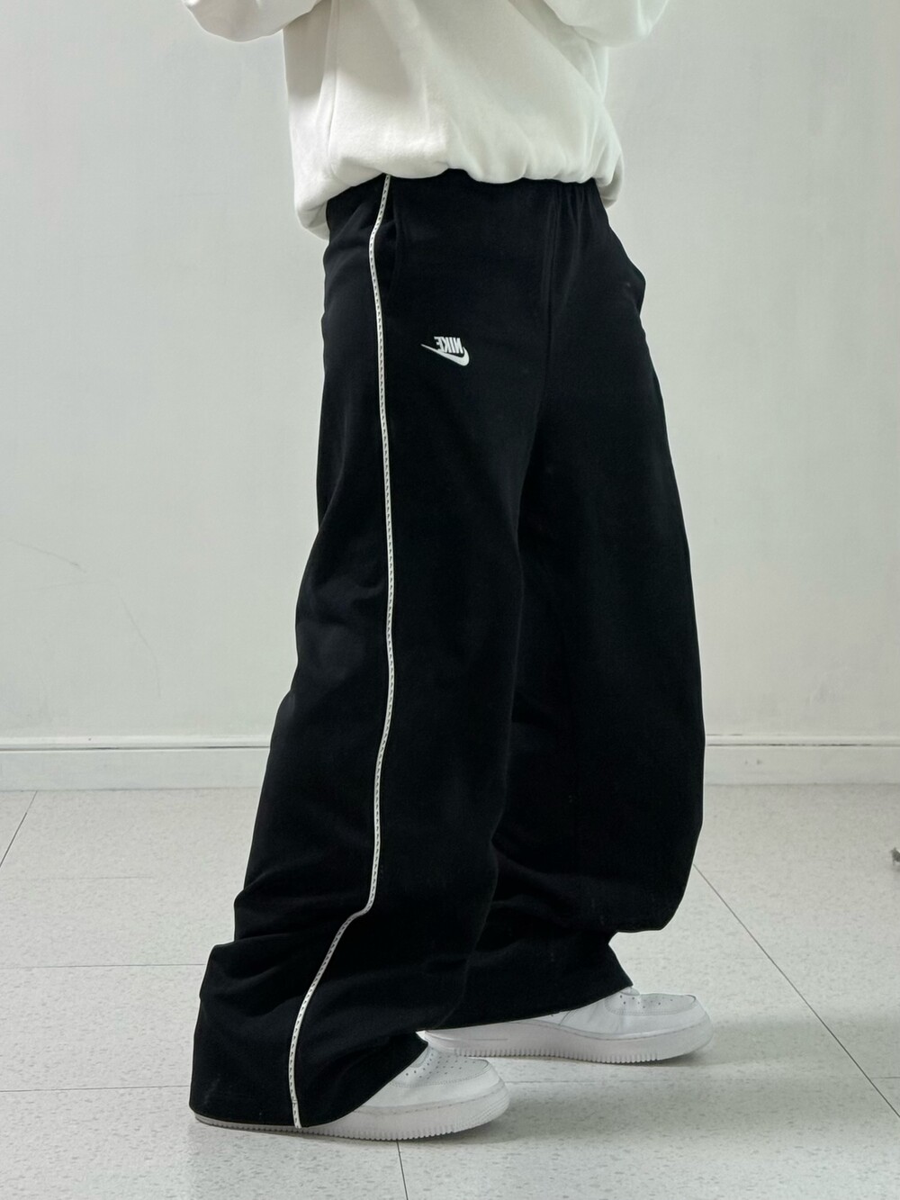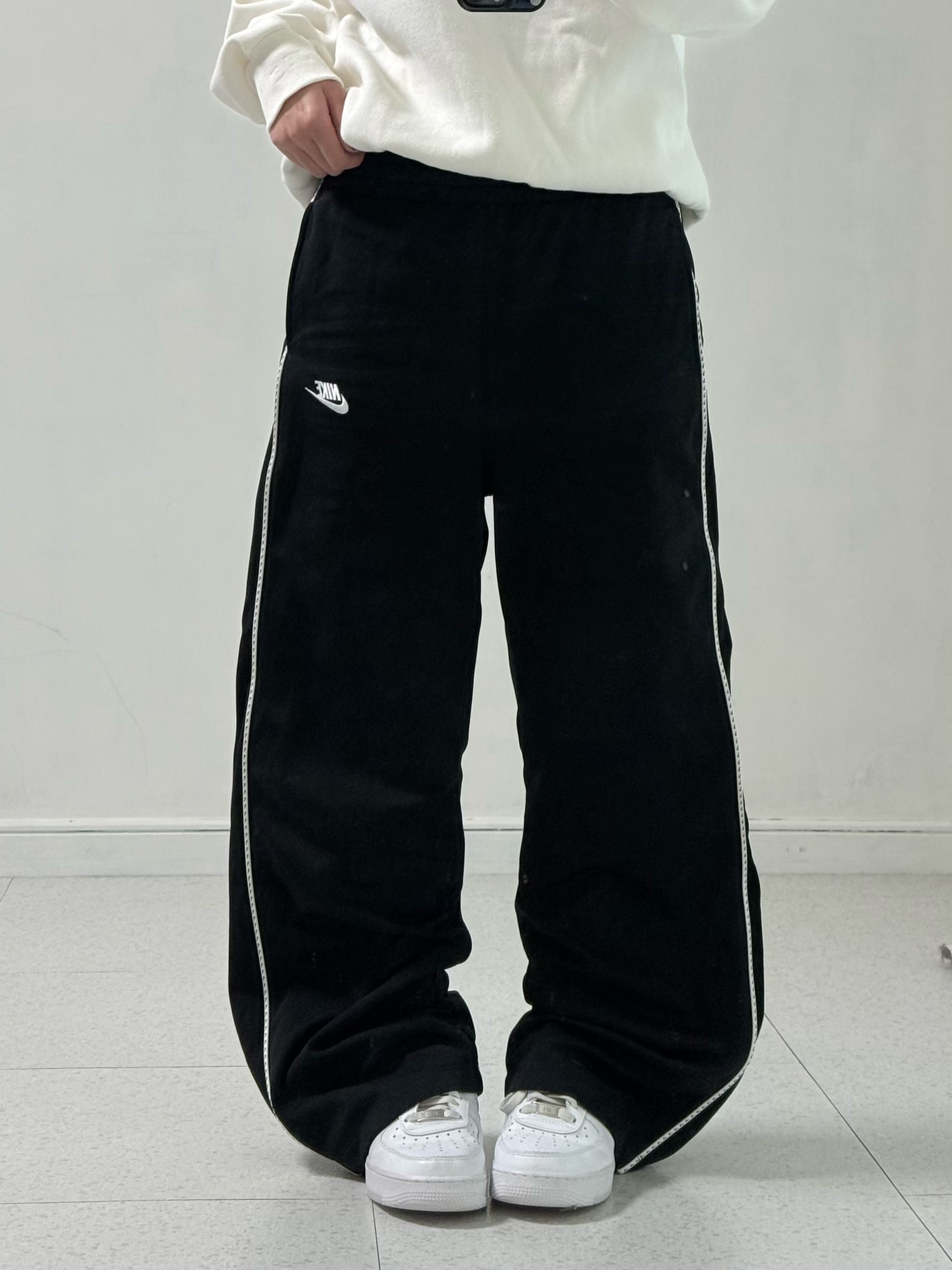 •나이키 블랙 트랙팬츠에요! 여성분들이 깔끔오버핏으로 입어주시기 좋은 아이템인데여, 사이드에 미니 스우시가 쫑쫑 들어간게 쏘 큩 하답니다-