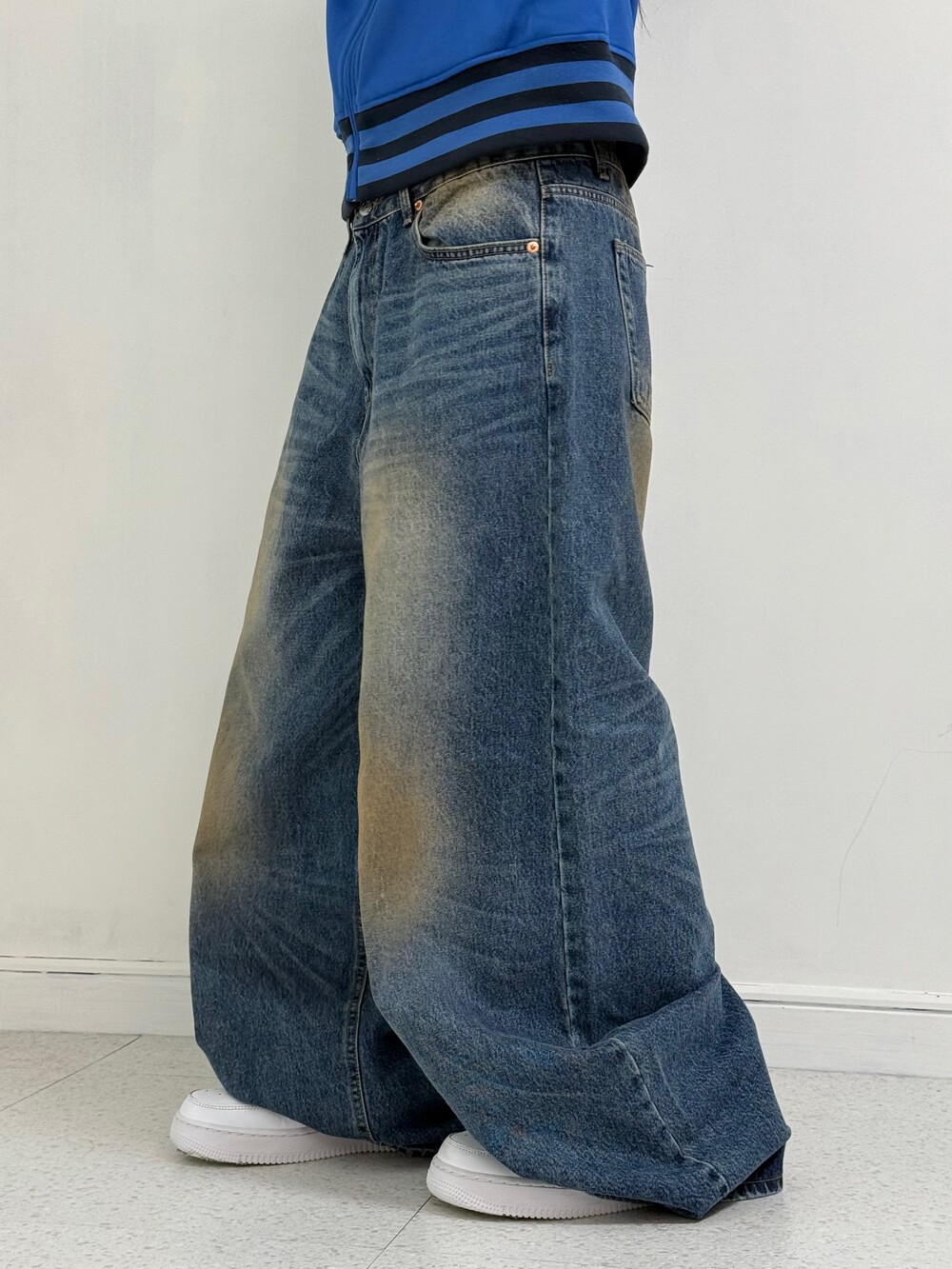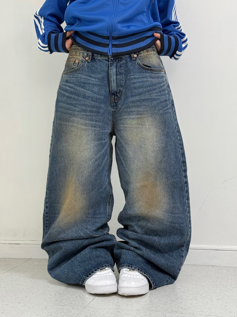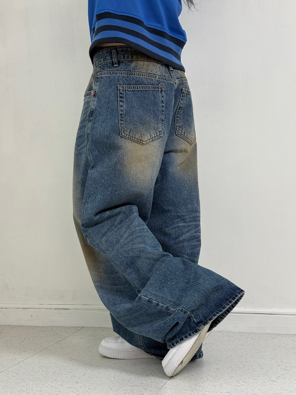 •와이드함과 루즈함이 공존하는 팬츠라 더욱 힙한 무드를 즐기실 수 있으며 앞,뒤 옐로우 워싱이 빈티지한 무드를 더더욱 연출해준답니다<3