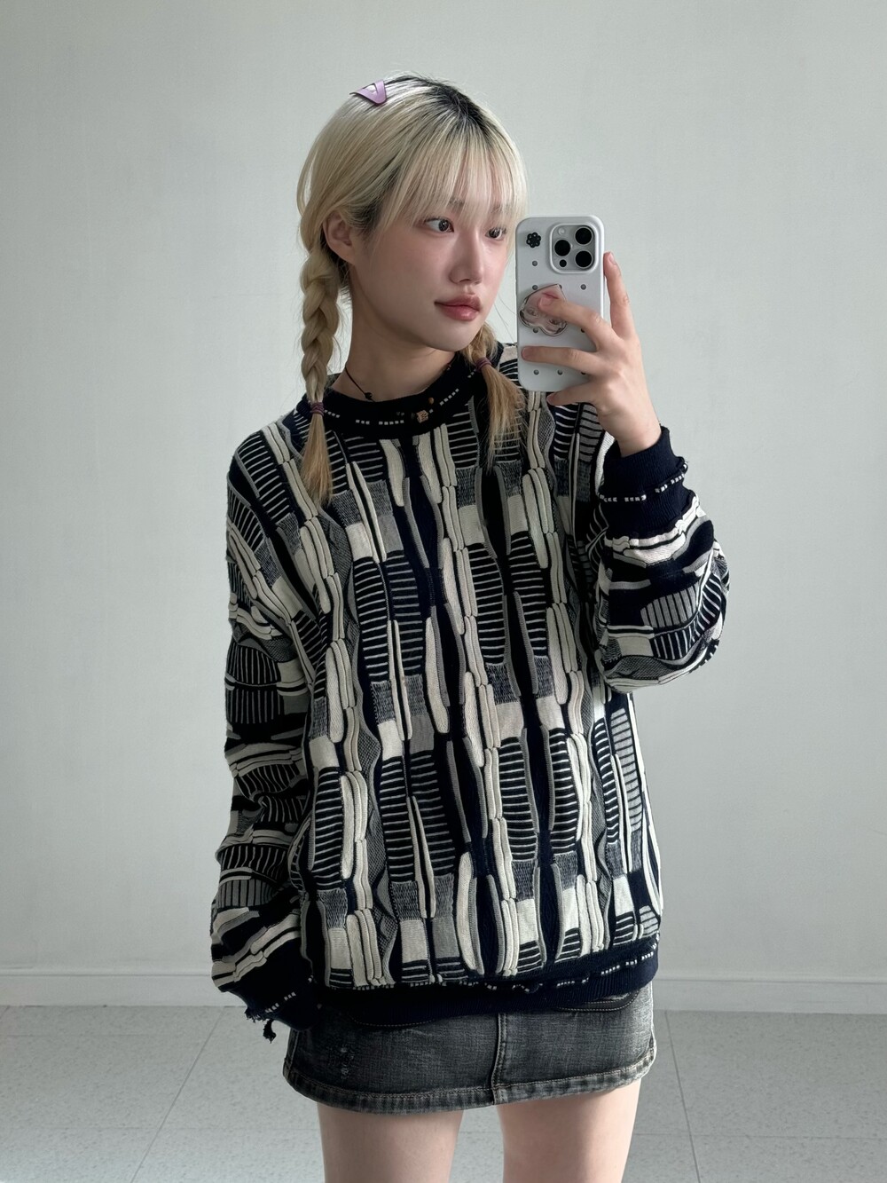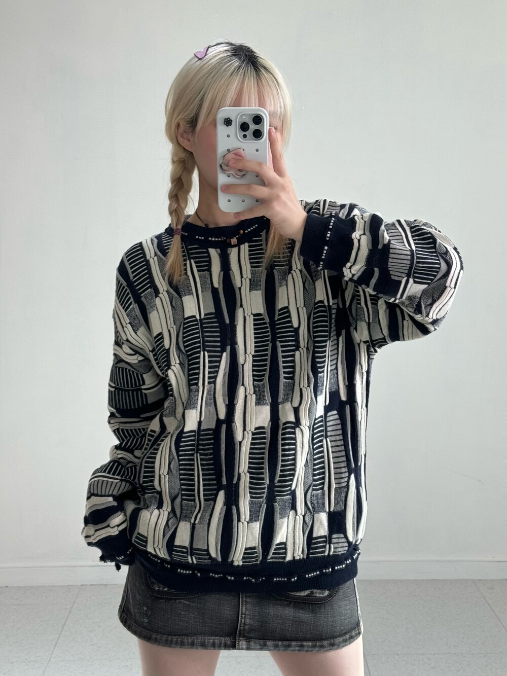 •루즈+널널한 사이즈감의 케이블 니트 입니다! 부담스럽지 않은 패턴의 디자인이라 케이블 니트 입문하시는분들께 추천드려요ㅎㅎ 부드러운 착용감에 적당한 두께감! 완전 귀여운 아이템스 🖤