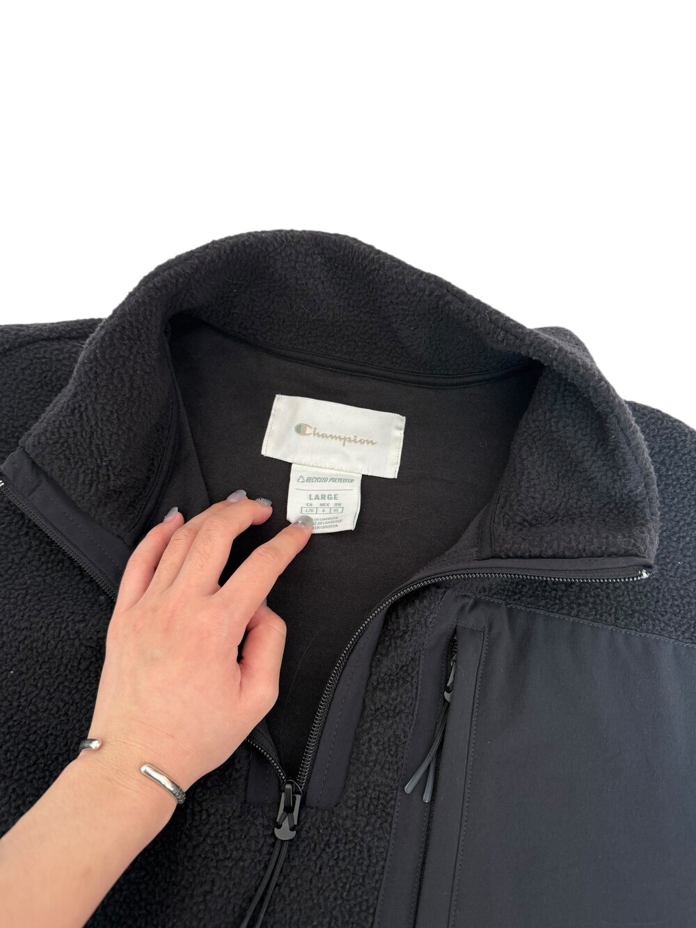 •챔피온 후리스 반집업 입니다! 사이즈 아방방ㅎㅎ 밑단 쭈리도 들어가있고 후리스 원단이라 따수워잉,,