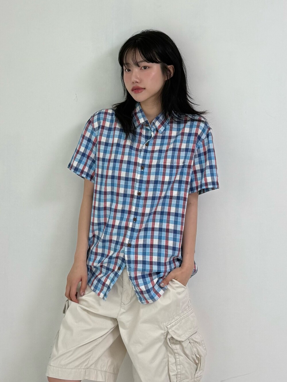 •가볍고 시원한 소재의 제이크루 반팔 체크셔츠 입니다! 색감도 시원해서 여름에 입어주시기 넘 좋죠ㅎㅎ