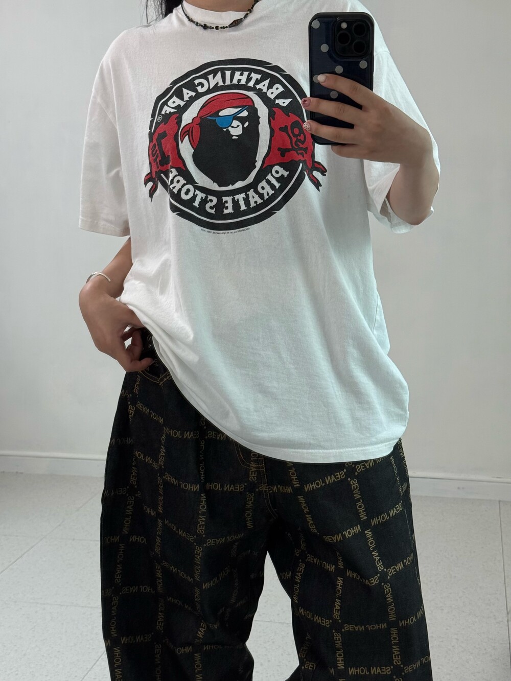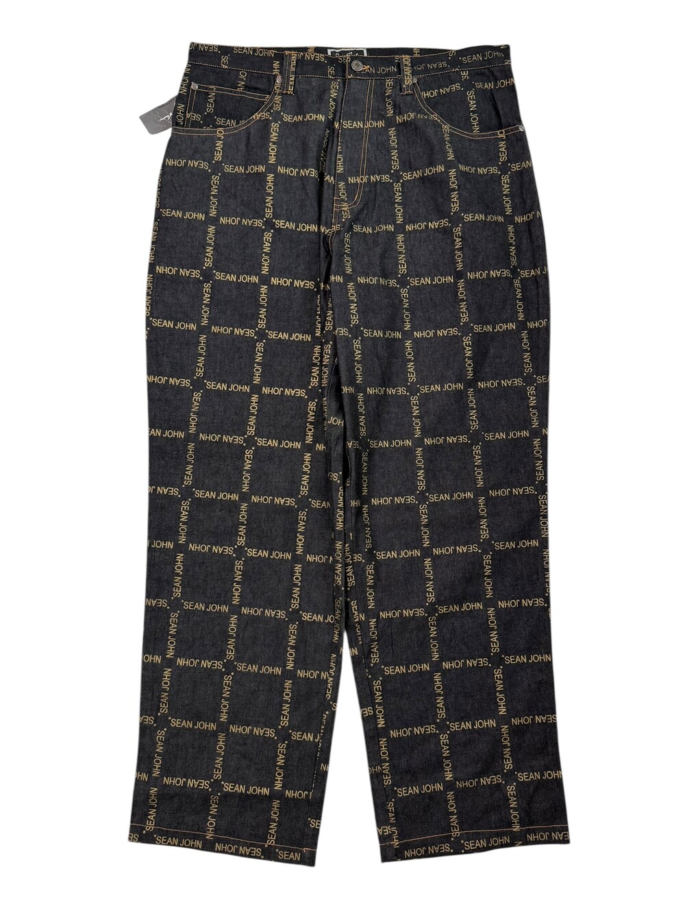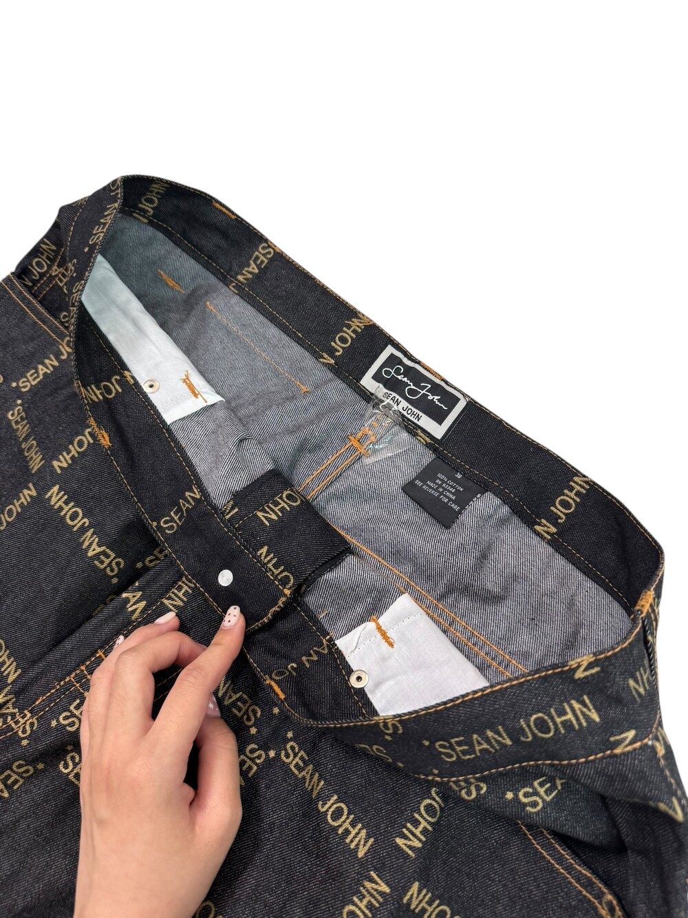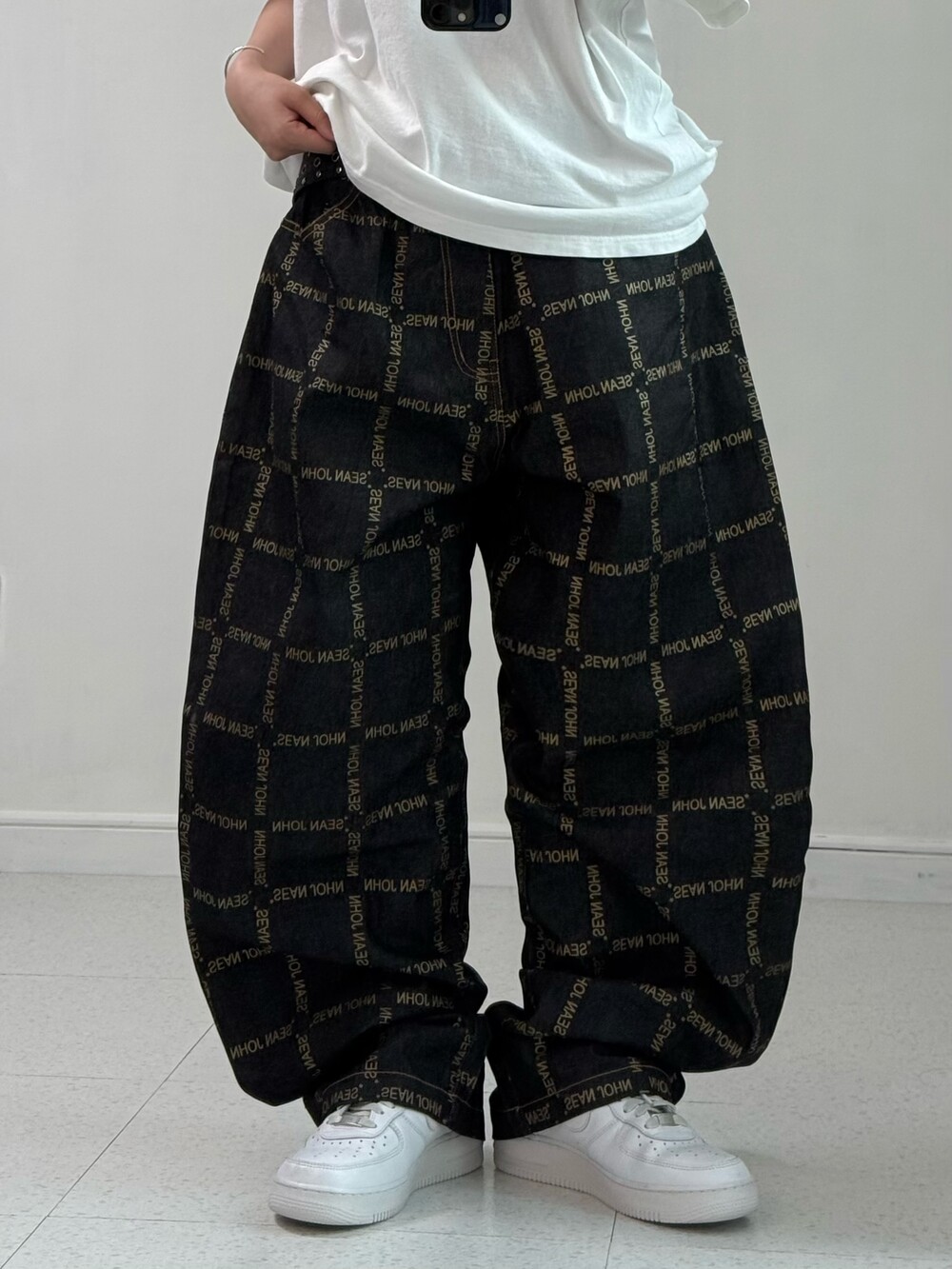 •션존 로고 패턴이 멋드러지게 들어가있는 흑청 와이드 팬츠 입니다. 흑청에 골드컬러 로고가 들어가있어 더욱 멋스럽게 착용해주시기 좋아요ㅎㅎ🖤