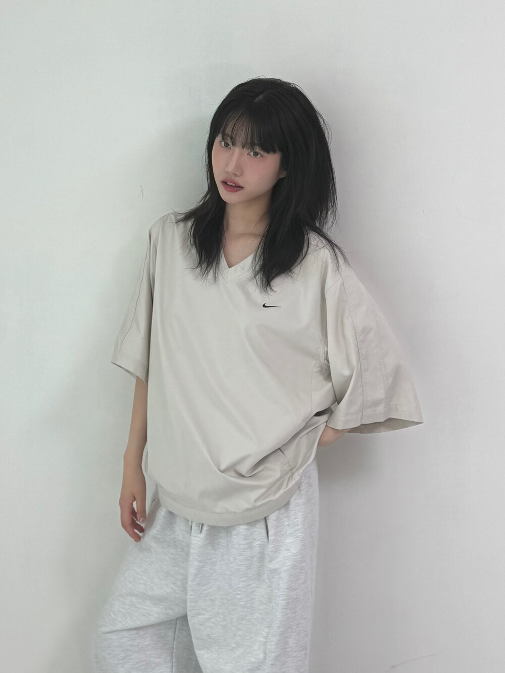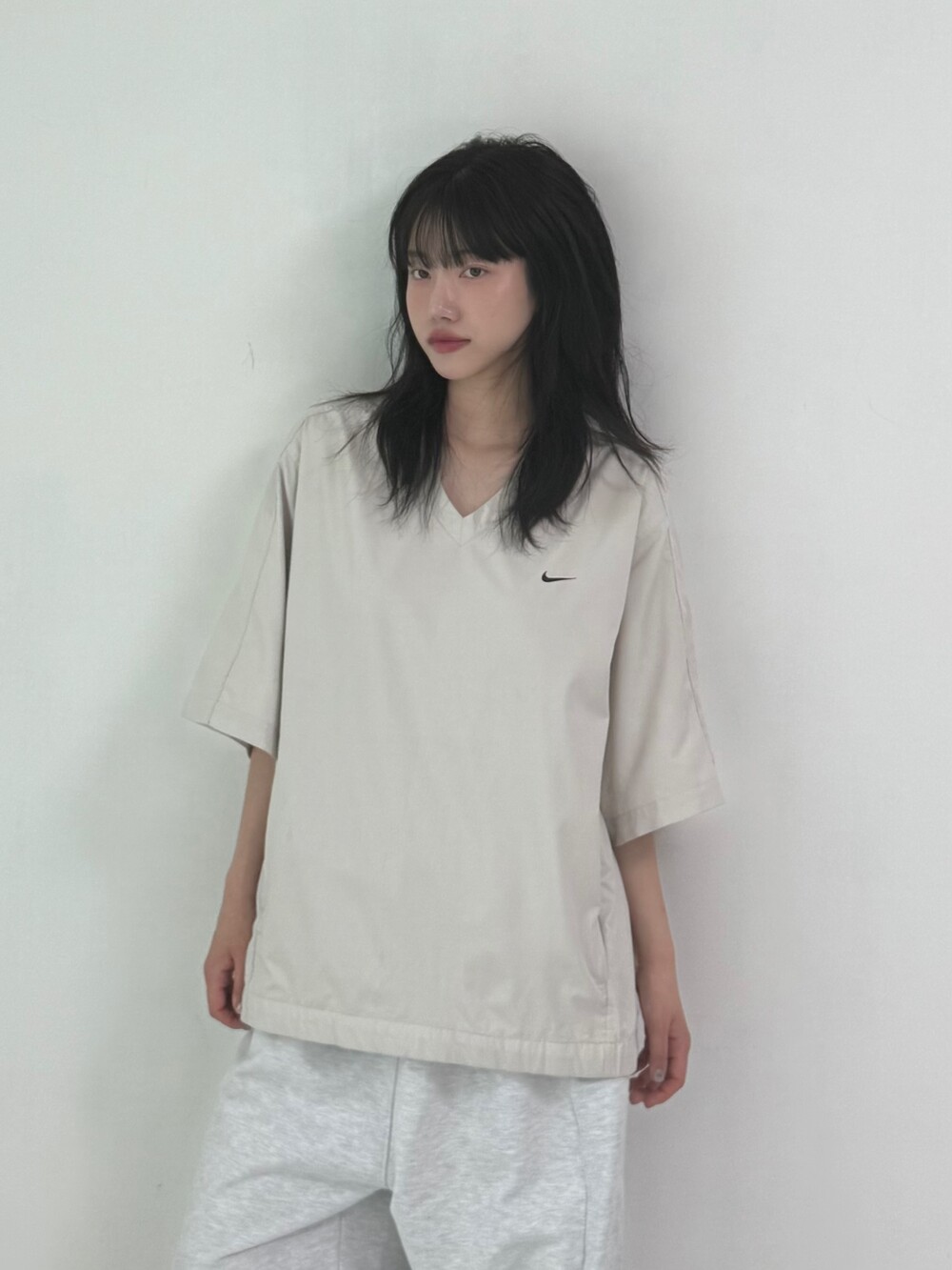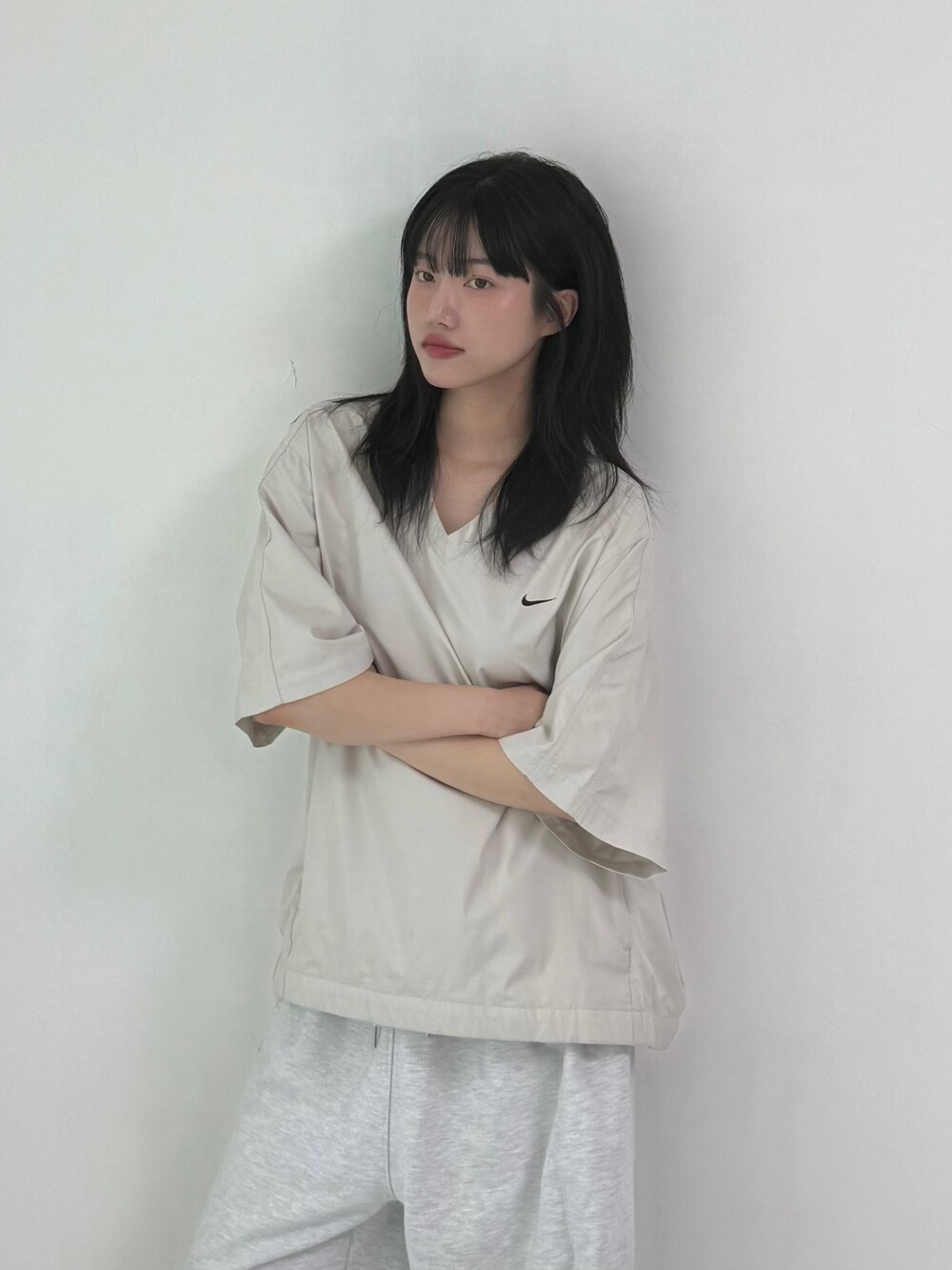 •나이키 라이트 그레이 웜업 입니다ㅎㅎ 반팔이라 단독으로 입어주셔도 좋고, 롱슬리브, 후드랑 함께 코디해주세요:)