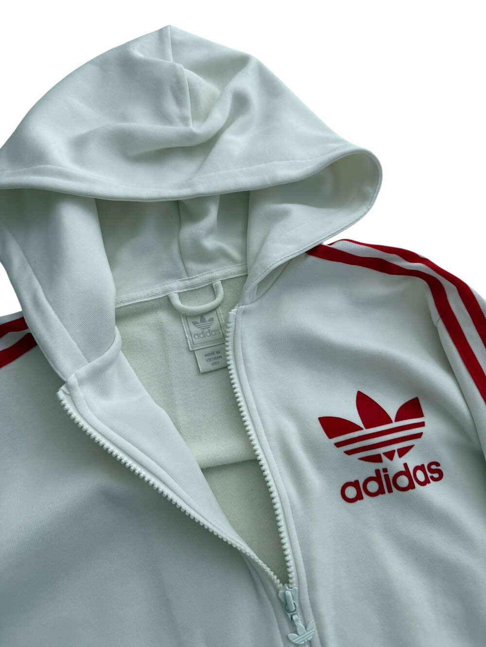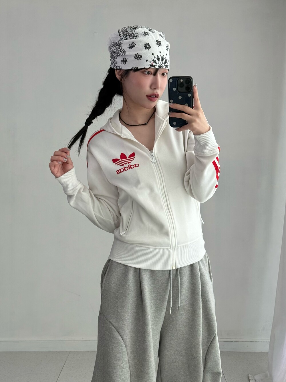 •희귀매물 아디다스 화이트 레드 져지 후드집업 입니다! 딱붙핏이라 여성분들이 딱붙으로 입어주시기 좋아요❤️