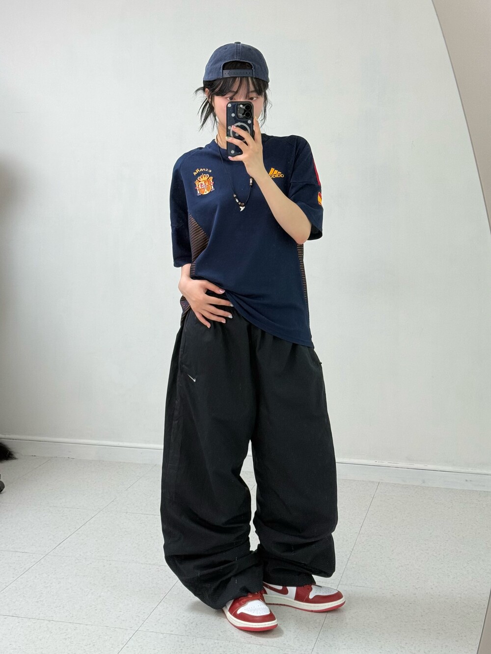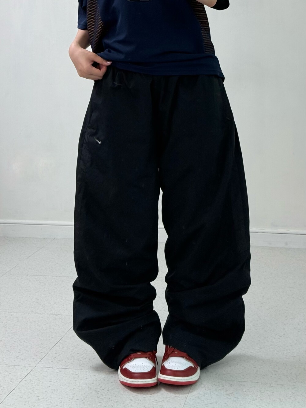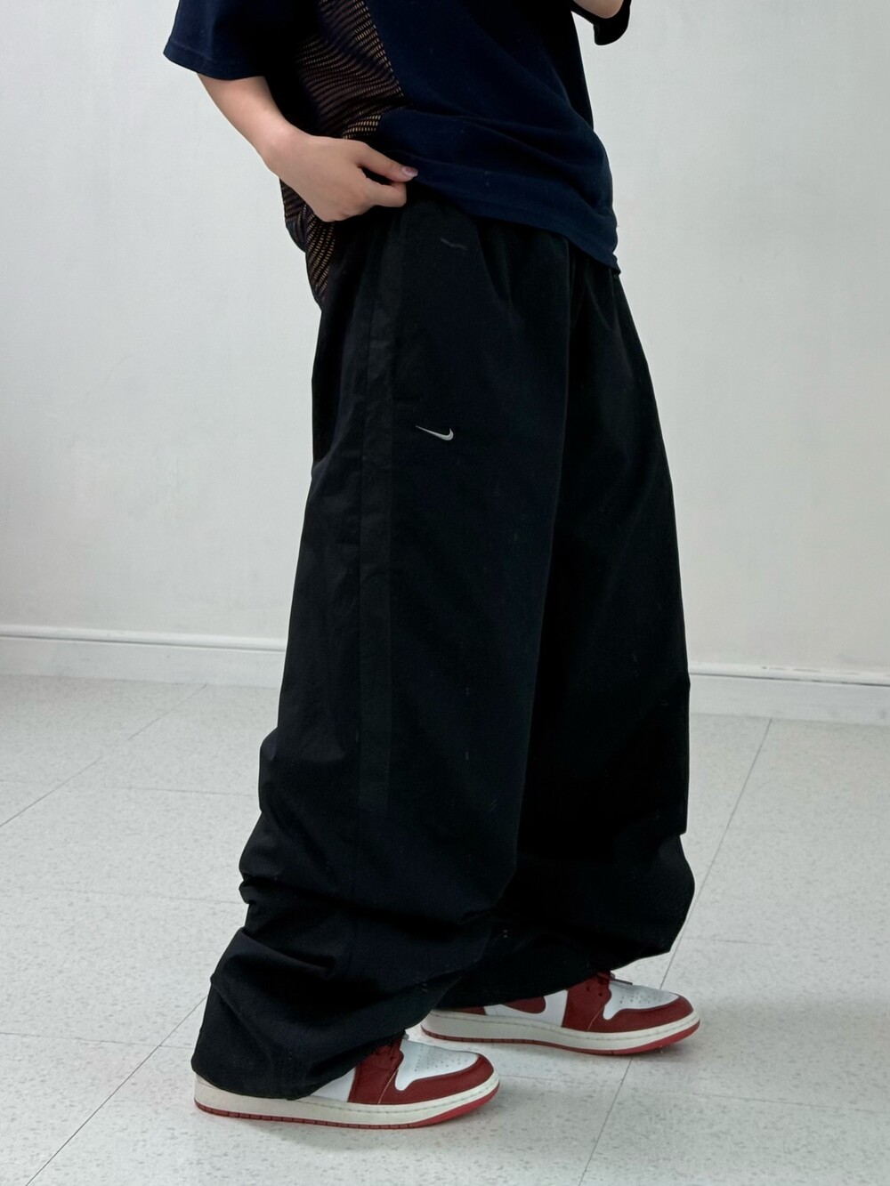 •나이키 블랙 나일론 팬츠 입니다. 오버핏 사이즈다보니 입었을때 그 힙함이 너어무 예쁜 데일리템이에요ㅎㅎ