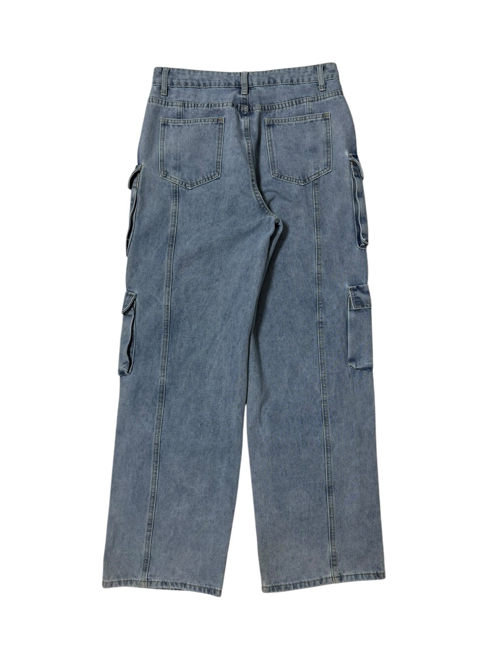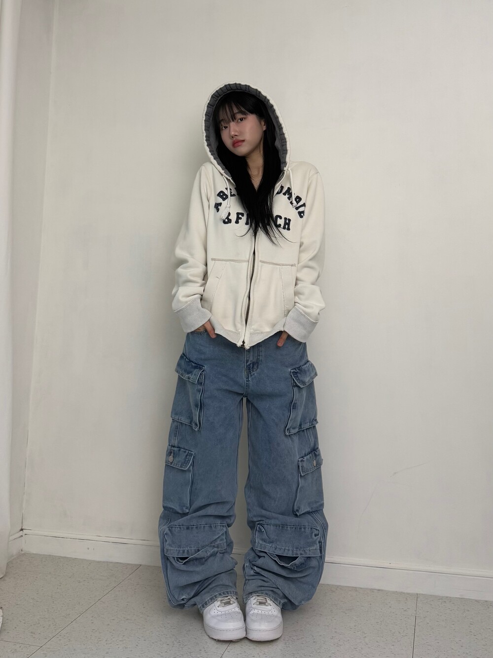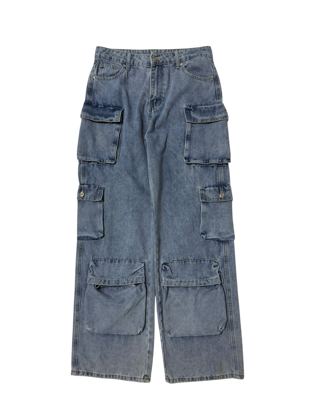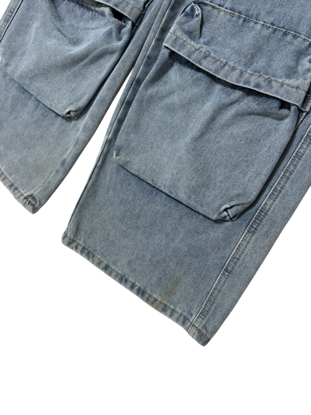•멀티포켓 디자인의 데님 카고팬츠 입니다. 와이드하면서 묵직하게 떨어지는 핏이라 멋스럽게 포인트로 입어주시기 좋은 팬츠랍니다!