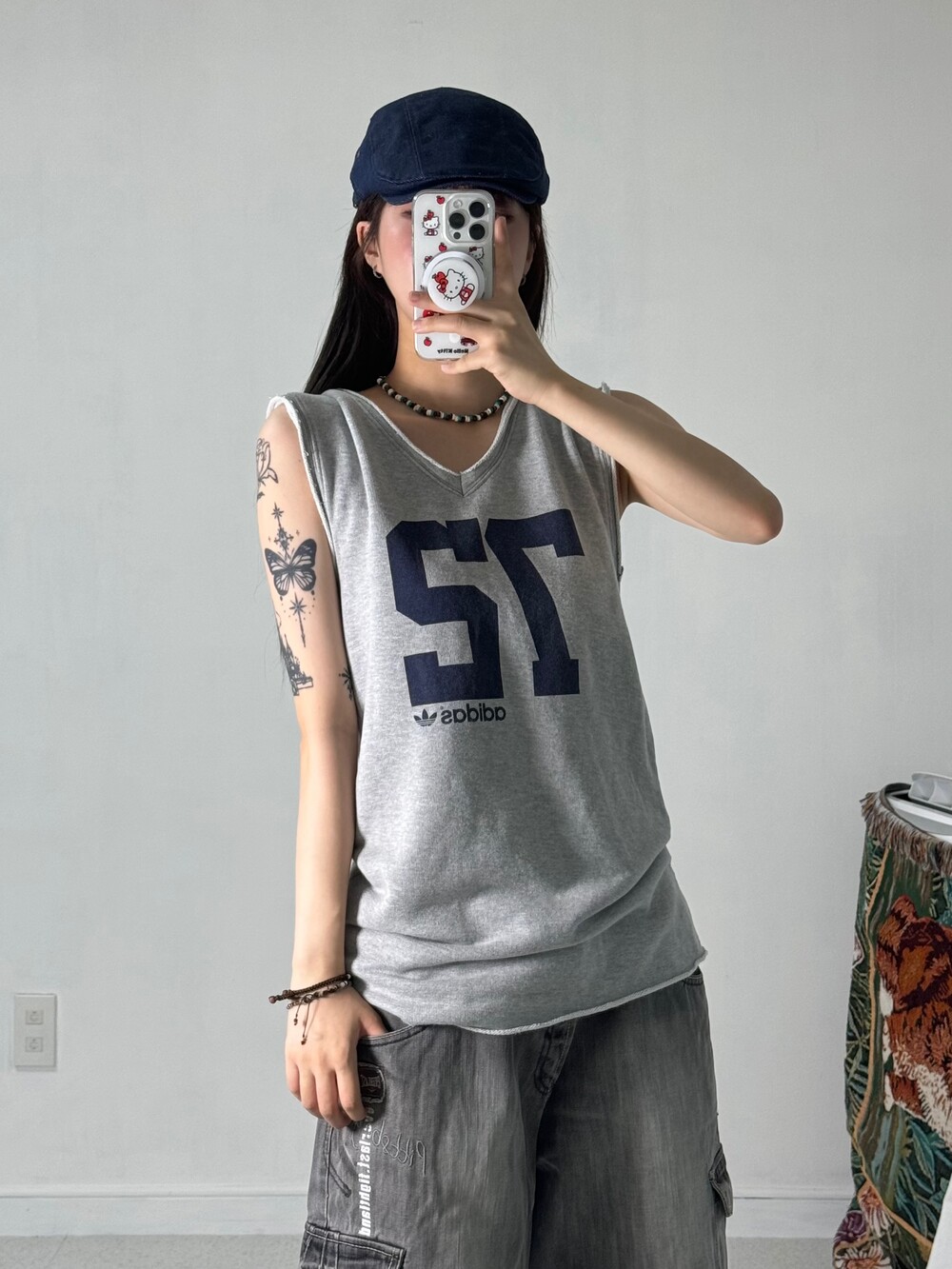 아디다스 그레이 후드베스트에요! 후리추리 감성으로 입어주시기 좋고 여름에는 단독으로 가을에는 레이어드로 멋스럽게 입어주셔요🖤😎