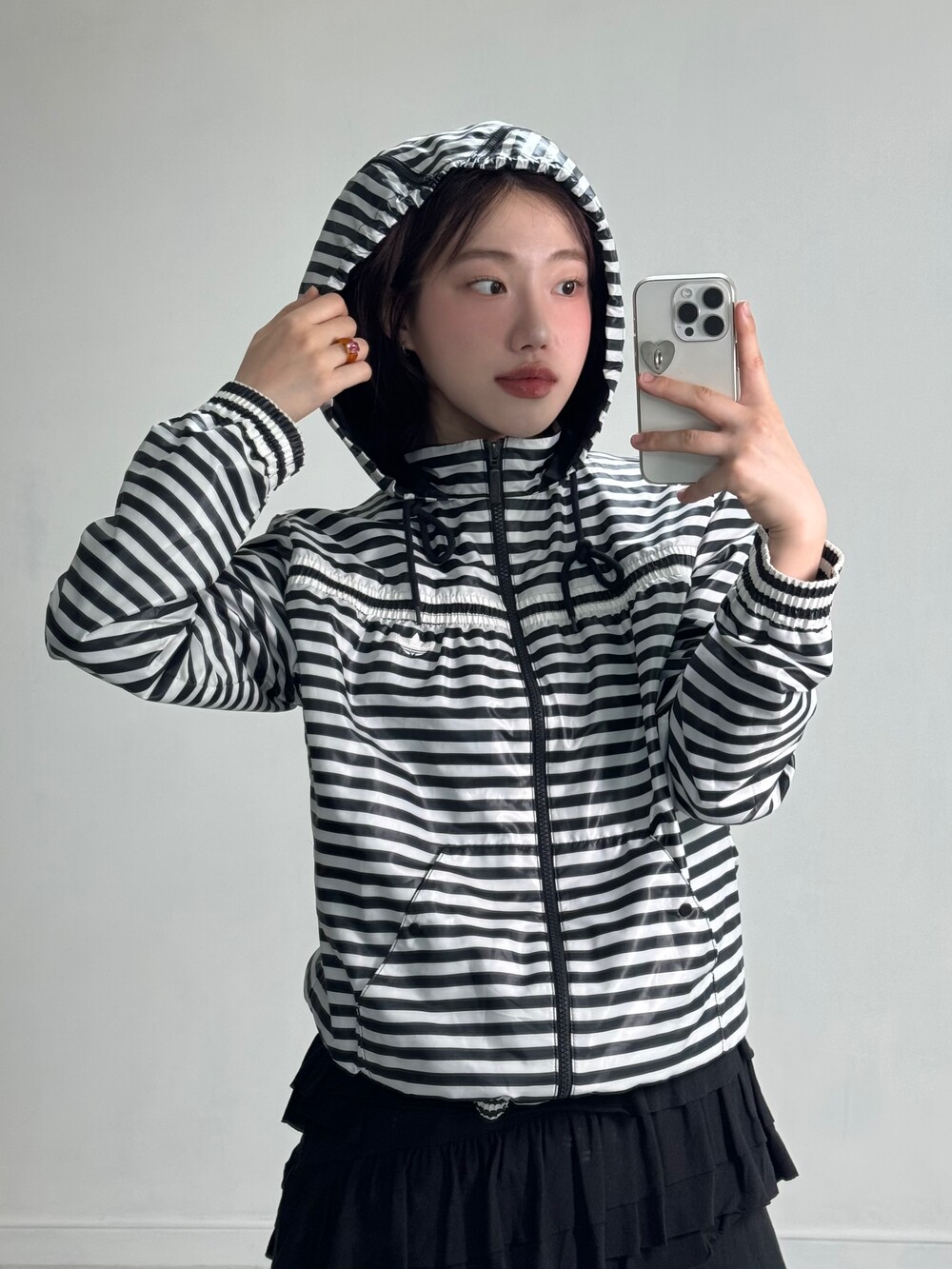 •스트라이프 귀요미 스타일 아디다스 바람막이..ㅜ 제 옷장으로 가져갈까 하다가 억지로 눈물 흘리며 보여드립니다.. 아방핏에 귀여운 파이어버드 로고가 들어가있어서 더 예쁘구 후드에 지퍼도 달려있어서 완전 레어템이랍니돠