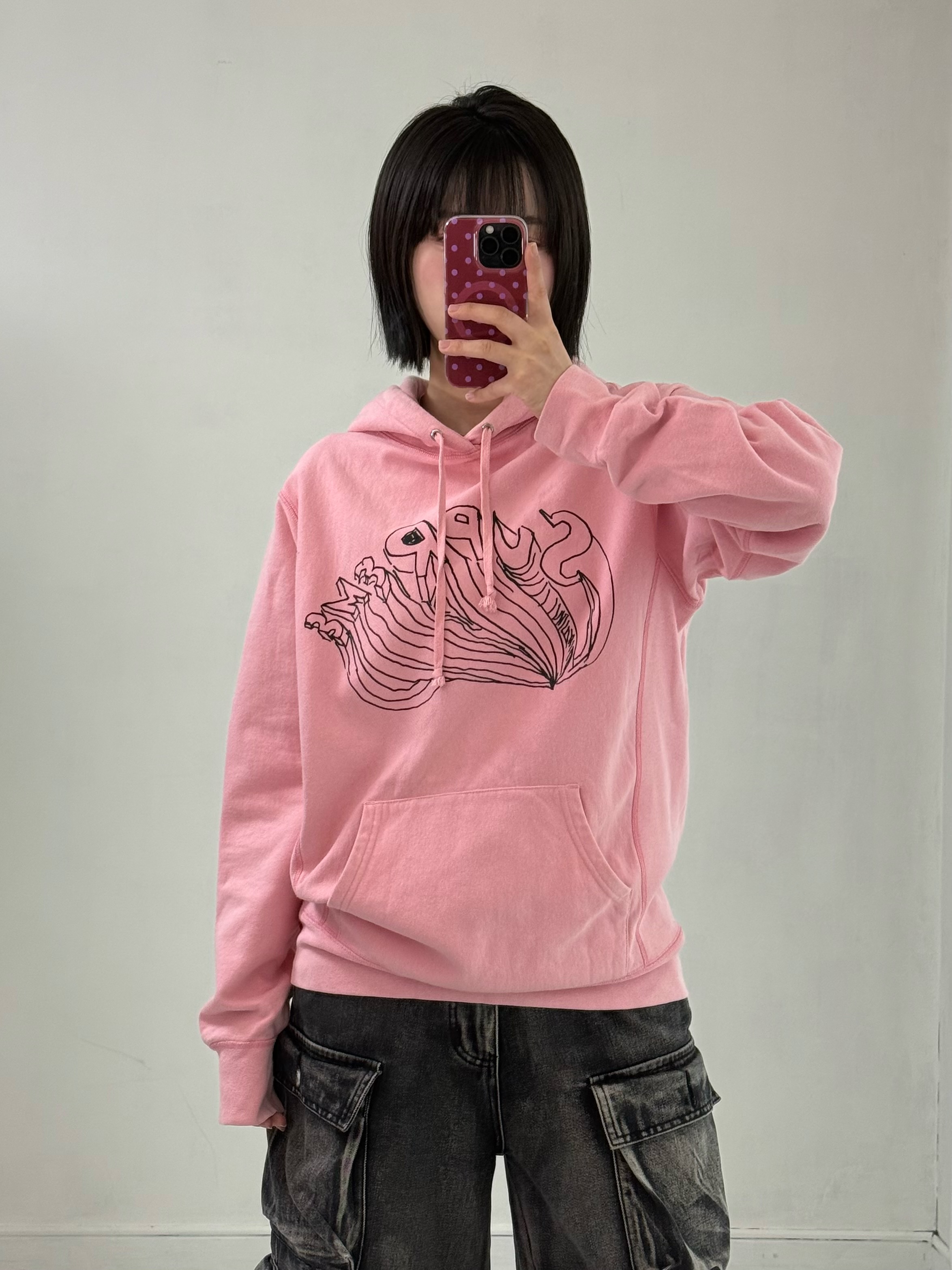 •슈프림 x 다니엘 존스톤 15fw 후디 입니다. 슈프림 특유의 탄탄한 원단이 돋보이는 제품이에요! 국내에 블랙은 몇개 있는것 같지만,, 핑크는 오직 무오데에서만 만나볼 수 있답니다~~