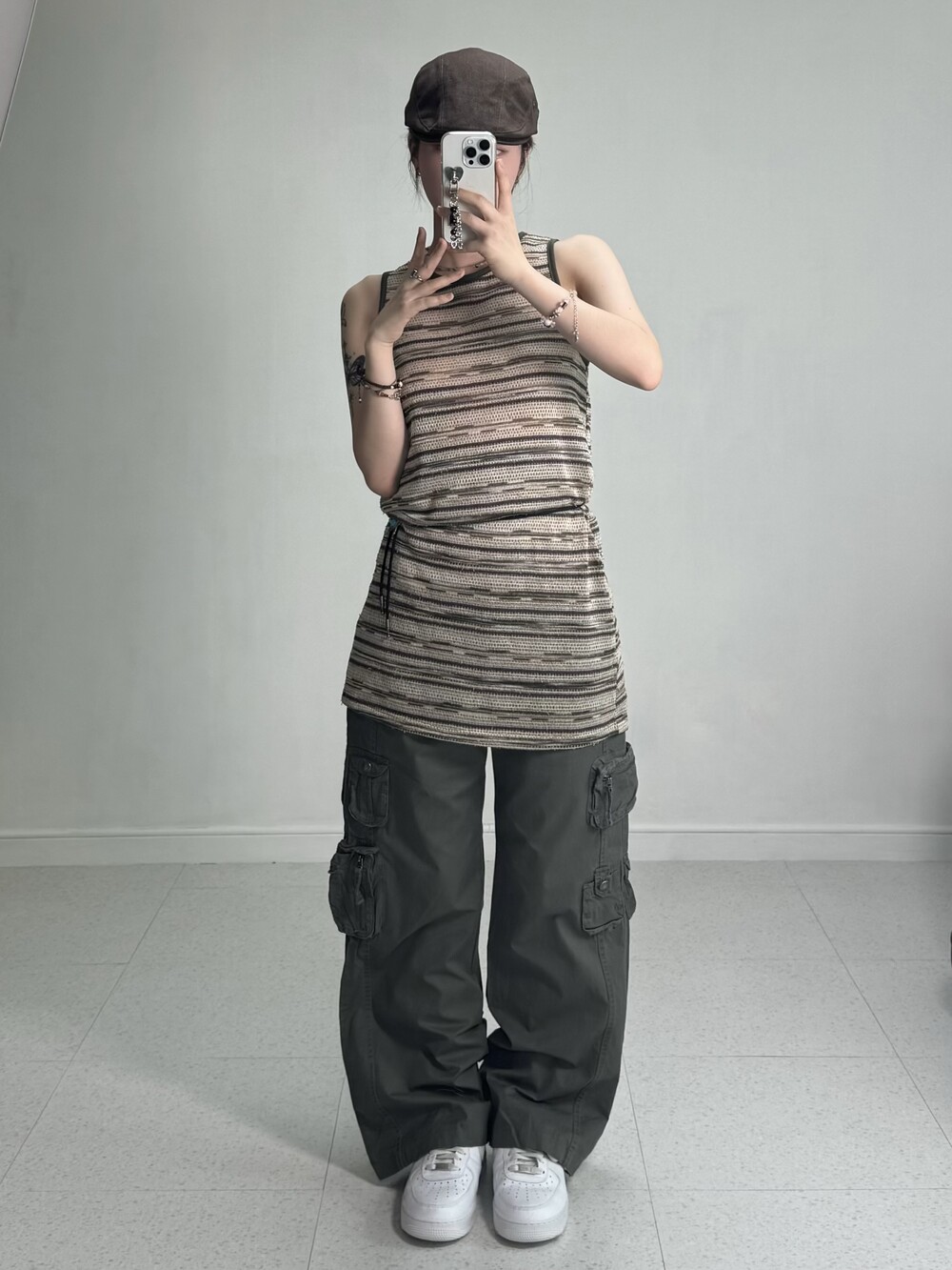 •널널한 로우라이즈 핏이라고 생각해주시면 됩니다! 포켓이 많아서 더 예쁘고 원단도 얆은편이라 여름에 착용해주시기도 굿!