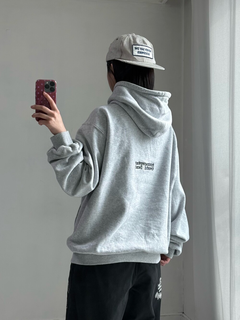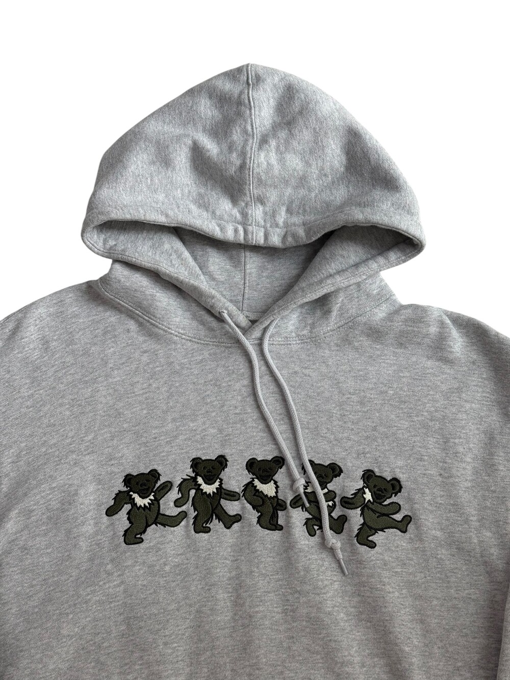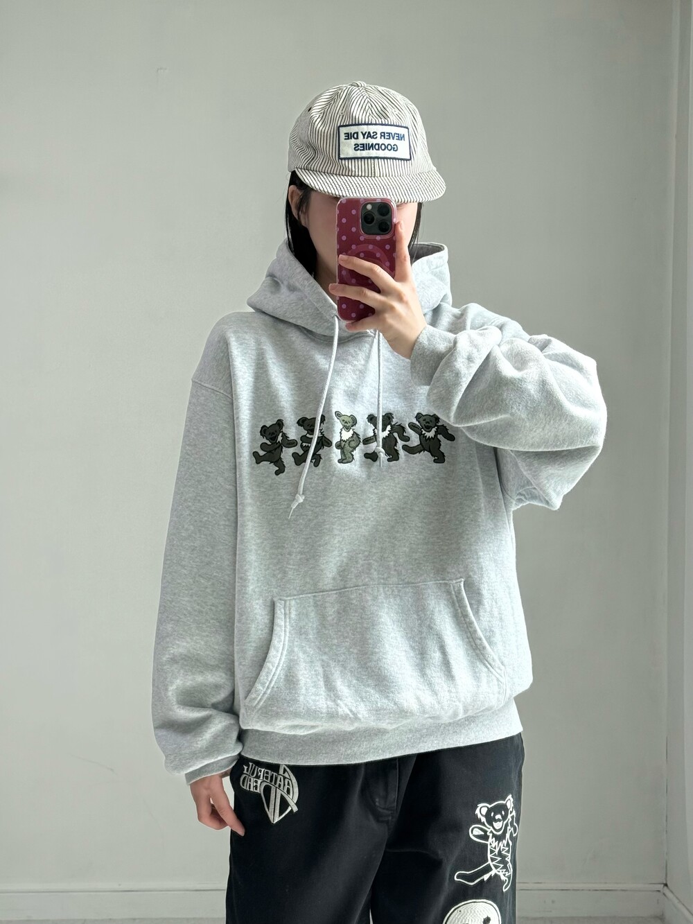 •디스이즈네버댓 x 그레이트풀데드 콜라보 후드티 입니다. 데일리로 입어주시기 좋은 멜란지 컬러에 귀여운 카키 그레이트풀데드 녀석들이 쫑쫑쫑,, 🍏