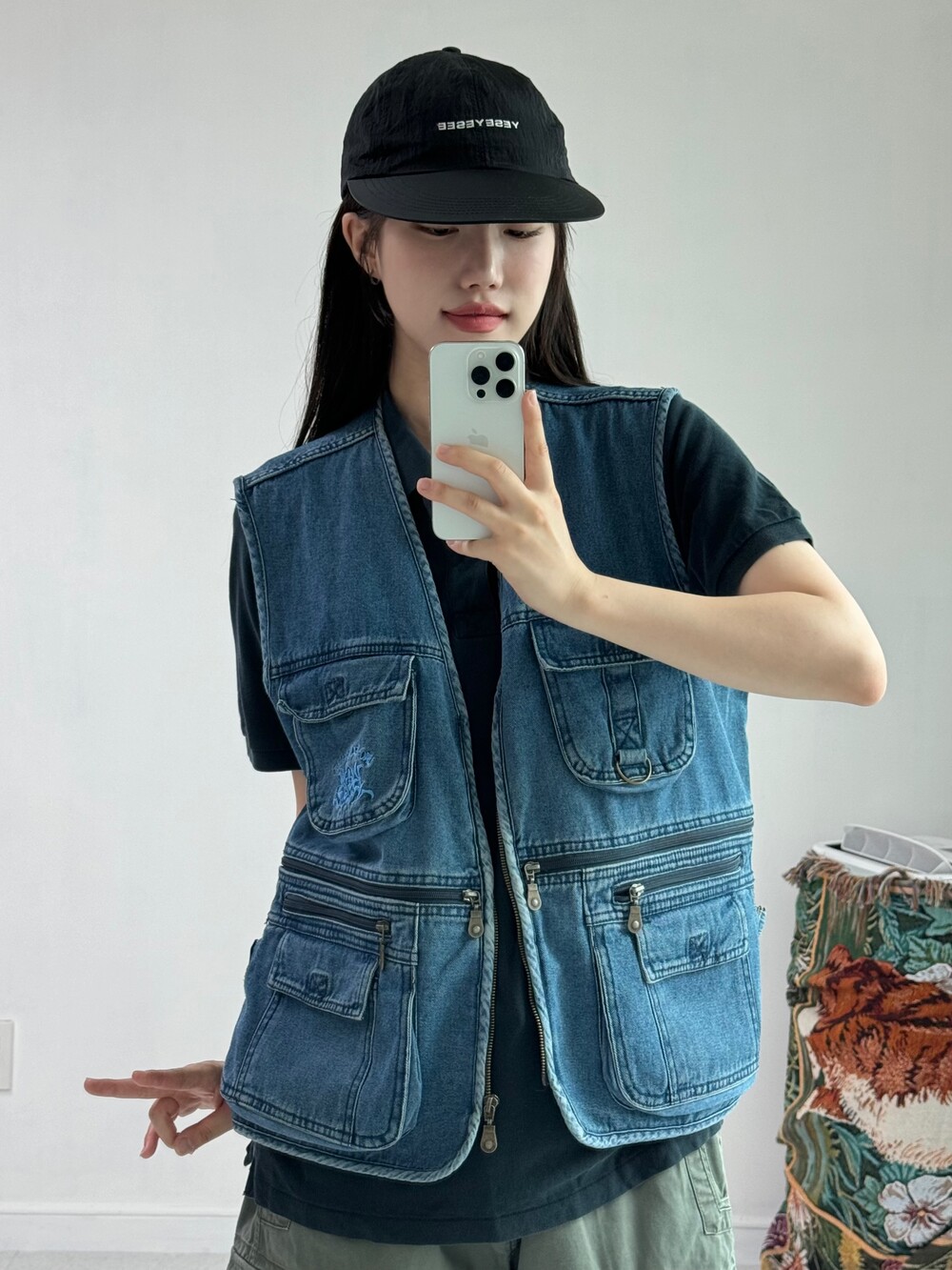 •뉴진스깔 데님베스트ㅎㅎ 사계절 내내 레이어드로 입어주시기 좋은 아이템이에요! 티 위에 툭 걸쳐주기만해도 더욱 힙해지는 마법🖤