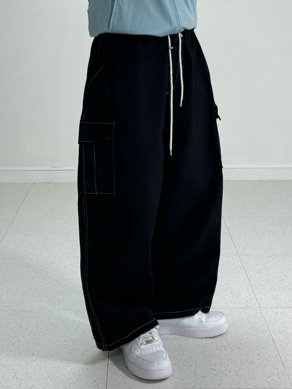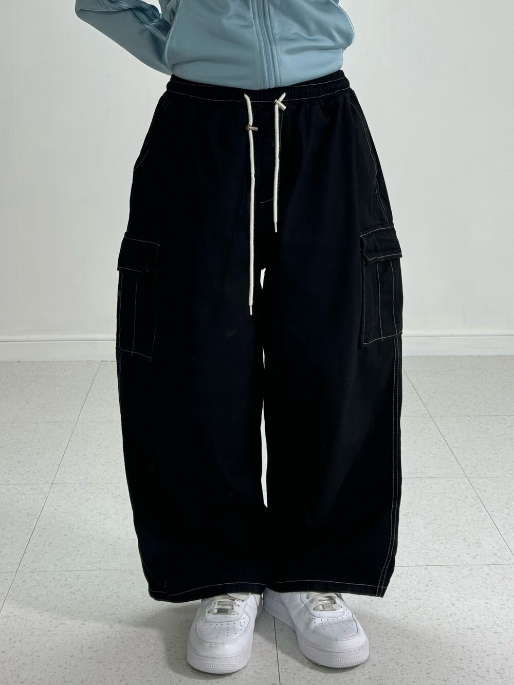 •아방방와이드핏 블랙카고팬츠 찾으시면 요고 강추드릴게요! 편안한 착용감과 와이드 핏까지- 화이트스티치 디테일 대애박 🖤