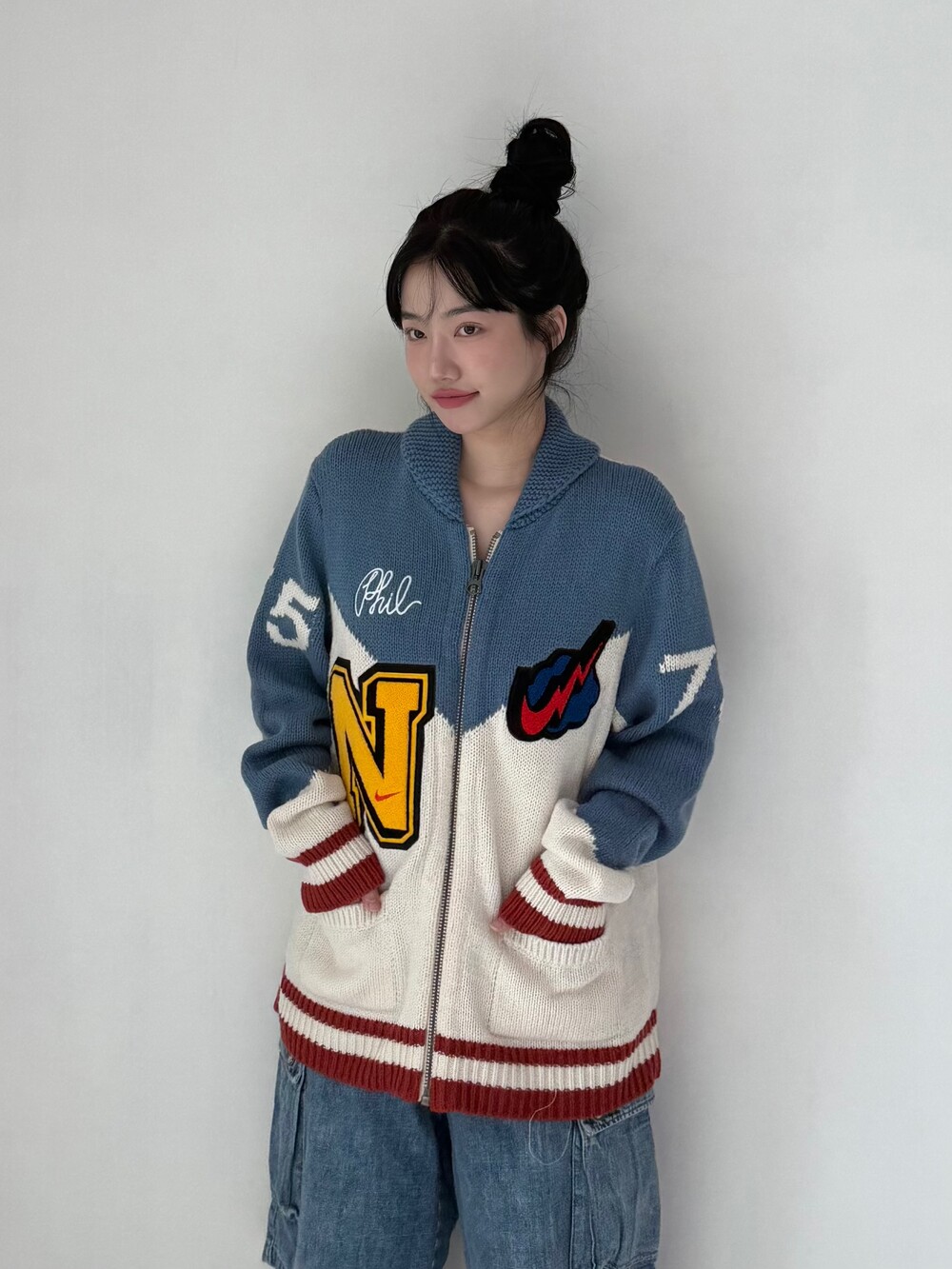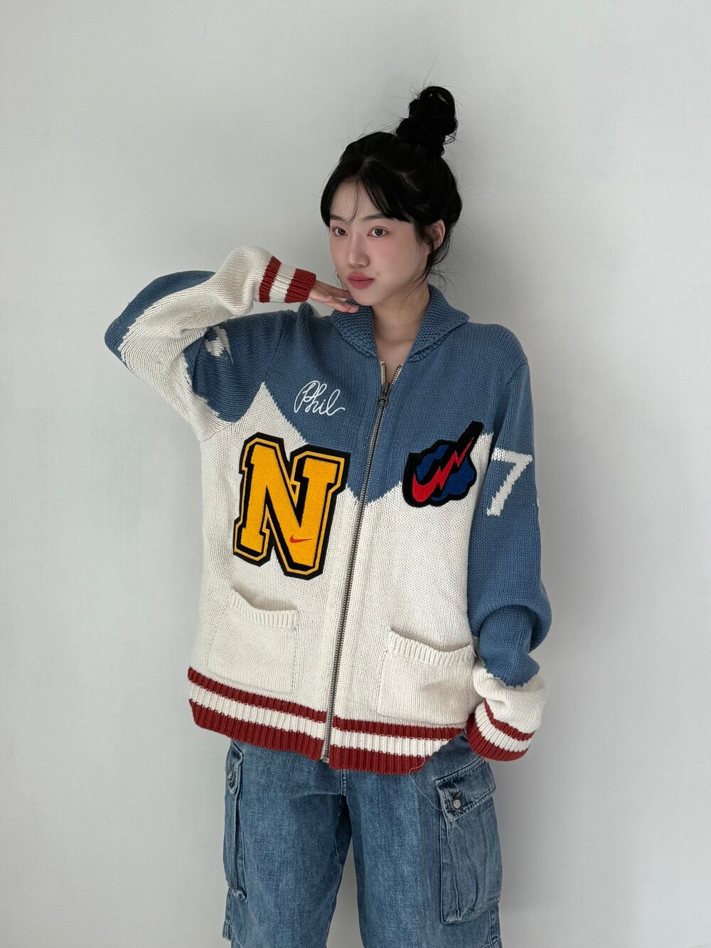 •나이키 NSW 집 니트 블루 화이트 니트 집업이에요! 현재 빈티지로 거래가 15만~ 이상이에요! 그만큼 디자인 퀄리티 너무 좋은 제품이랍니다ㅎ.ㅎ 넘 예쁘쥬