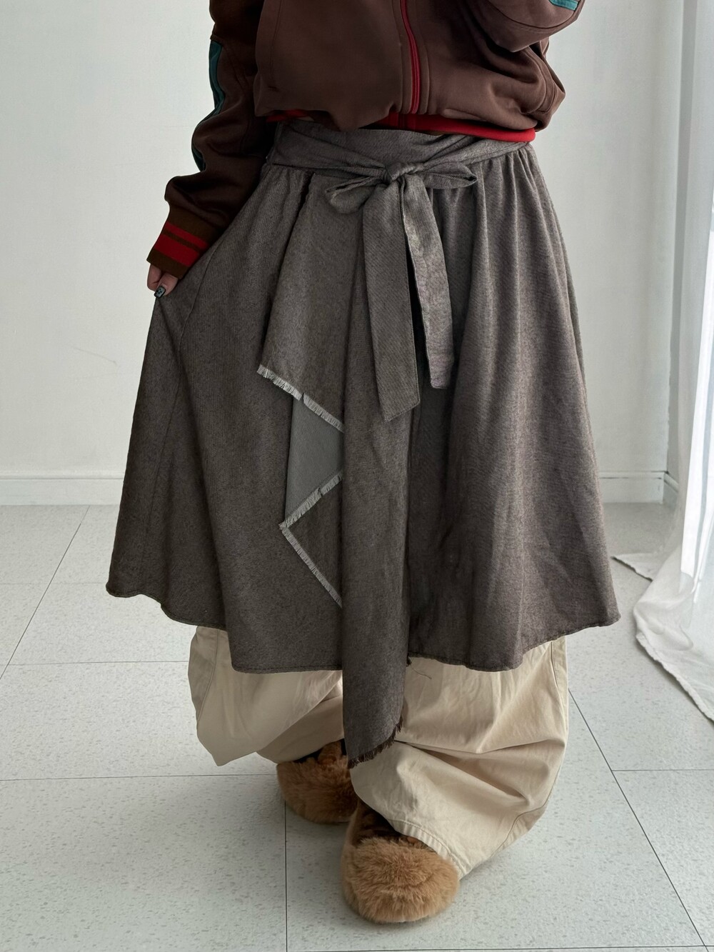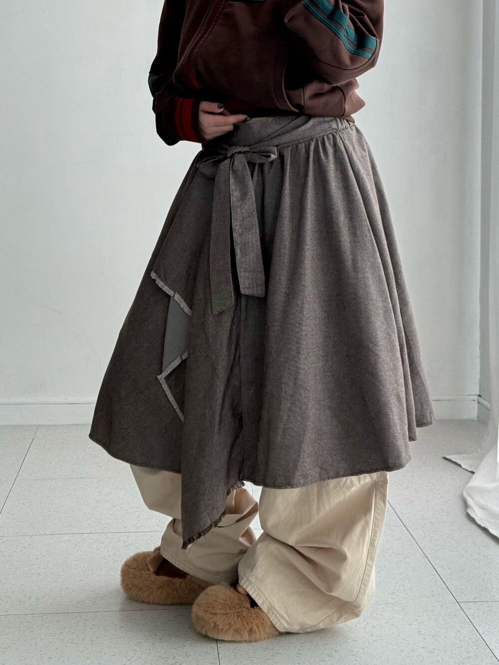 •랩스커트 느낌으로 만들어진 언발 리본 스커트! 단독으로 착용하실때에는 레그워머랑 같이 입어주세요! 넘 귀엽겠어요:)