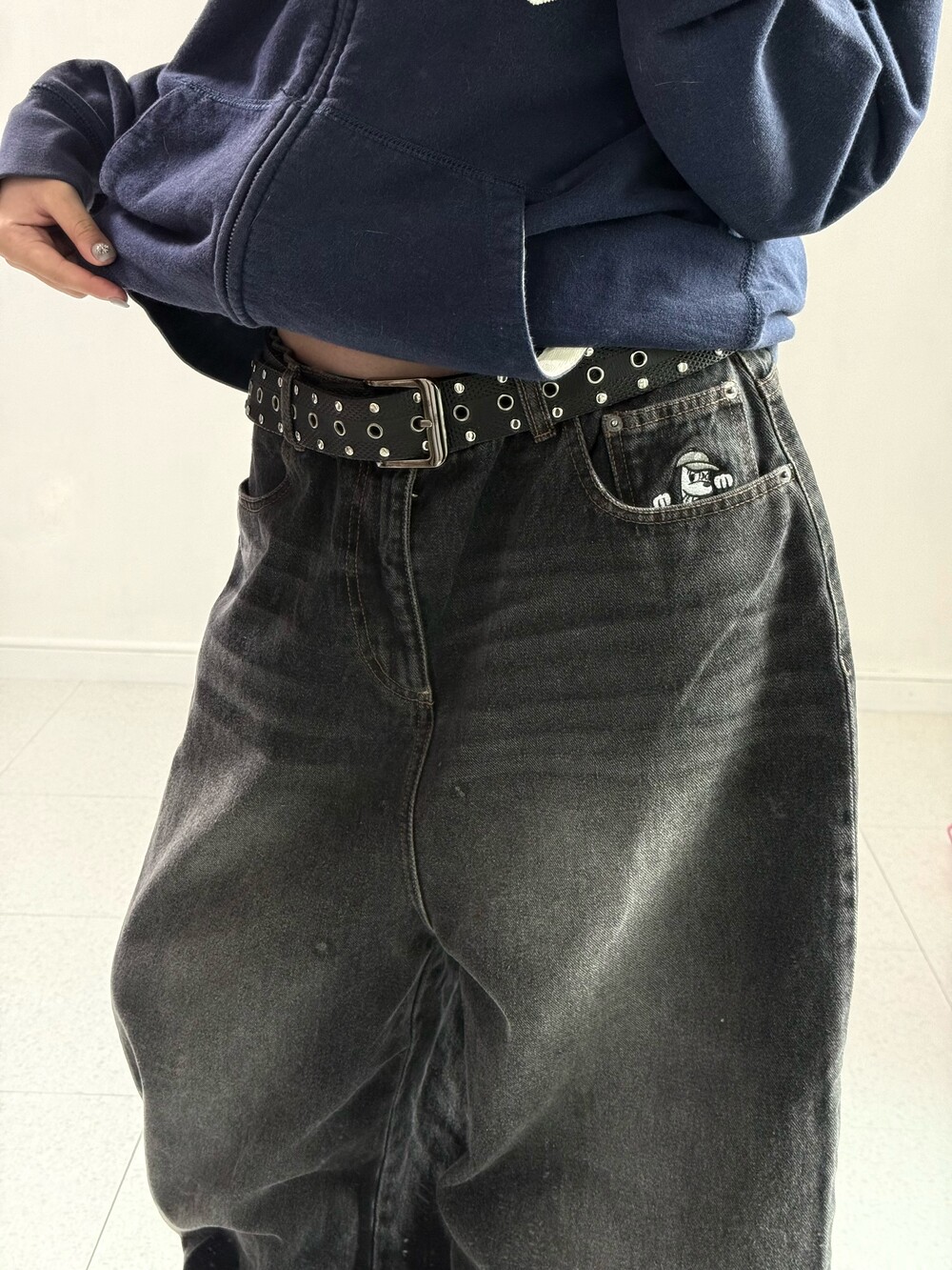 •와이드한 핏과 귀여운 자수 디테일이 대박 귀여운 힙합팬츠🖤