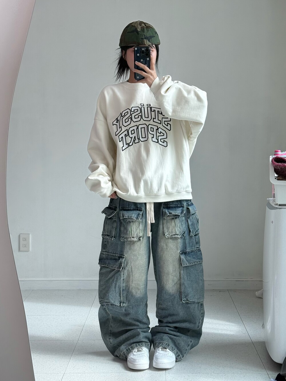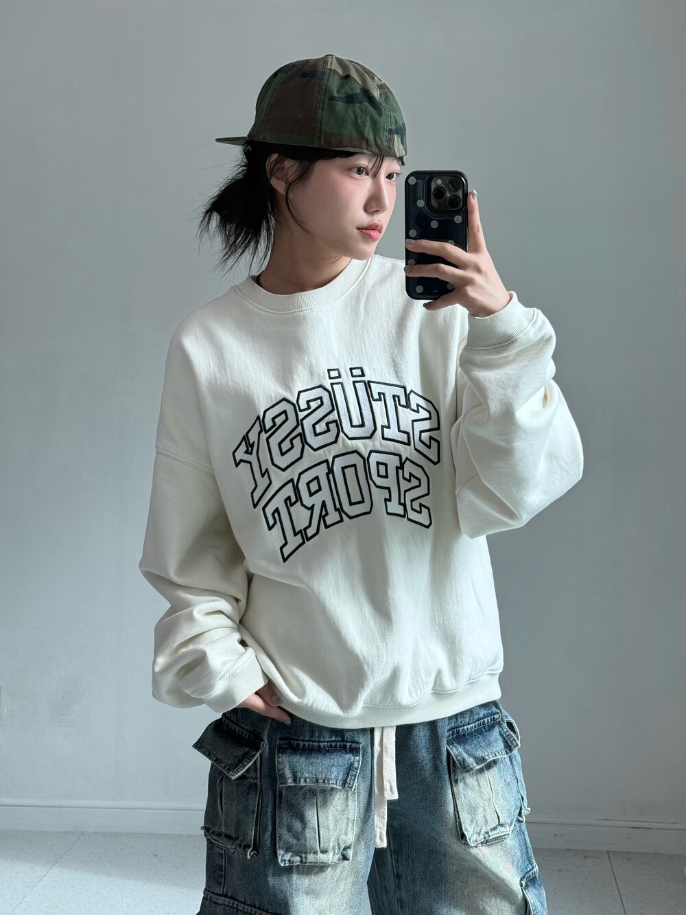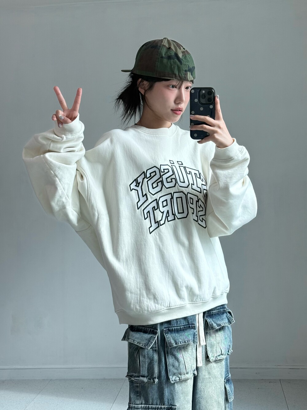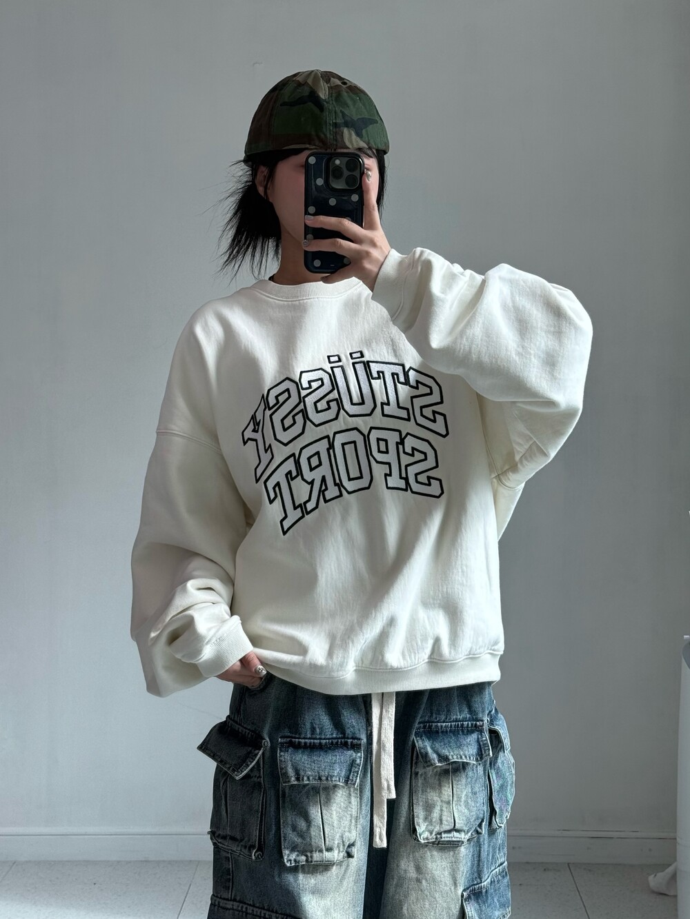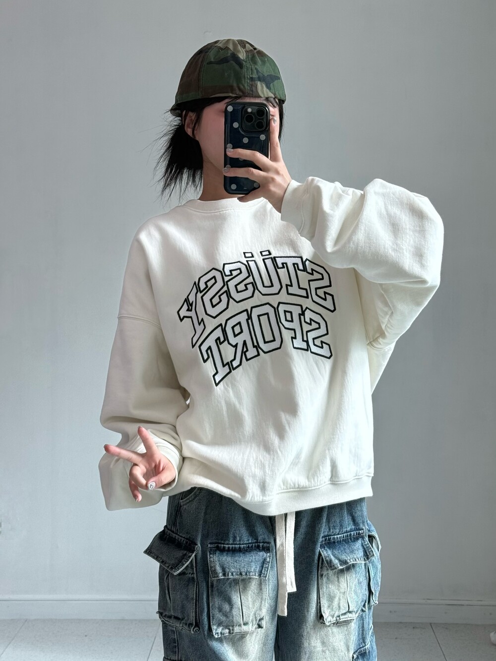 •발매가 21만원 스투시 기모 맨투맨 입니다! 깔끔한 크림 아이보리 컬러에 폭닥한 핏이 넘 예뿌오👍🏻