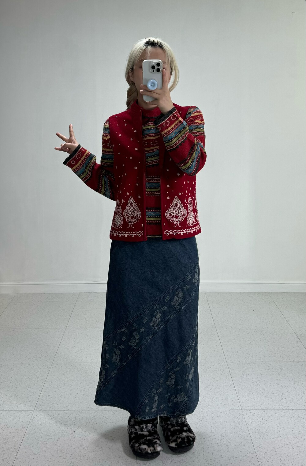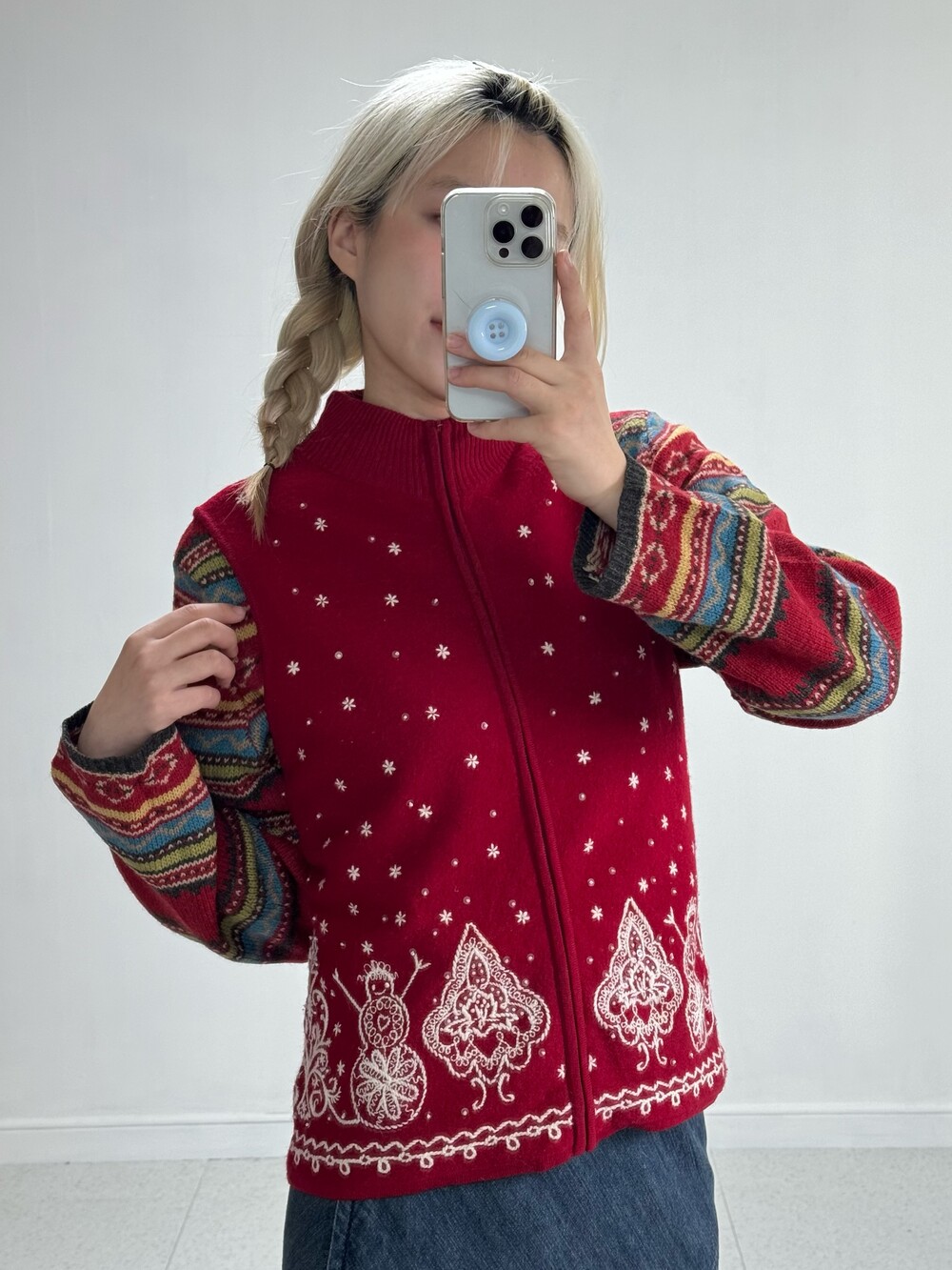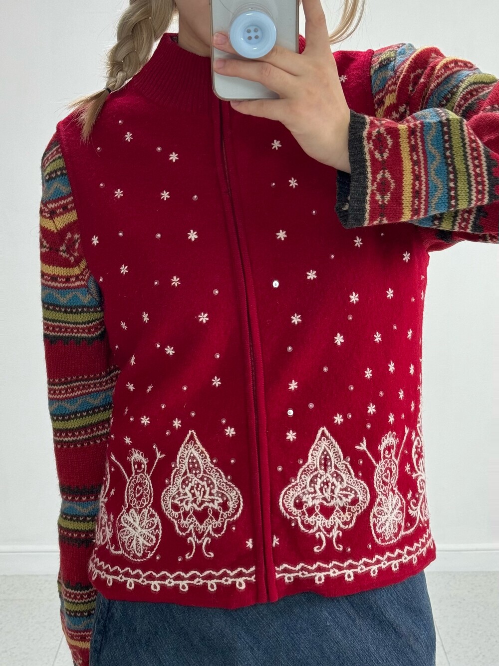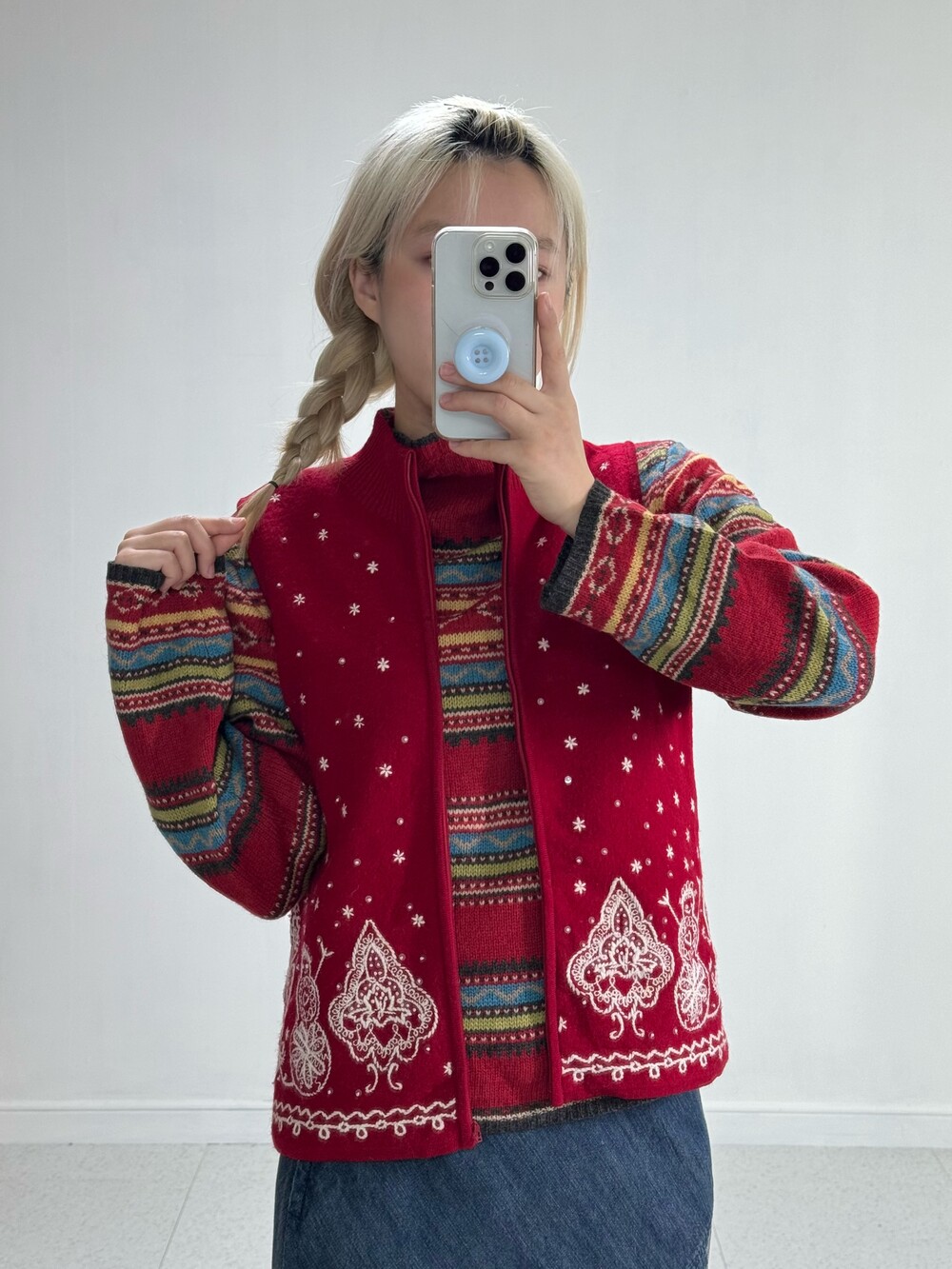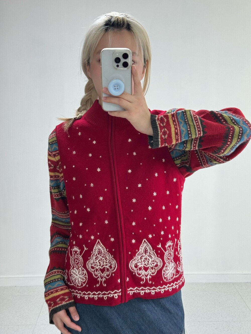 •크리스마스 분위기 가득한 니트 집업이에요! 전부 자수 디테일이며 살짝 반짝이는 진주까지 달려있는.. 매력적인 아이에요ㅎㅎ 정말 강강추 드리고 싶어요 ❤️