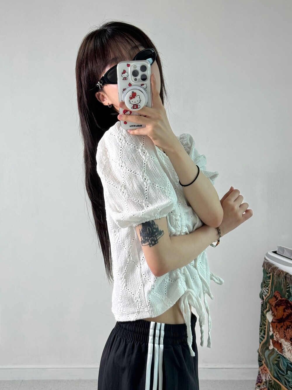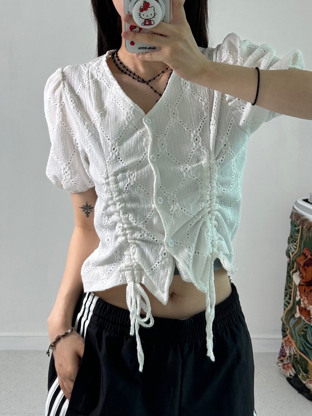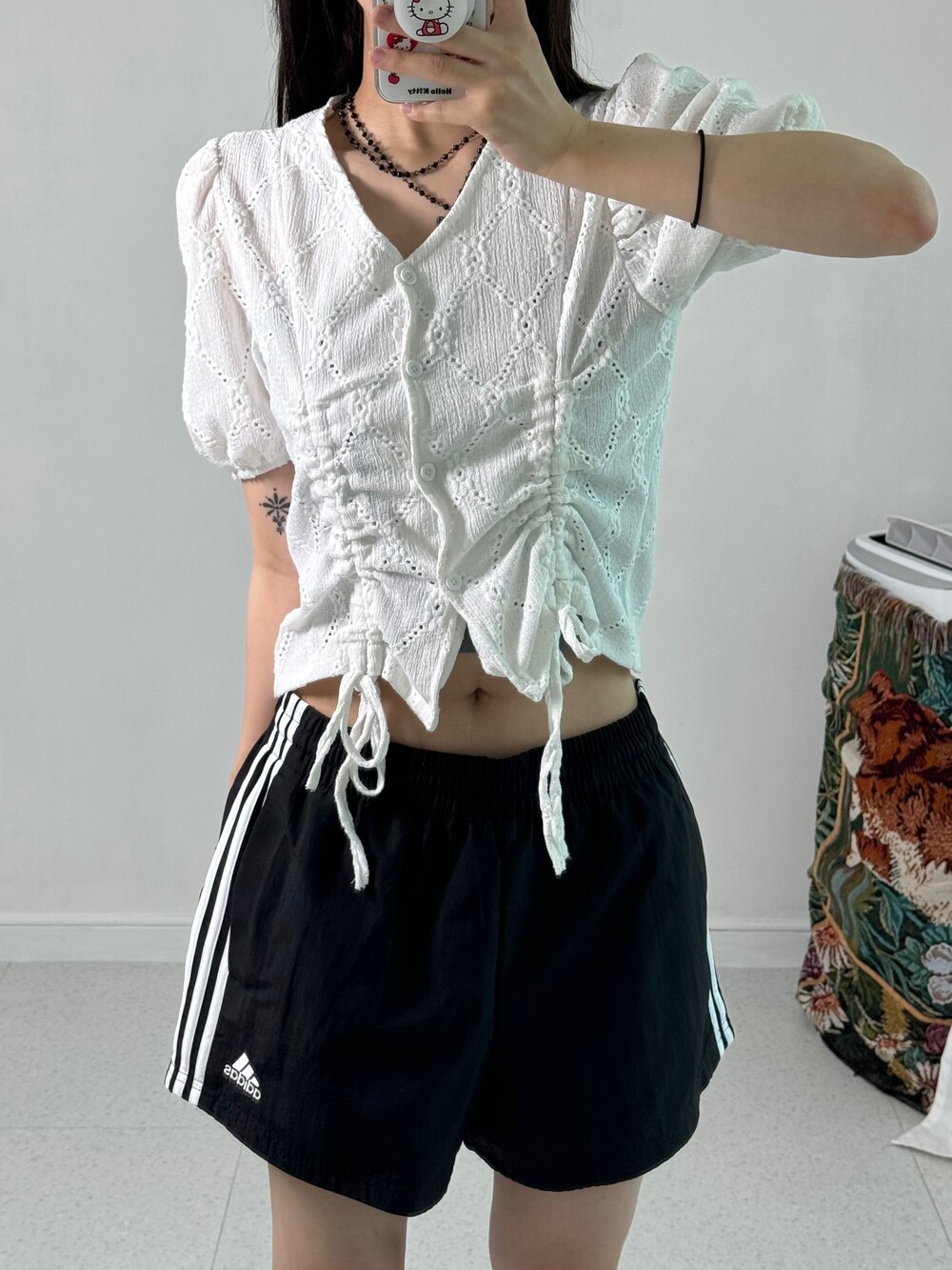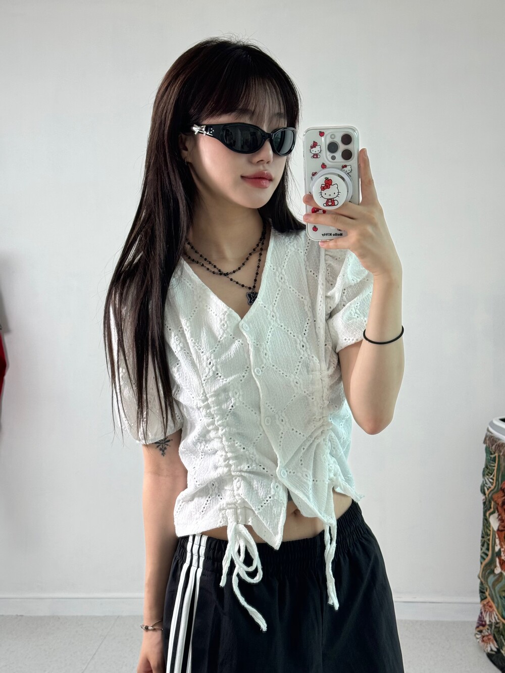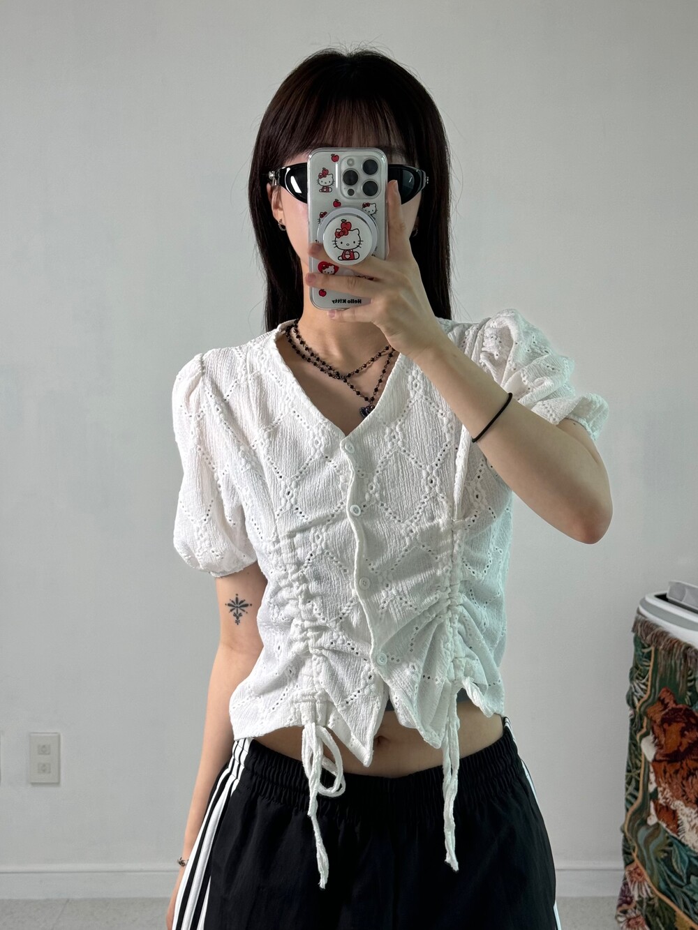 •셔링디테일이 넘 예쁜 빈티지 블라우스>,<편안한 착용감과 귀여운 기장감+펀칭 디테일이 러블리 그 자체에요..🖤