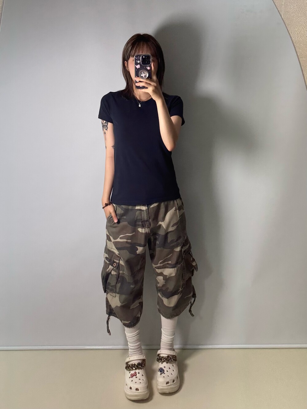 •긴 기장감이라 루즈하게 착용하기 좋은 카모카고팬츠에요! 가을까지 주구장창 입어주시기 좋은 아이템이라고 생각해요 :)
