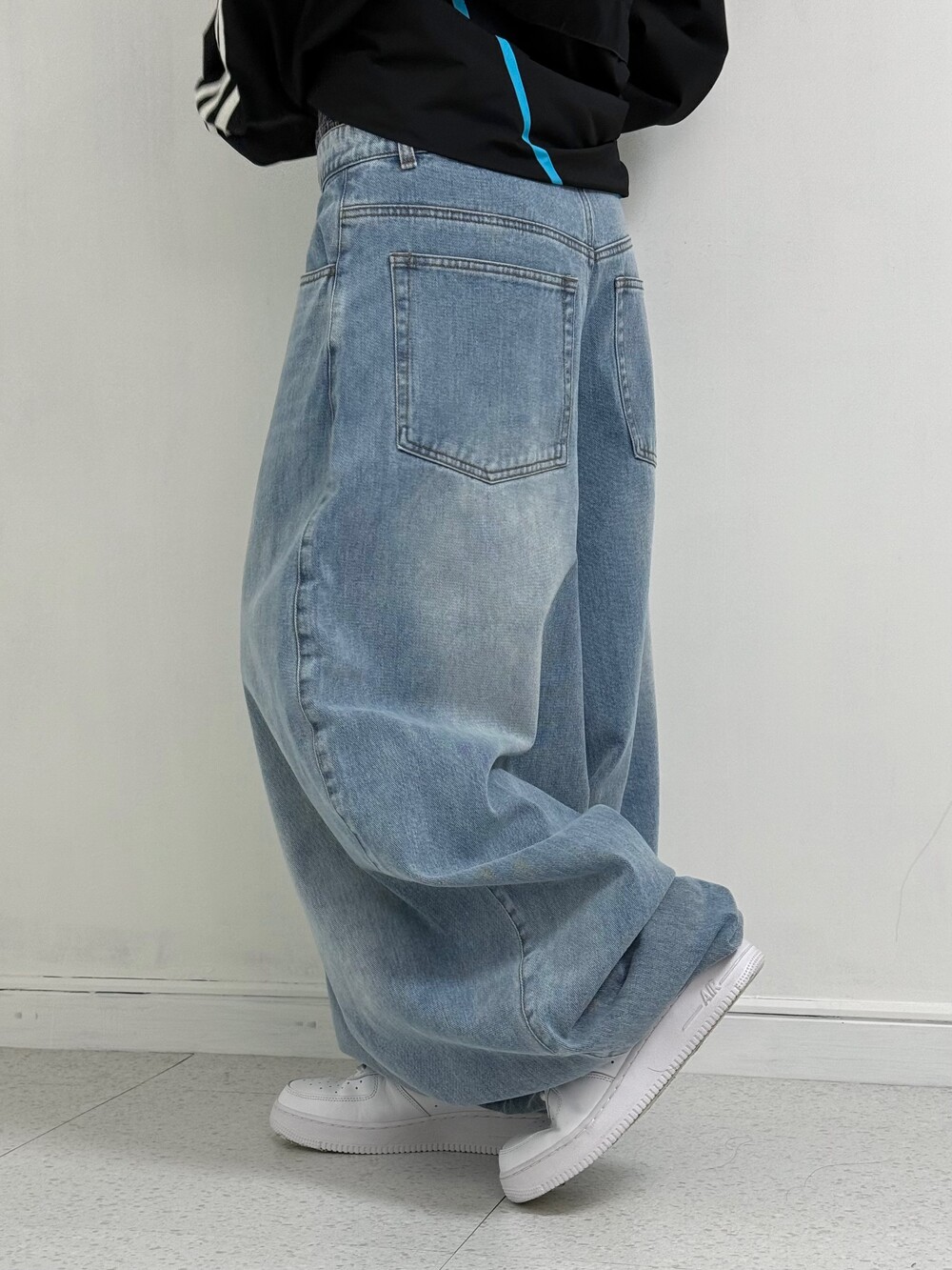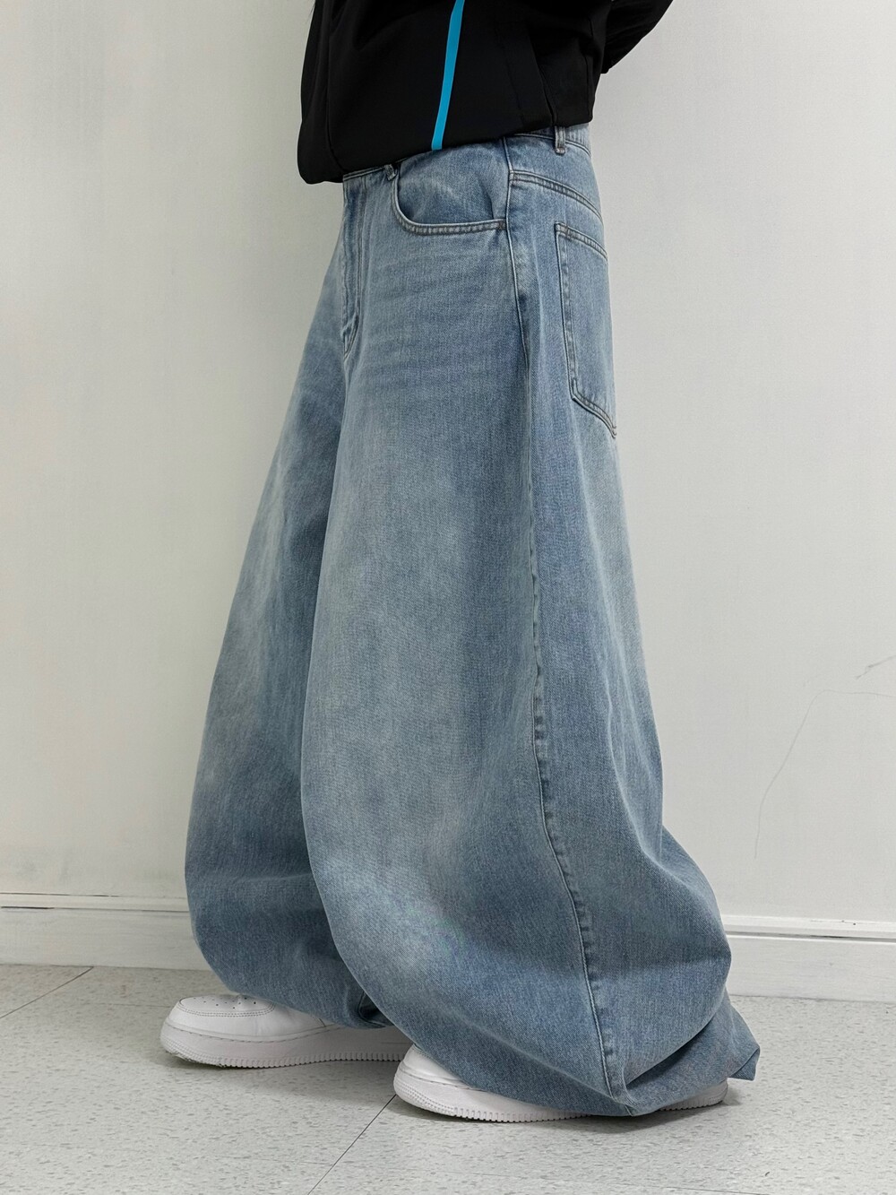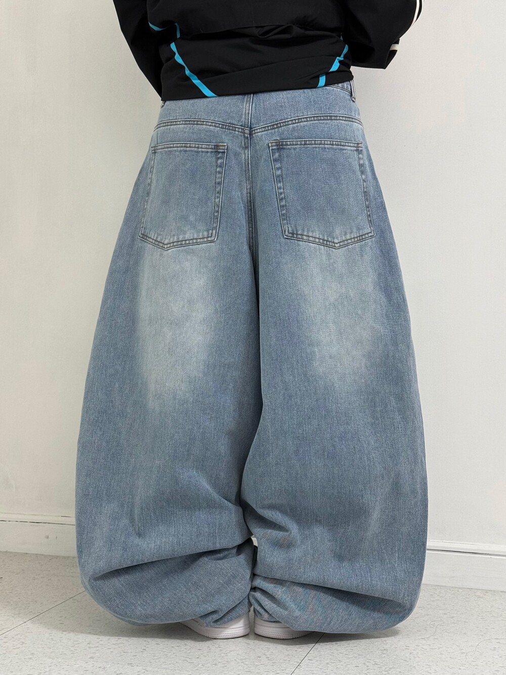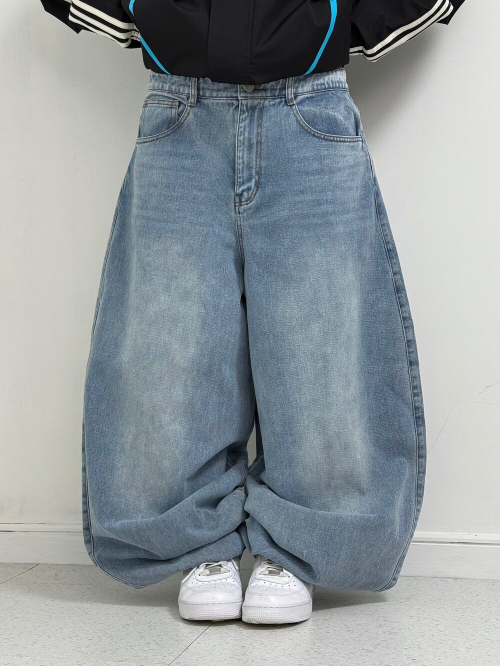 •은은한 워싱이 멋드러지는 벌룬핏 중청 팬츠 입니다✌🏻 기장이 길지만 밑단이 좁아서 절대 끌리지 않아요! 주인장 개인소장으로도 요론핏 데님있는데 아주 대만족😍