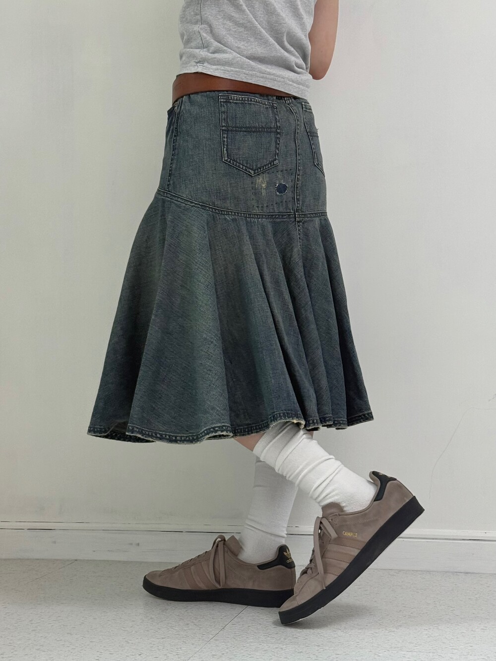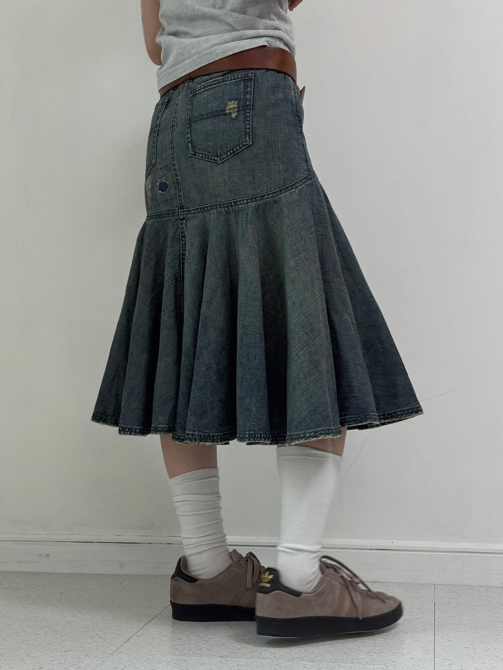 •폴로 랄프로렌의 플리츠 데님 스커트 입니다! 입었을때 무게감 느껴지고 불편한 느낌 절대 아니구요!!! 가볍고 골반 있어보이게 만들어주는 매직 스커트 입니다^.^